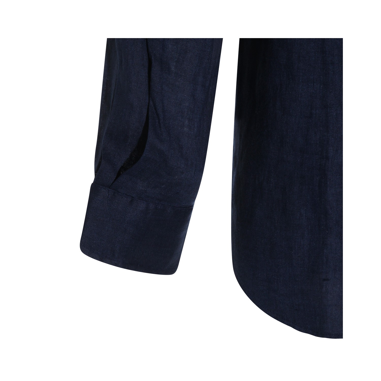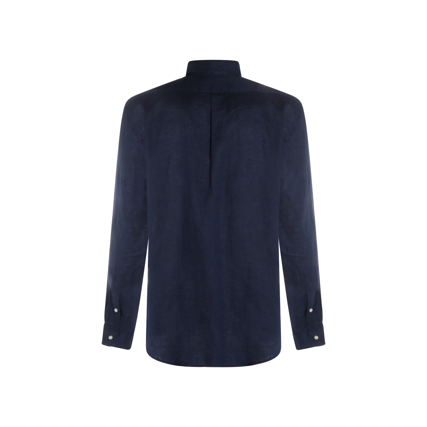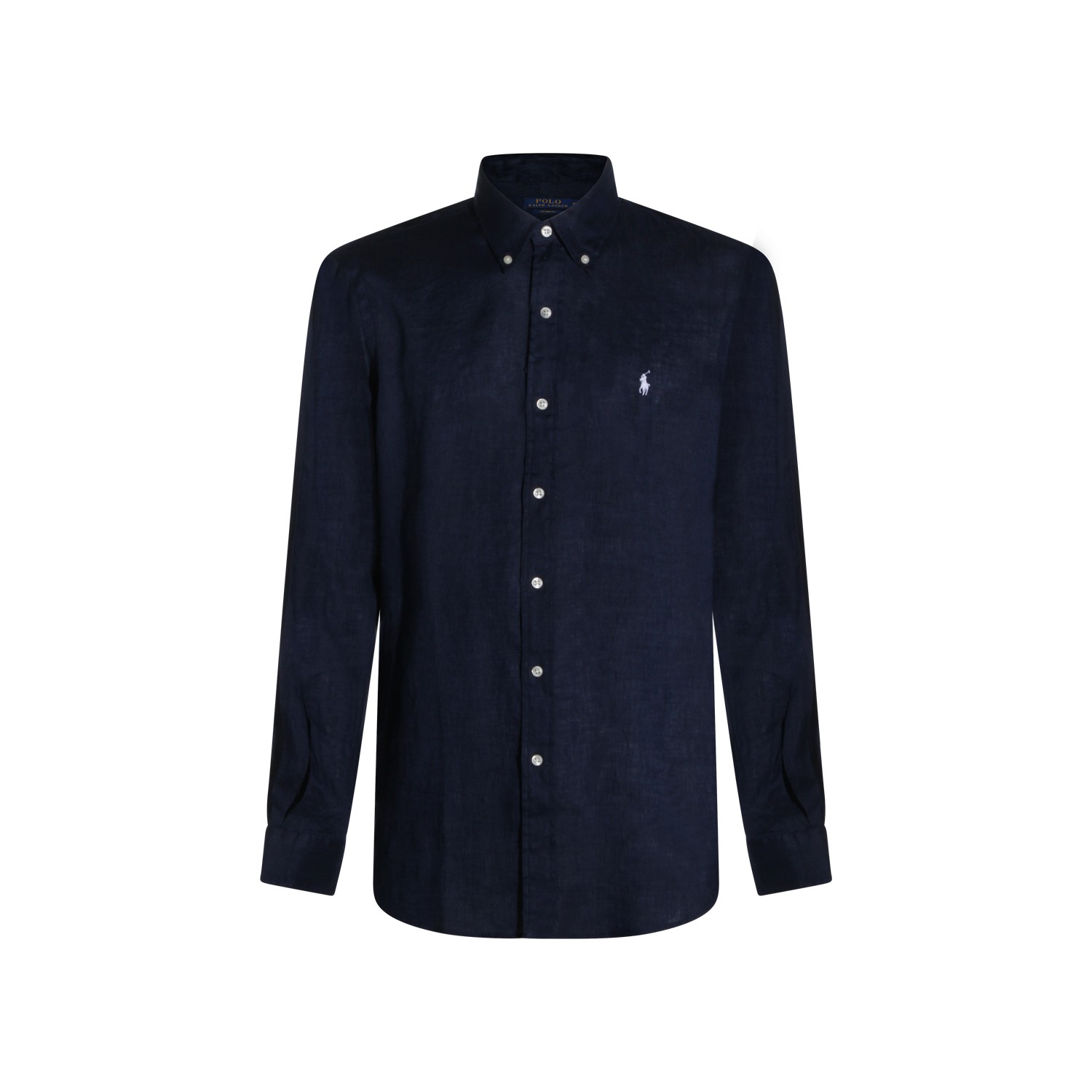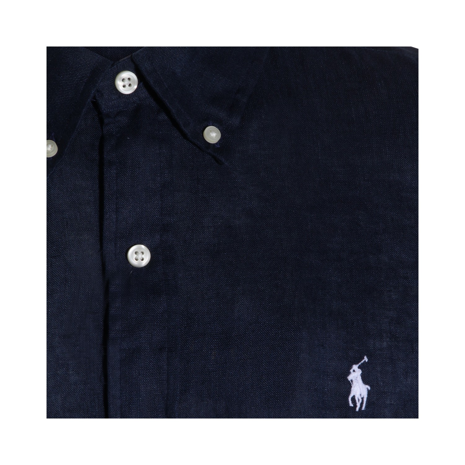 Newport navy linen shirt from Polo Ralph Lauren featuring long sleeves, buttons fastening, shirt collar, frontal logo at chest and regular vestibility.