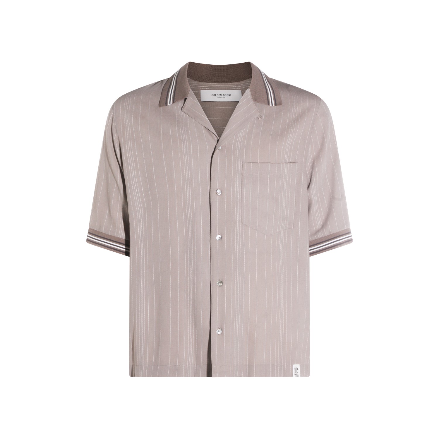 Beige shirt from Golden Goose featuring shirt collar, short sleeves, buttons fastening, chest pocket and regular vestibility.