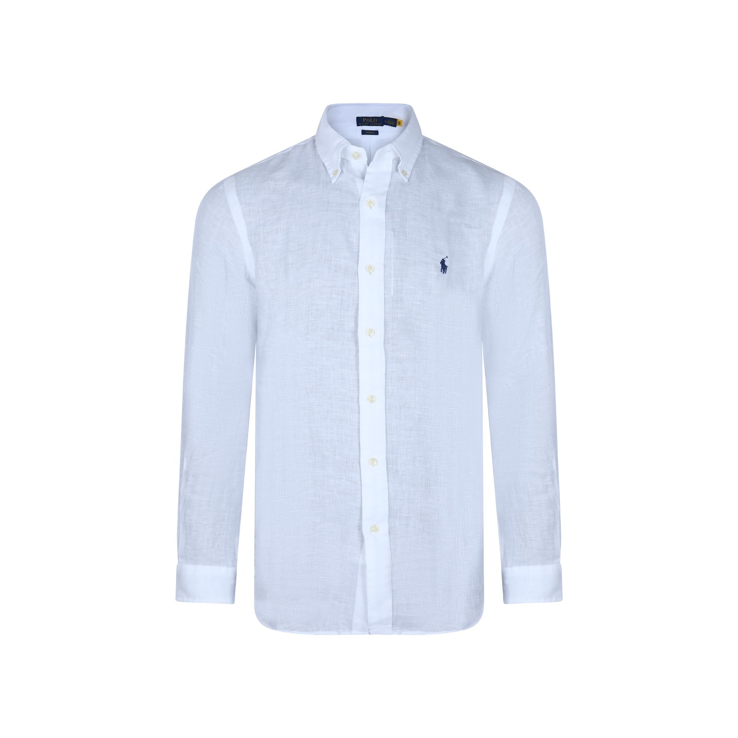 White linen shirt from Polo Ralph Lauren featuring shirt collar, long sleeves, buttons fastening and regular vestibility.