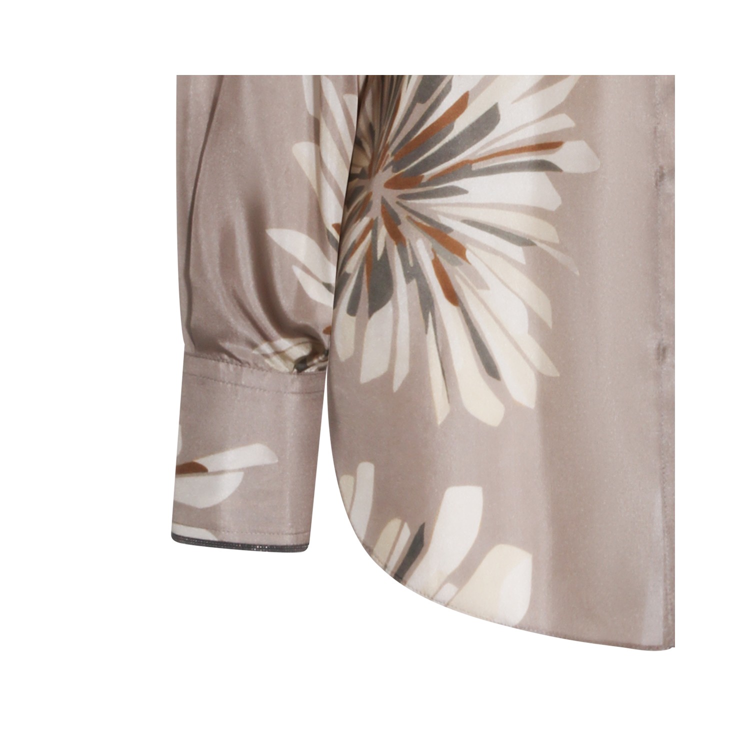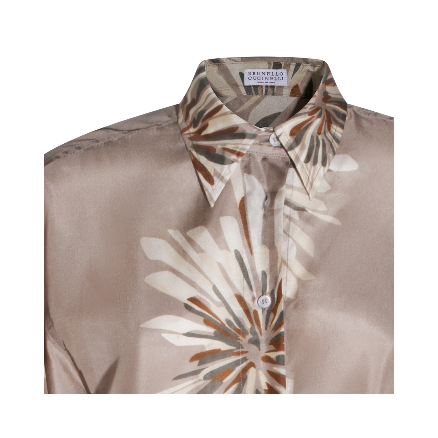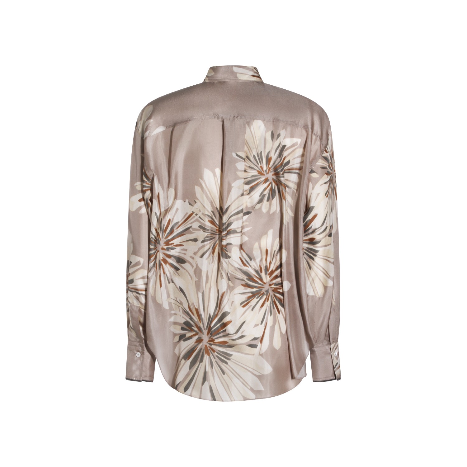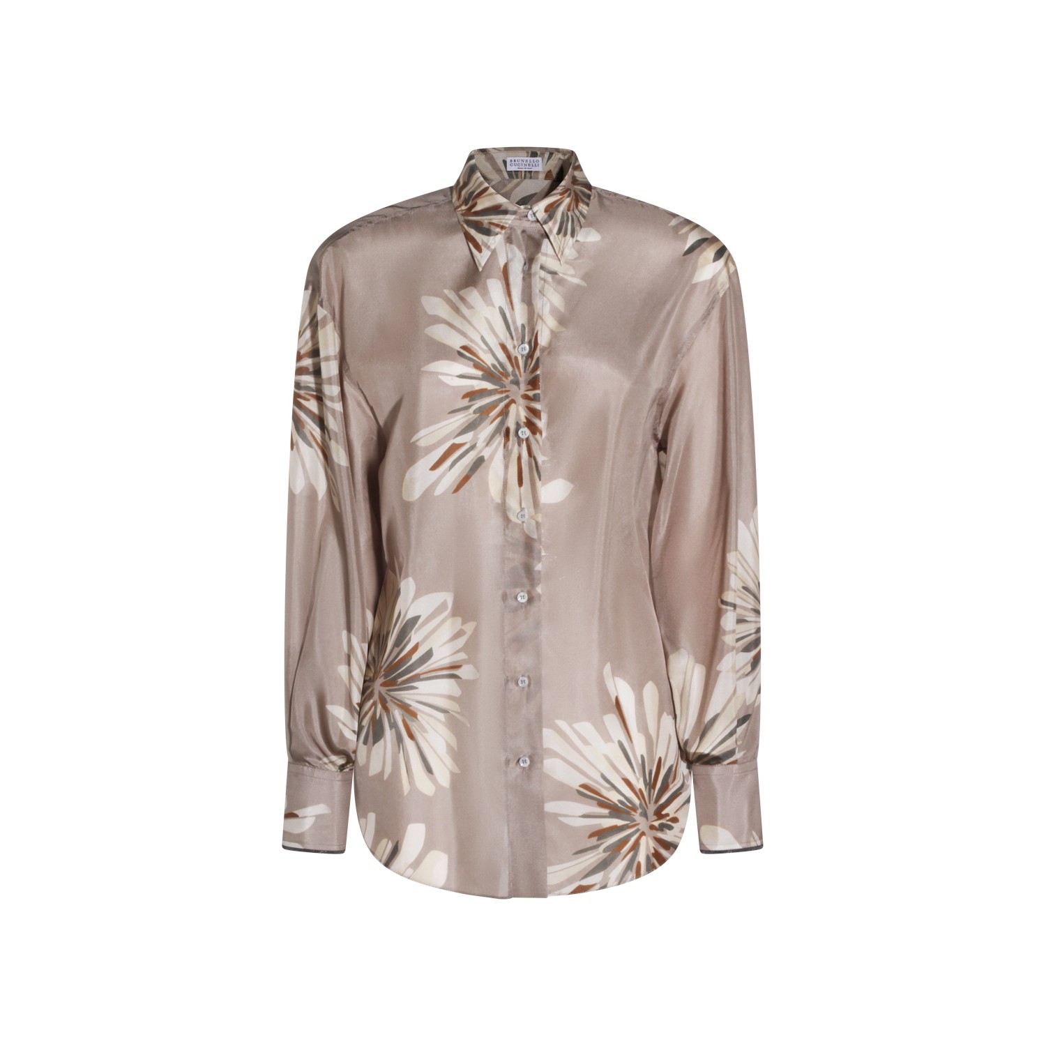 Green silk shirt from Brunello Cucinelli featuring long sleeves, shirt collar, buttons fastening, dropped shoulders, monile piping cuffs, floral patterned and regular vestibility.
