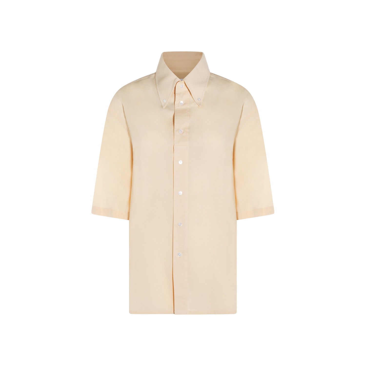 Apricot cotton shirt from Lemaire featuring short sleeves, shirt collar, buttons fastening and midi length.