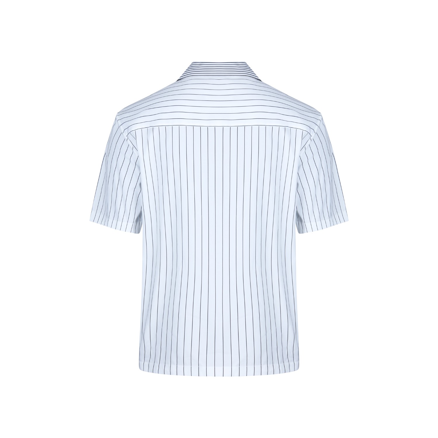 White and grey shirt from Jil Sander featuring classic shirt collar, short sleeves, buttons fastening, striped motif and regular vestibility.
