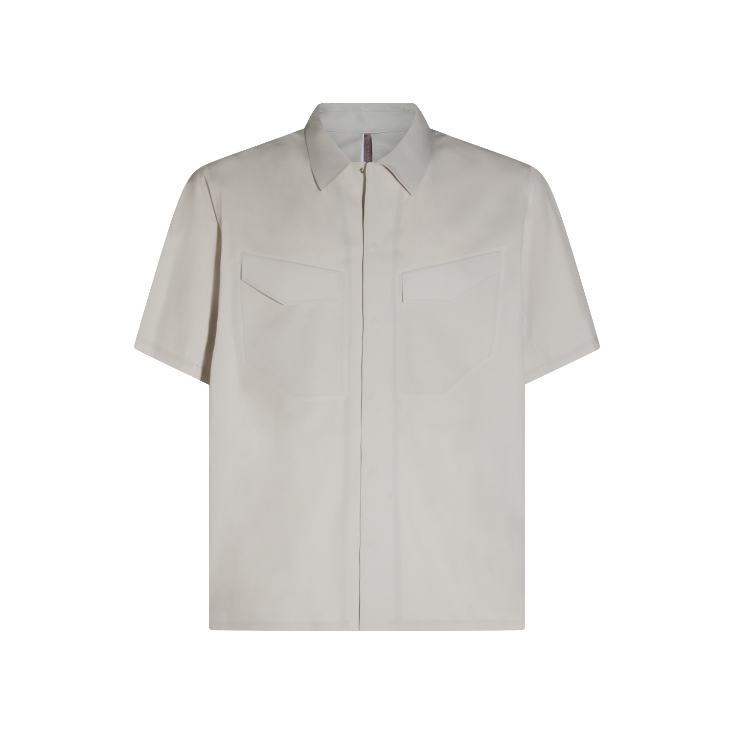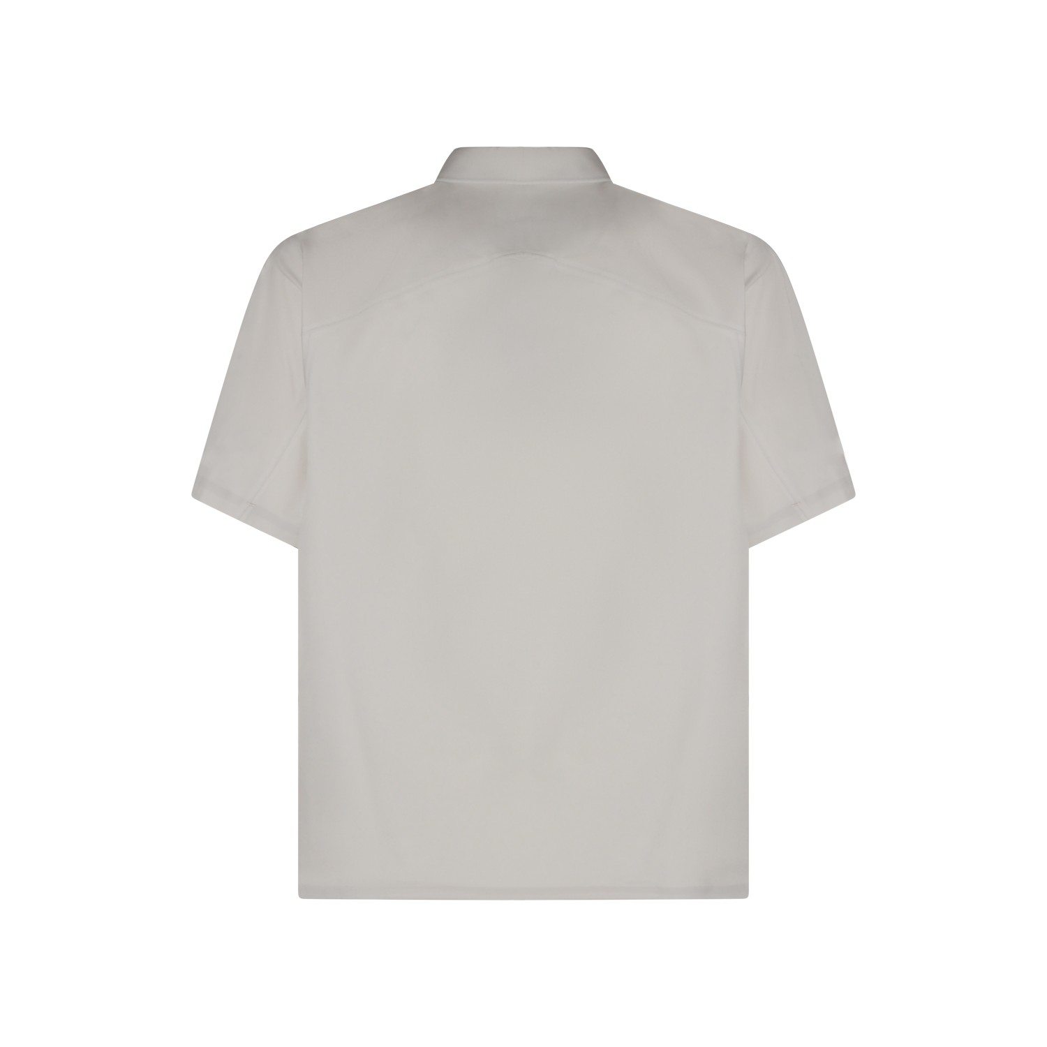 Field grey shirt from Arc'Teryx x Veilace featuring short sleeves, cropped ling, button closure fastening and chest pockets.