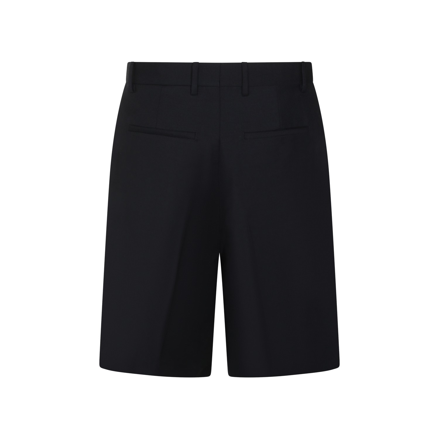Dark blue wool shorts from Jil Sander featuring high waist, belt loops, zip fastening, pockets and regular vestibility.