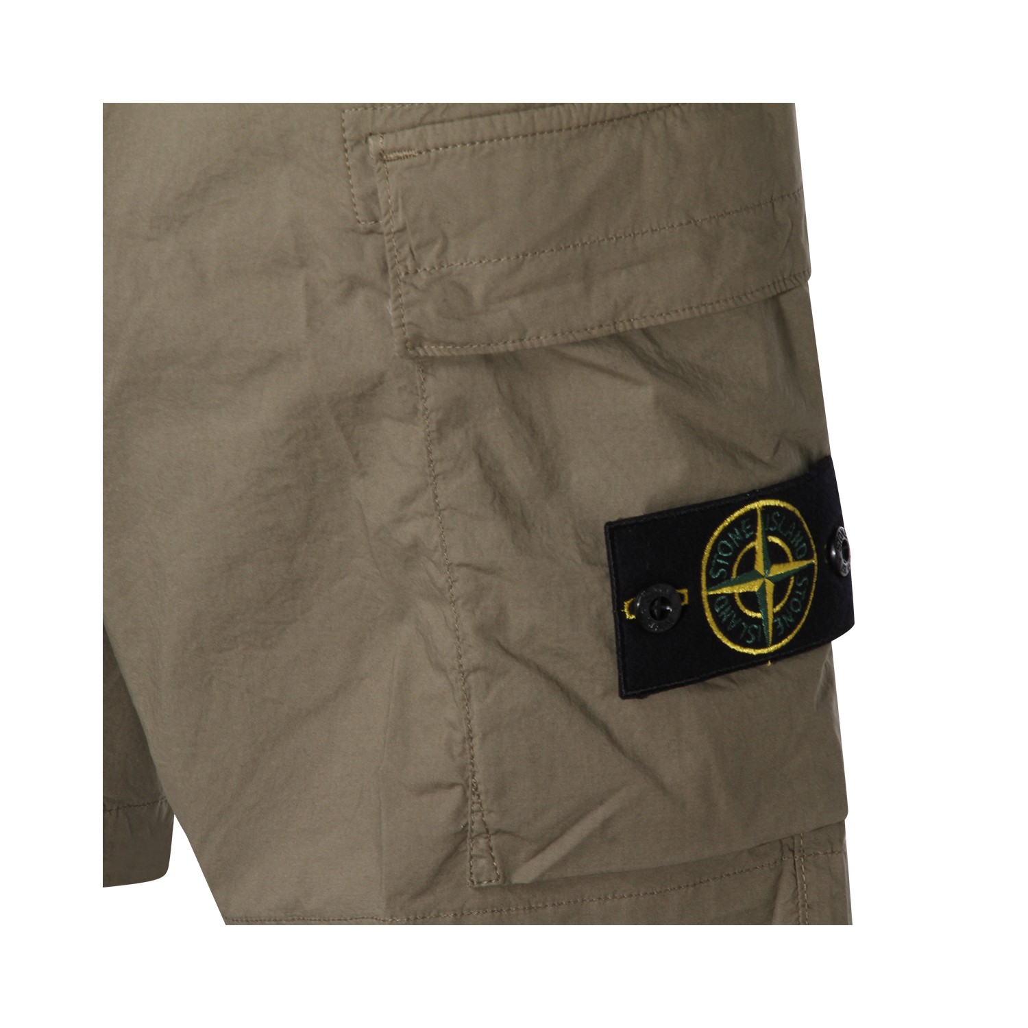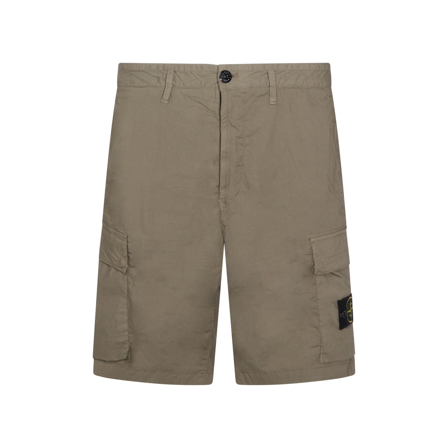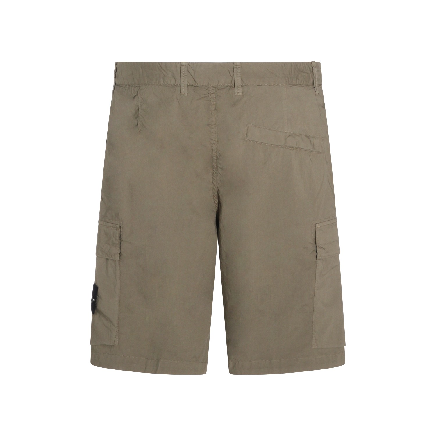 Military green cotton shorts from Stone Island featuring frontal fastening, belt loops, pockets and knee length.