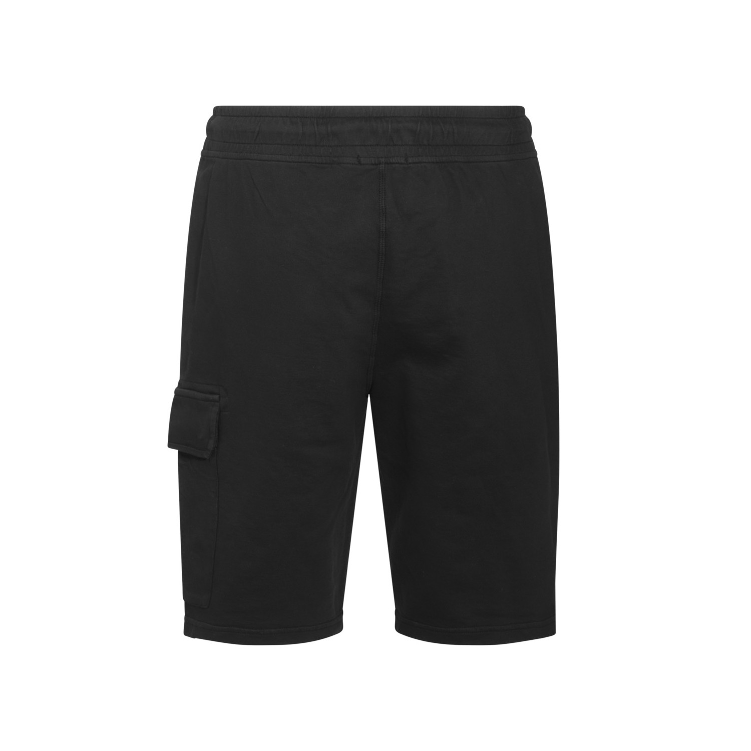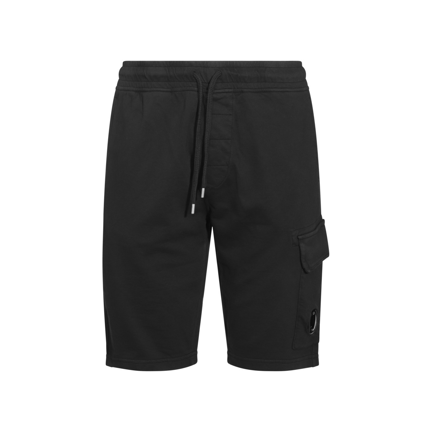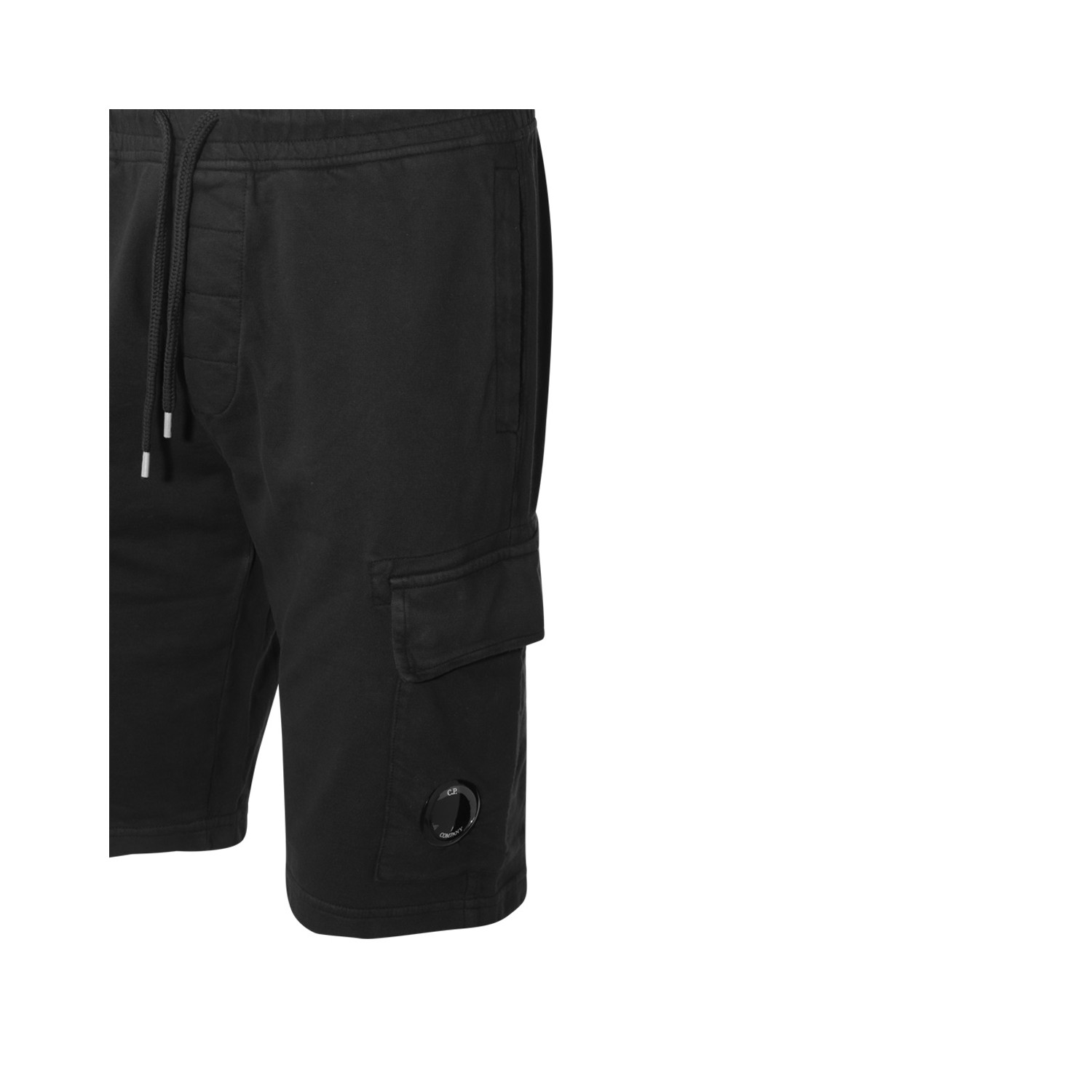 Black cotton shorts from CP Companu featuring high waist, cotton laces fastening, lateral pocket and mid length.
