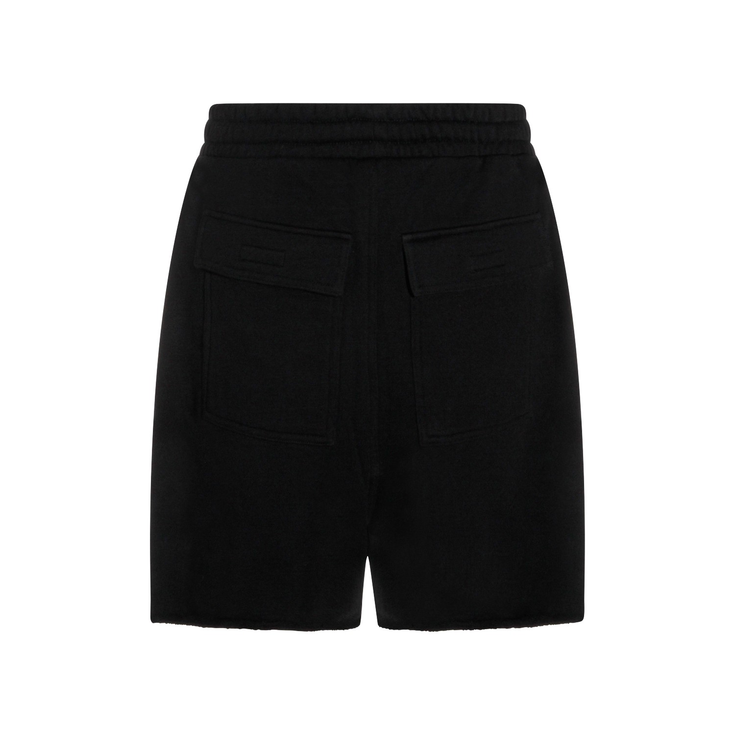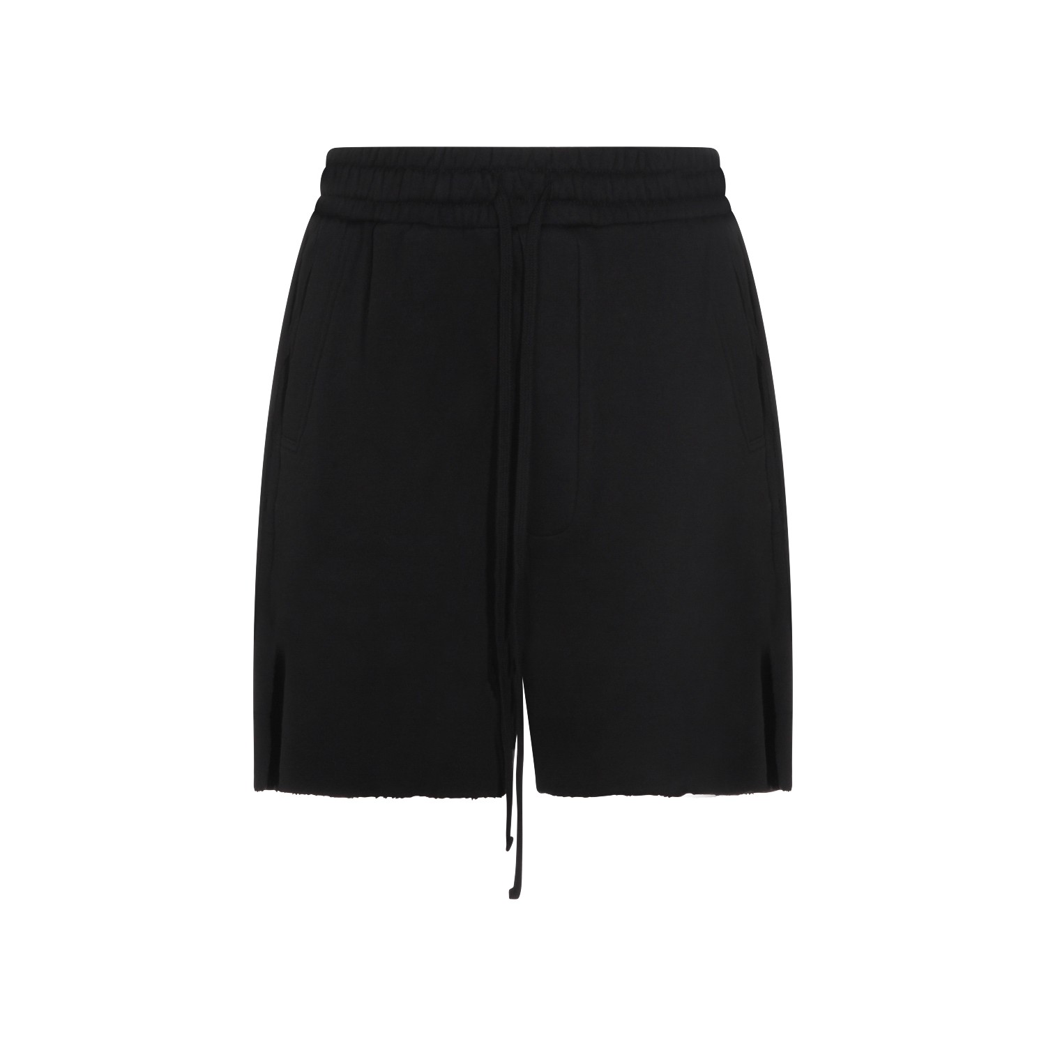 Black cotton shorts from Thom Krom featuring elasticated waist, pockets and drawstrings.