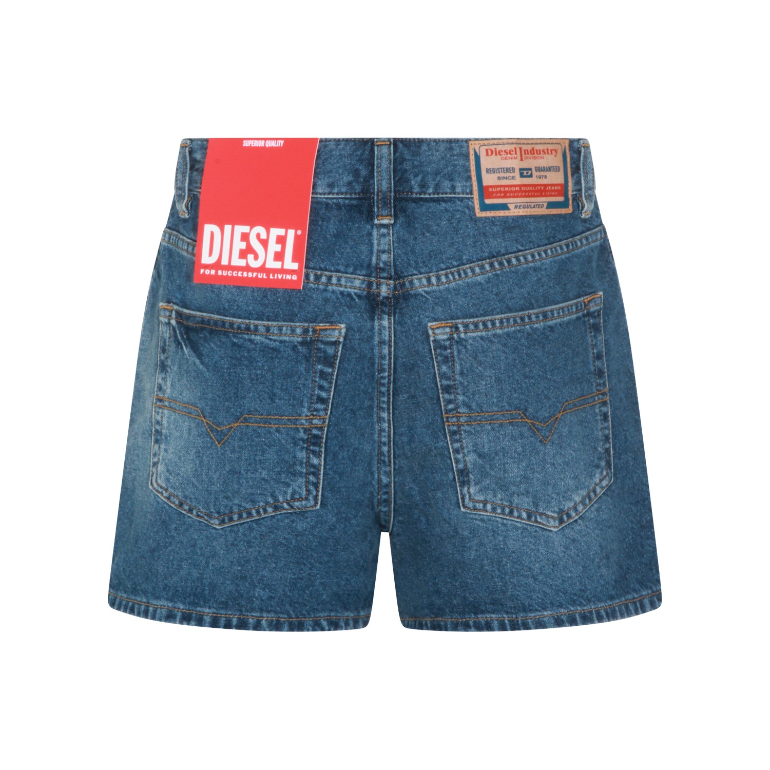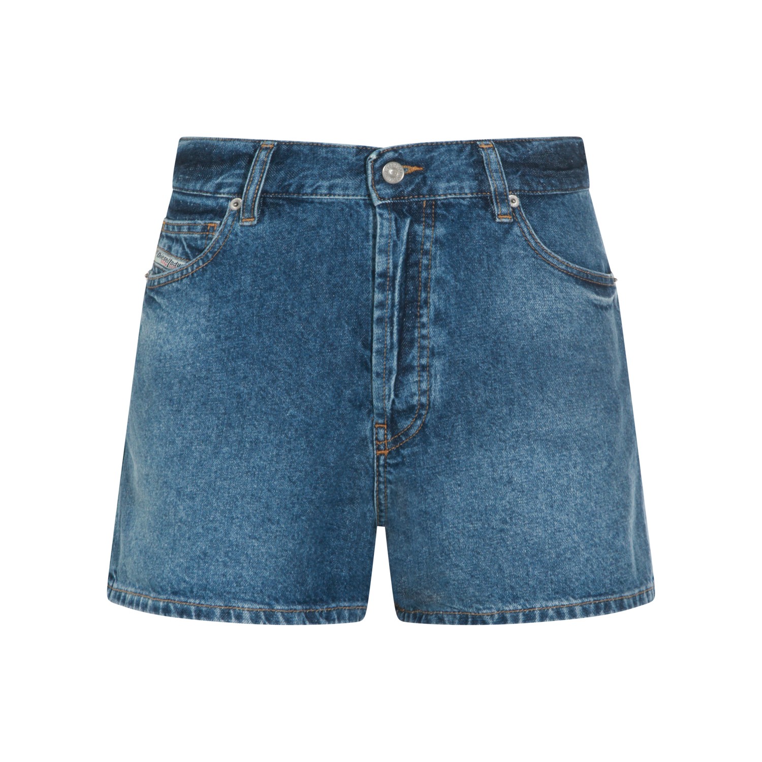 Dark blue cotton shorts from Diesel featuring frontal fastening, belt loops, pockets and short length.