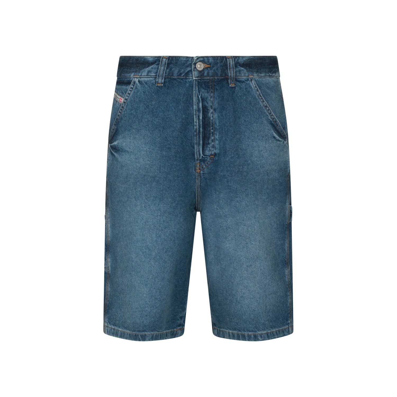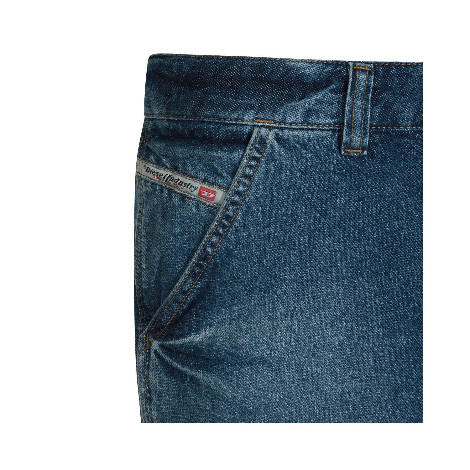 Dark blue cotton denim jeans from Diesel featuring frontal fastening, belt loops, knee length and logo patch.