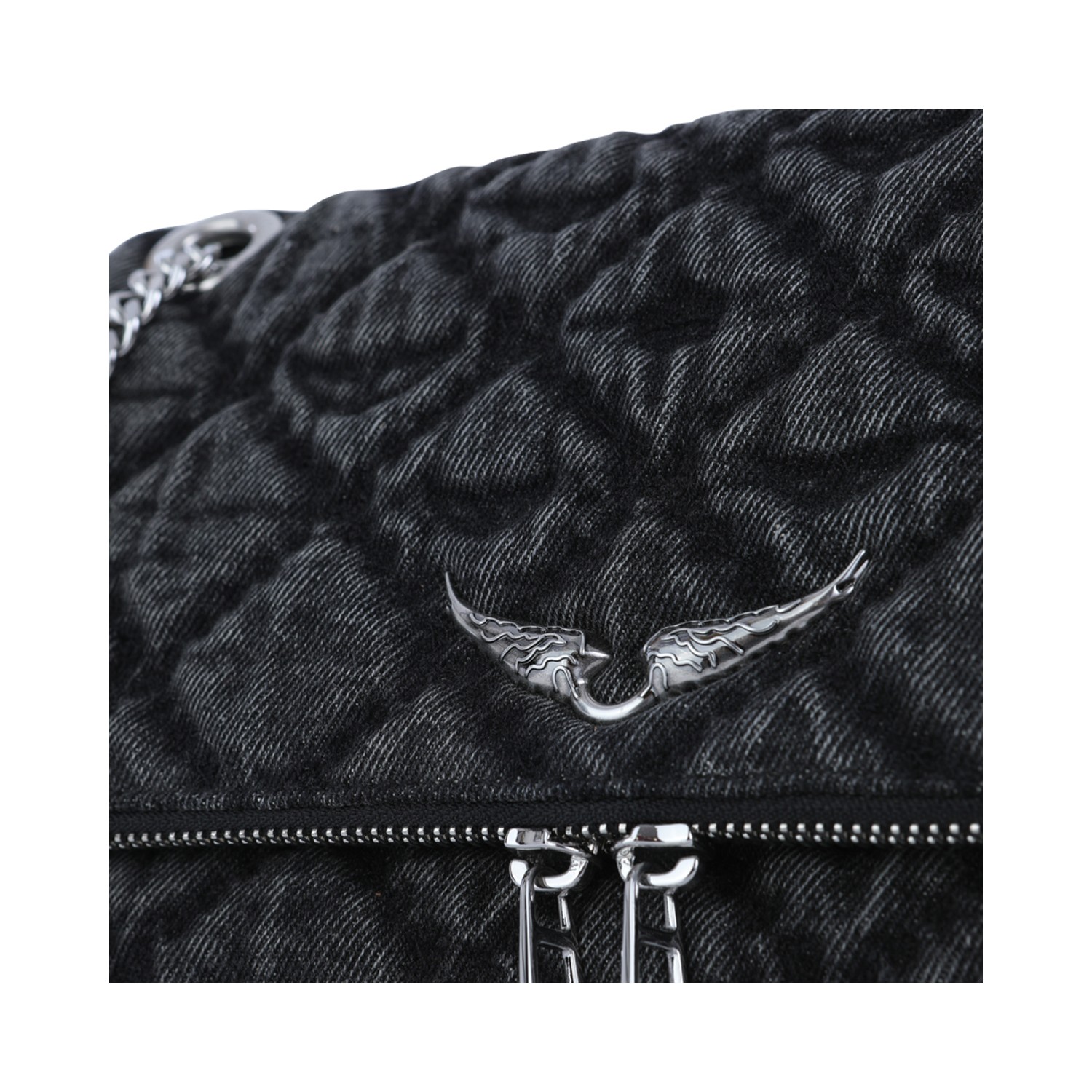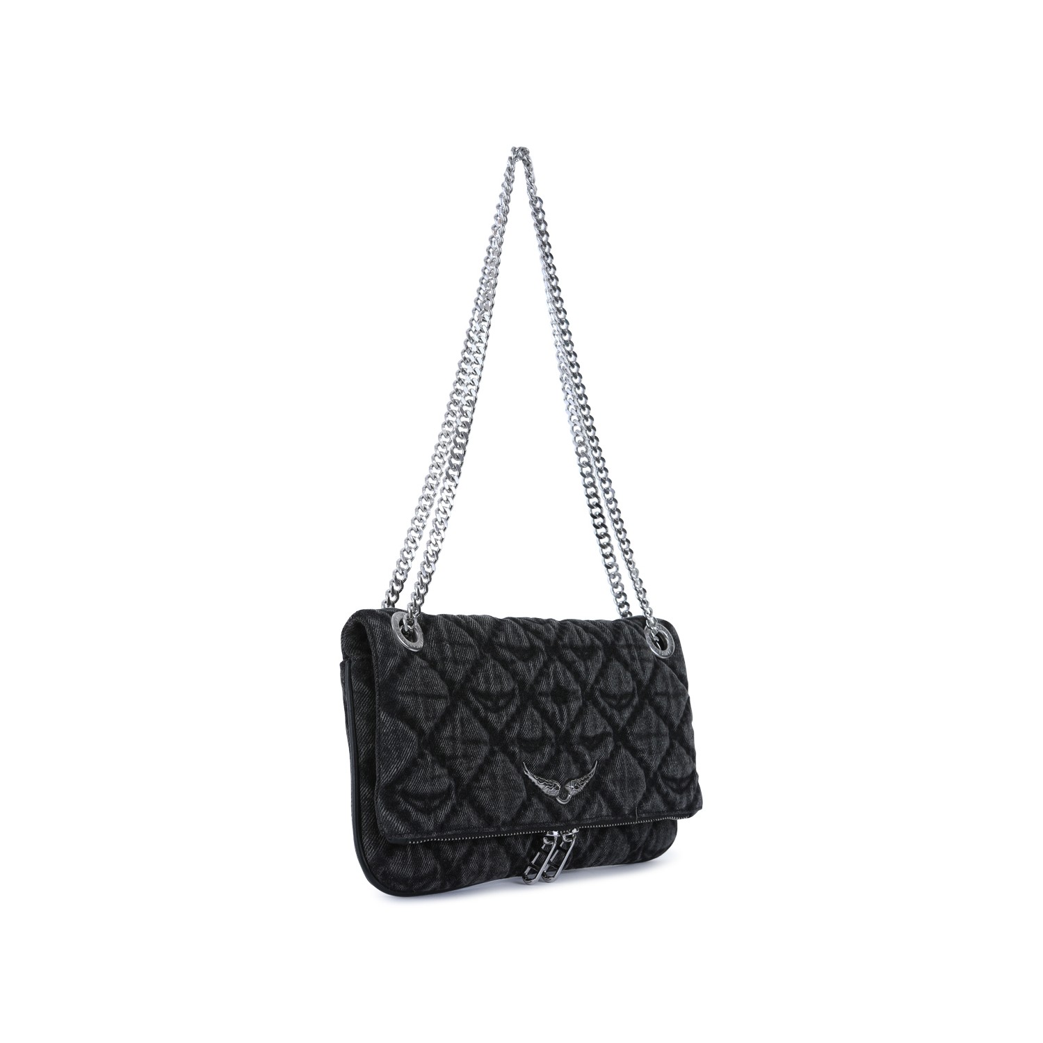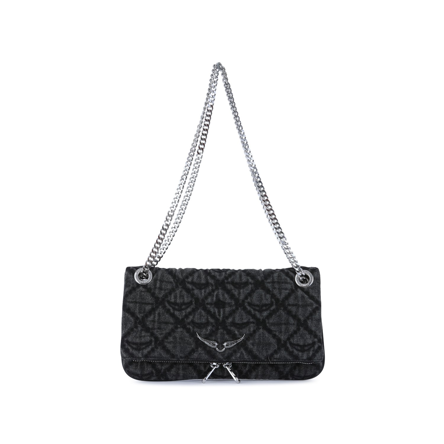 Dark grey Rock II shoulder bag from Zadig & Voltaire featuring silver tone hardware, chain-link handle, frontal logo, magnetic closure and main compartment.