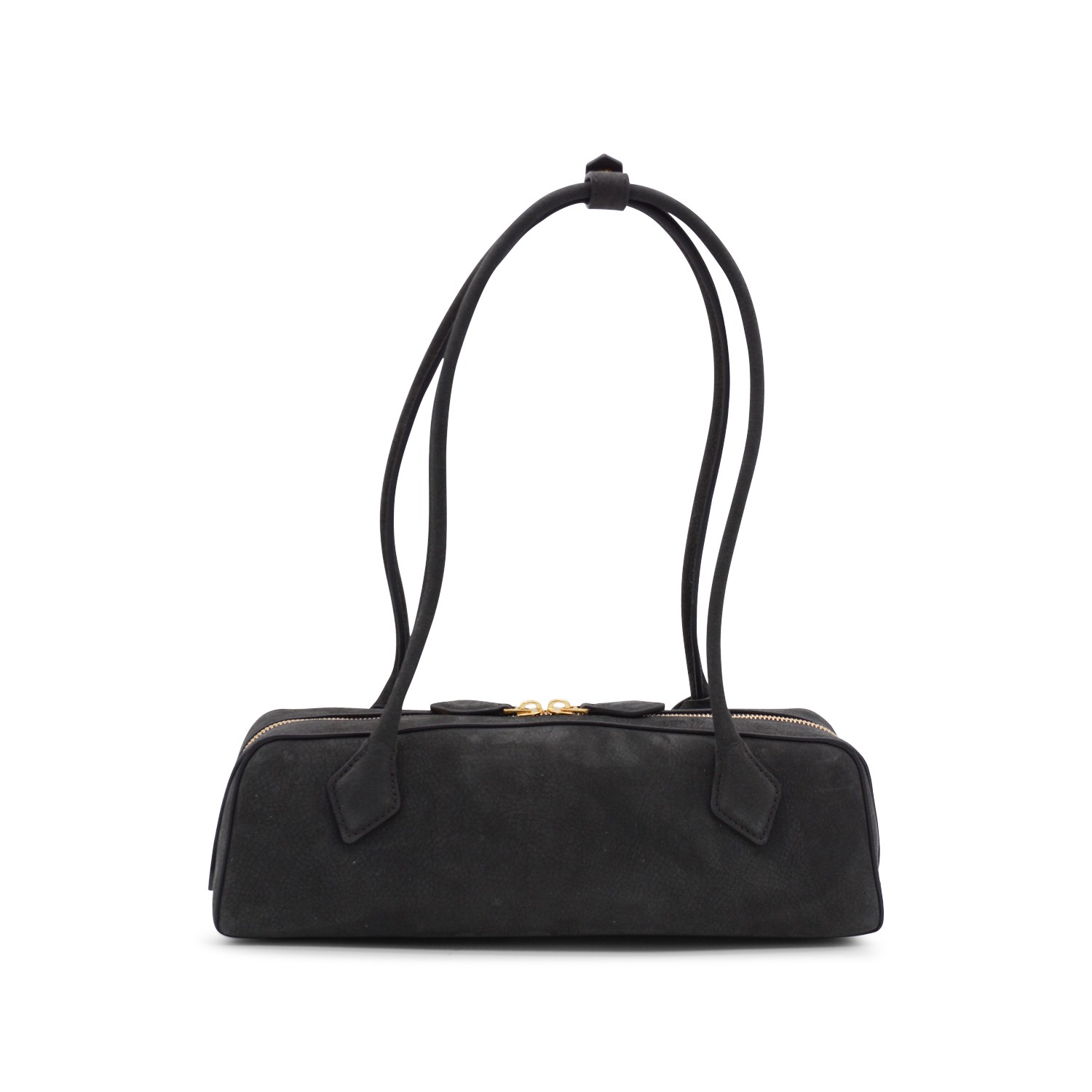 BLACK LEATHER TECKEL MEDIUM SHOULDER BAG