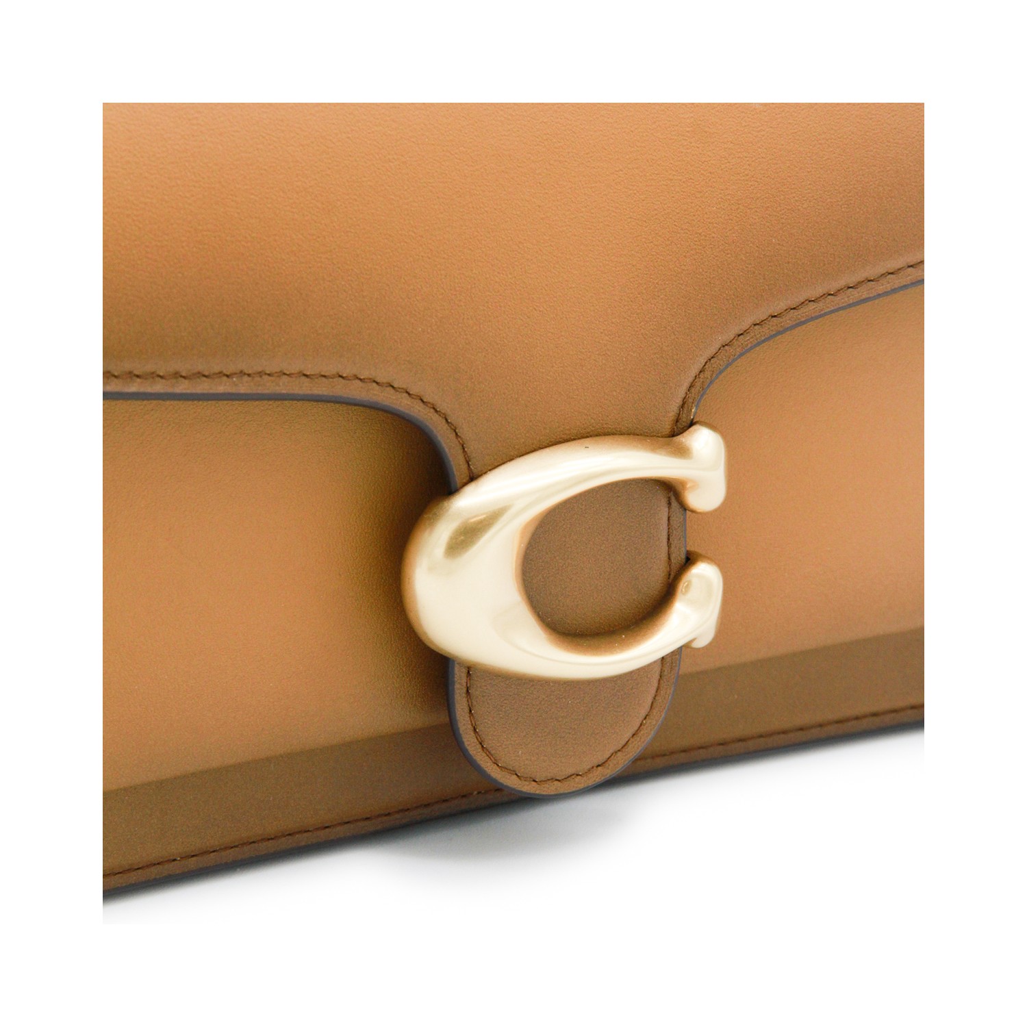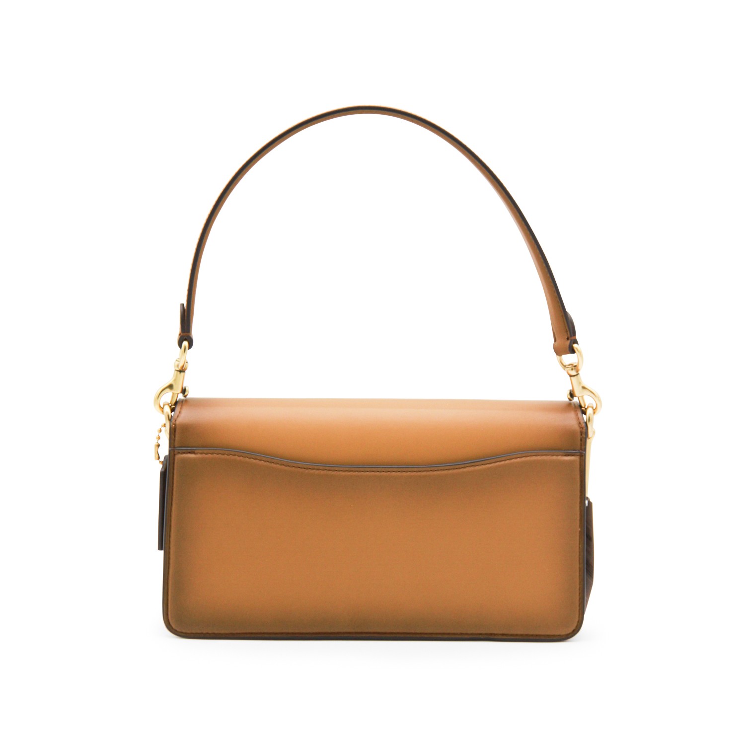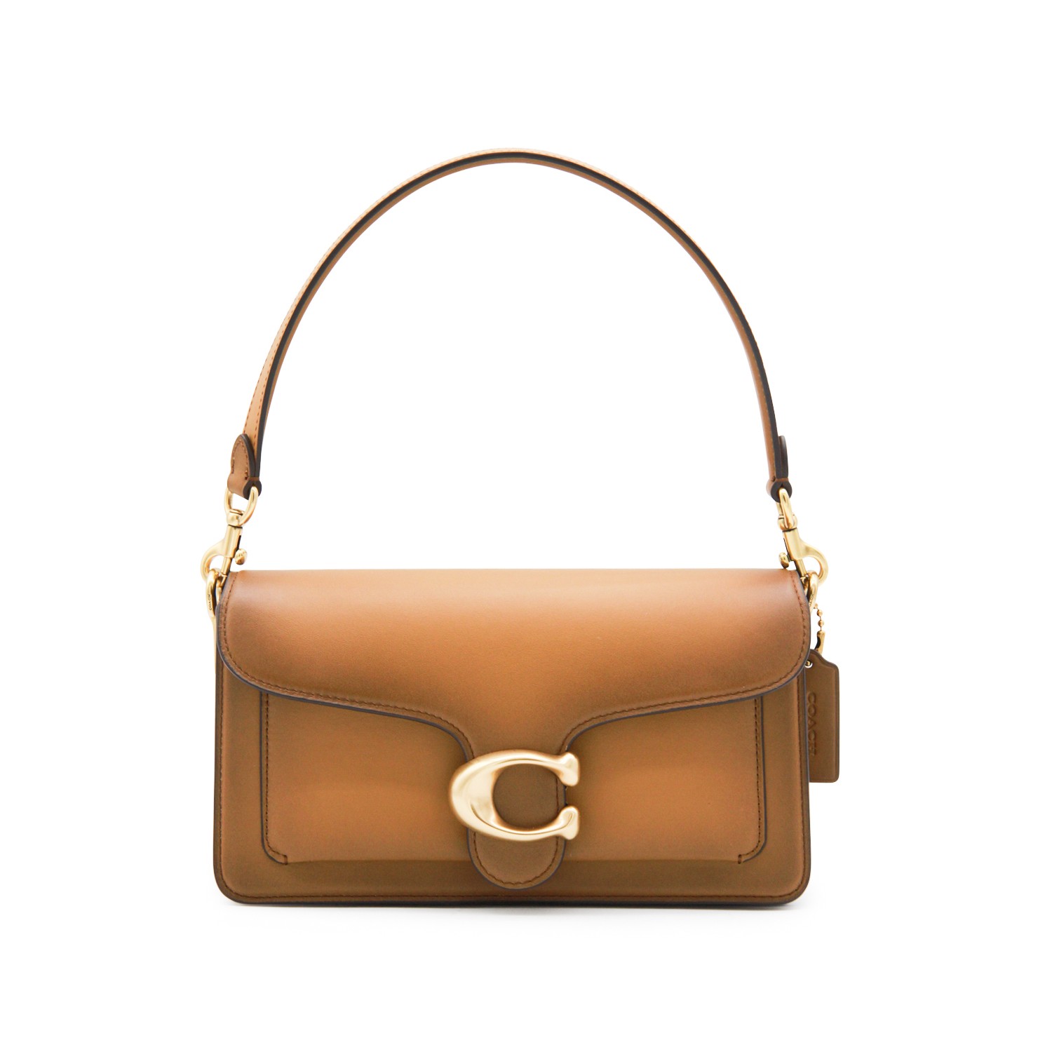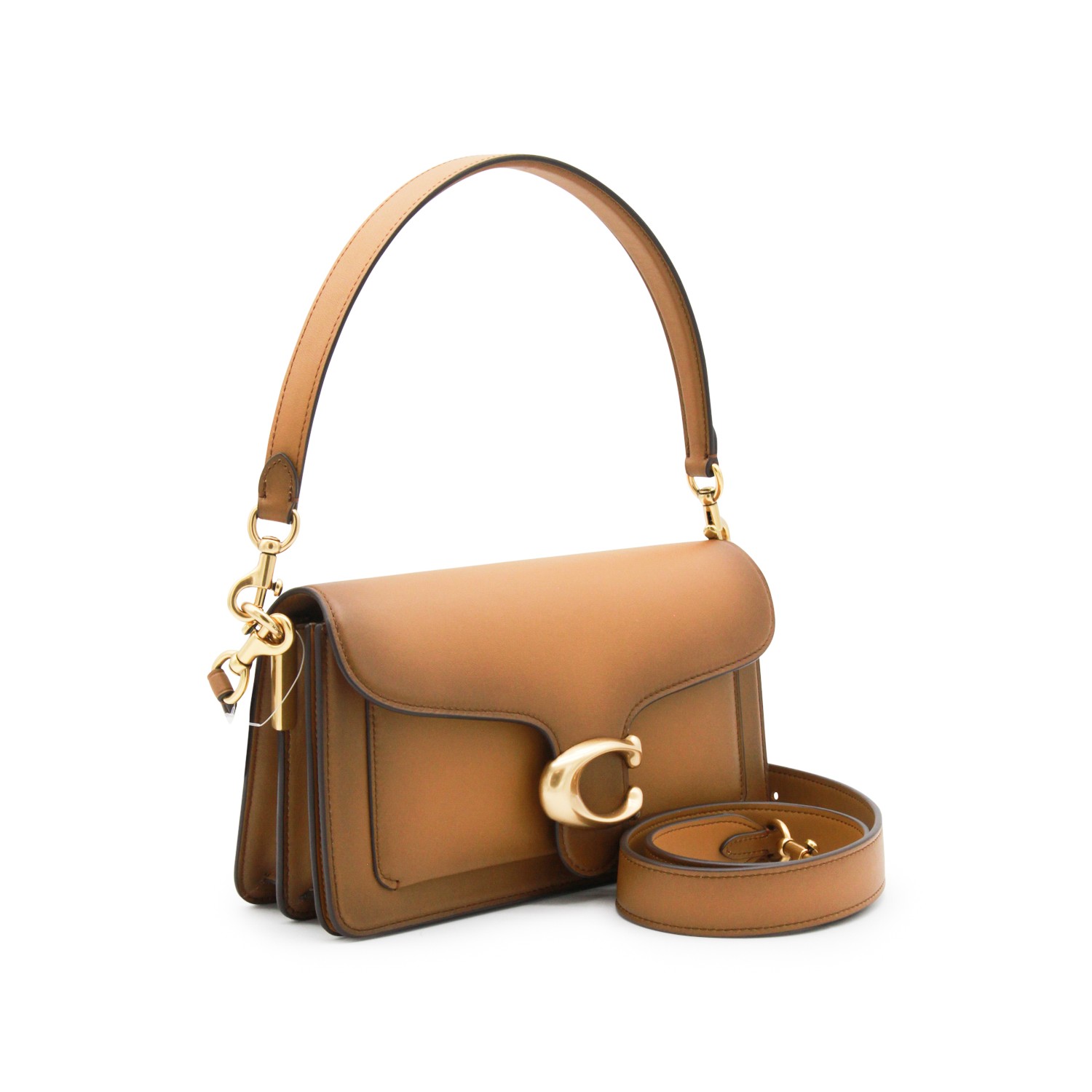 Brown leather Tabby 26 shoulder bag from Coach featuring top handle, adjustable and removable shoulder strap, gold tone hardware, magnetic closure and main compartmen.