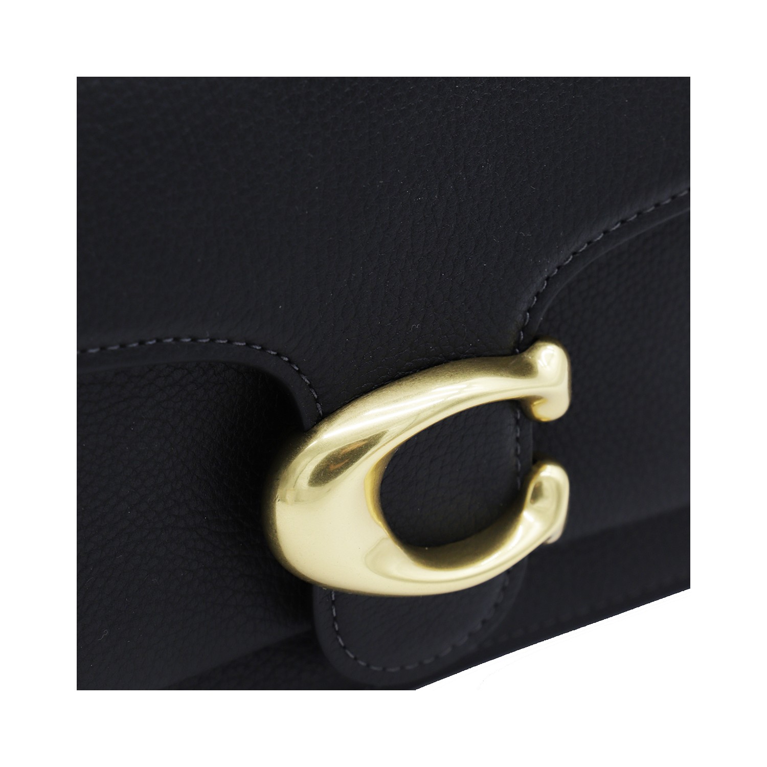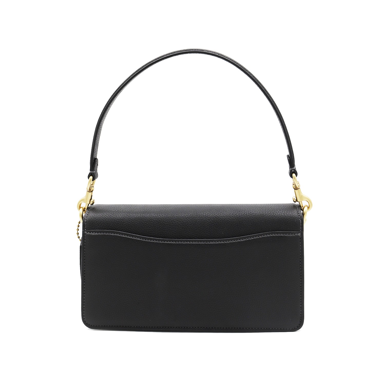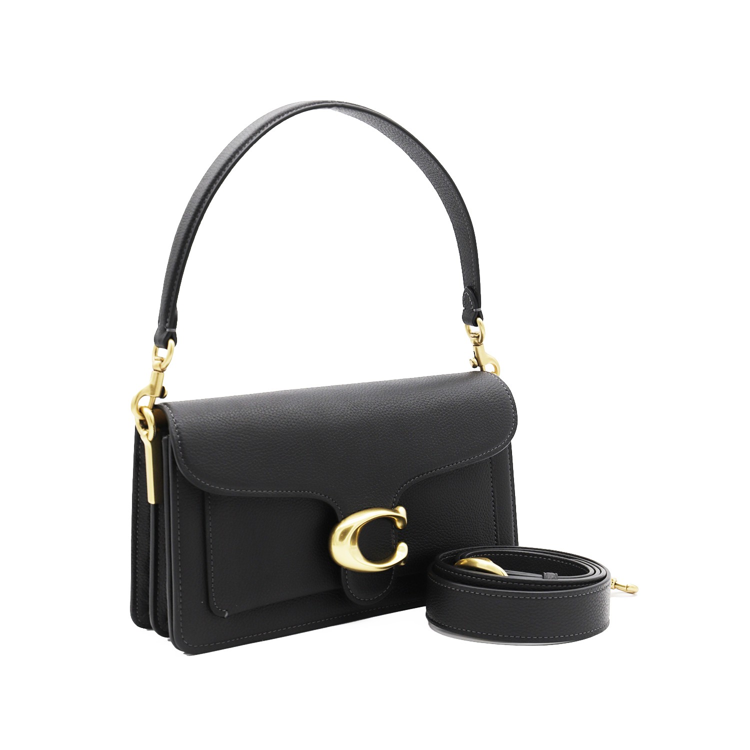 Black leather Tabby 26 shoulder bag from Coach featuring top handle, frontal fastening, logo, gold tone hardware and pocket.