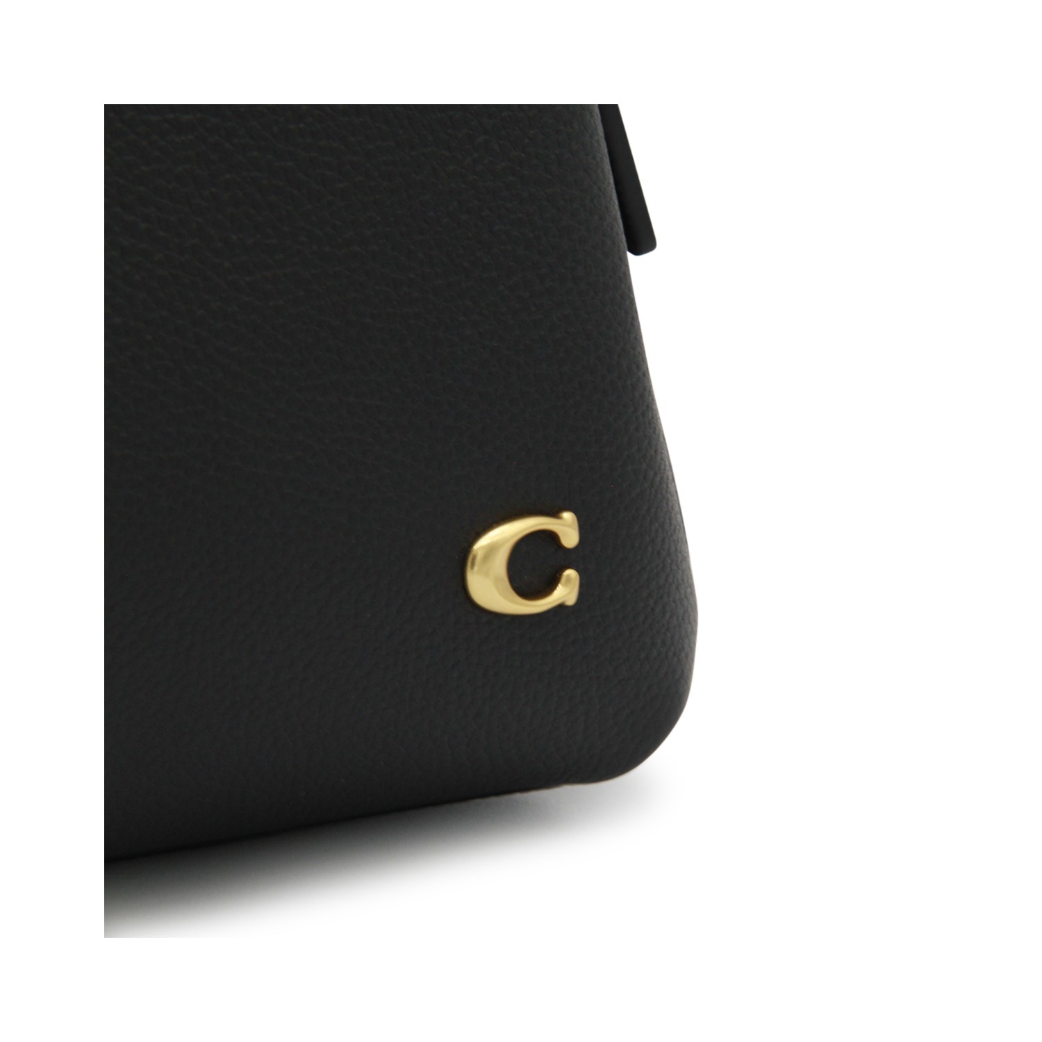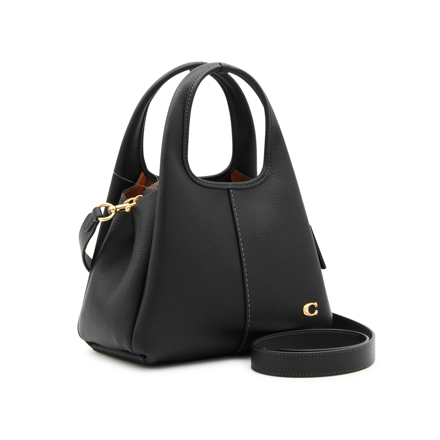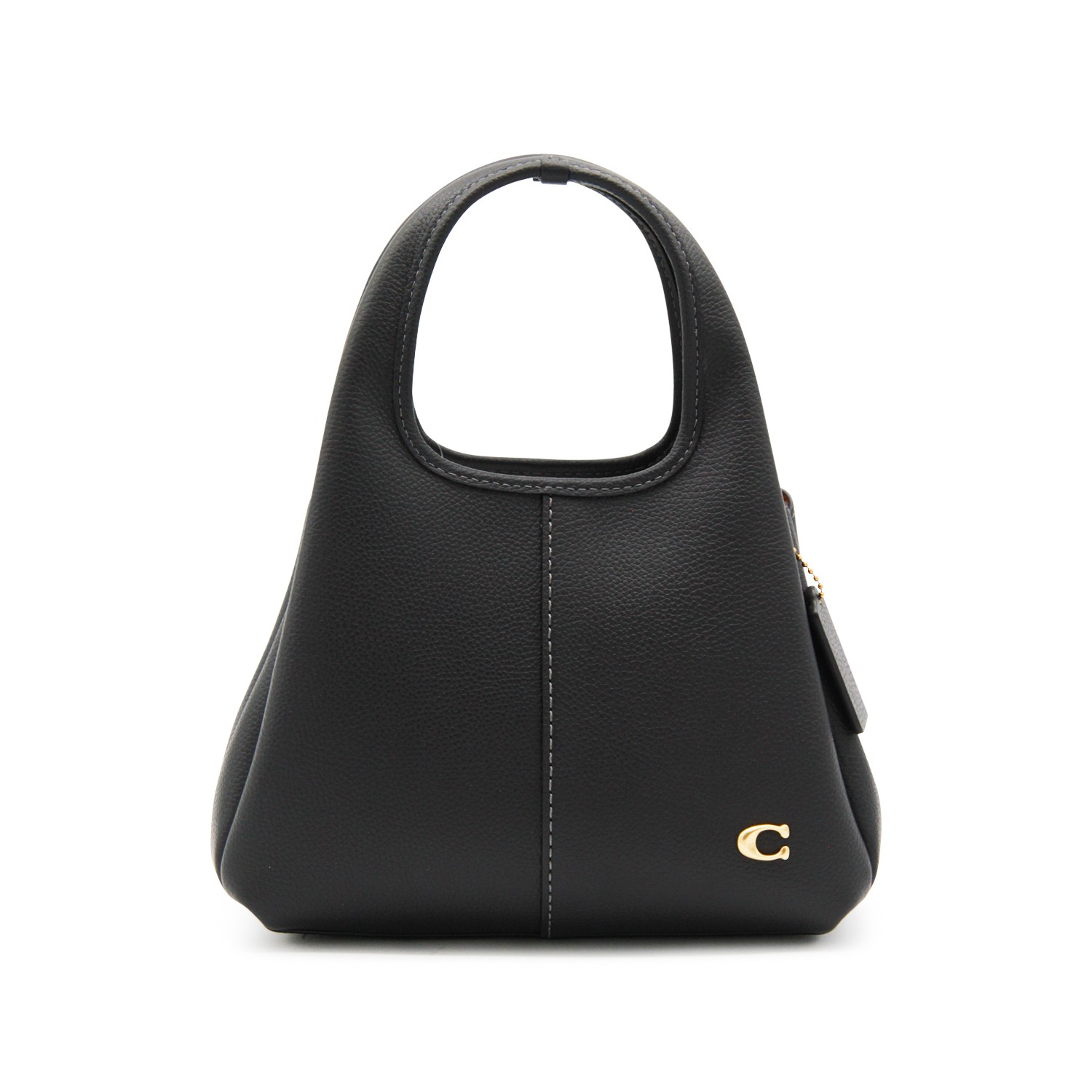 Black leather Lana 23 shoulder bag from Coach featuring top handle, monogram logo, removable shoulder strap and main compartment.