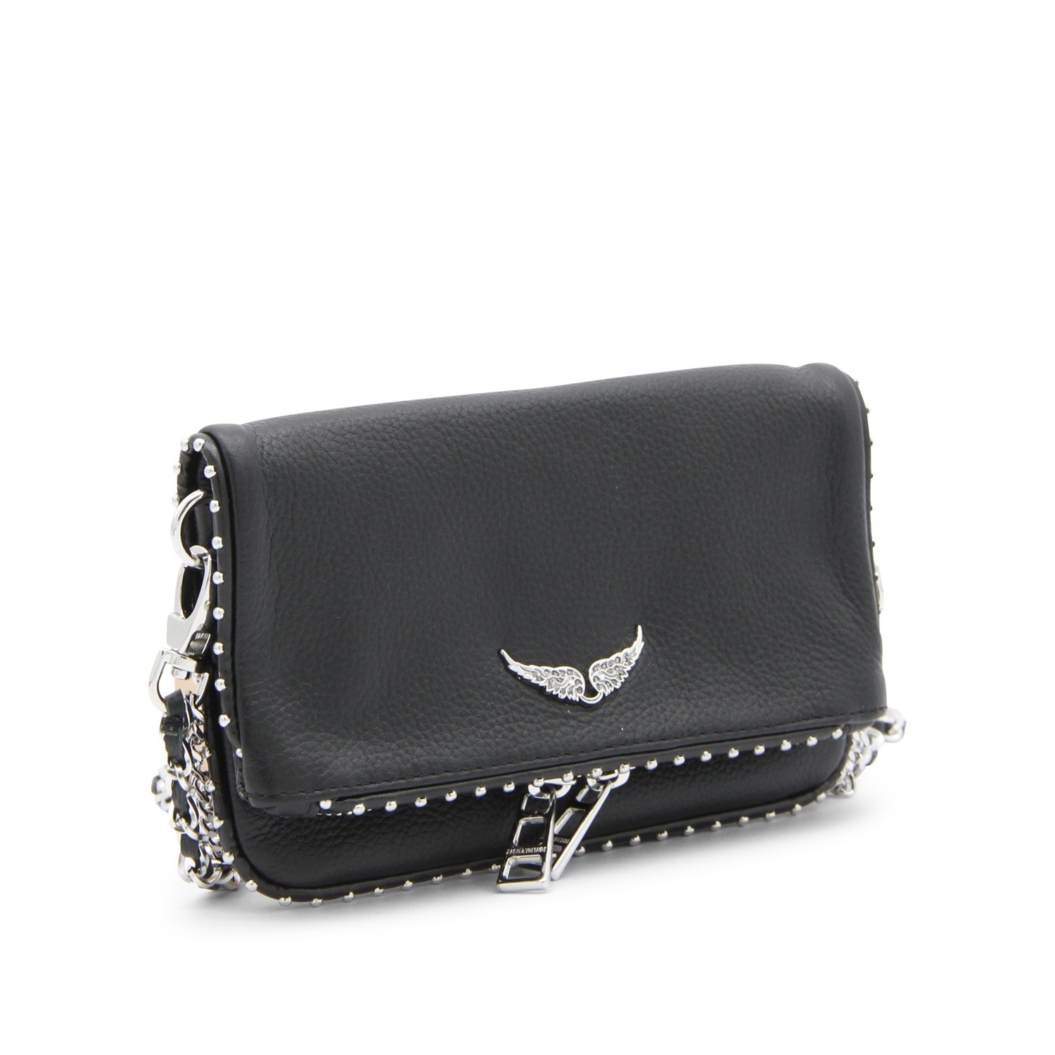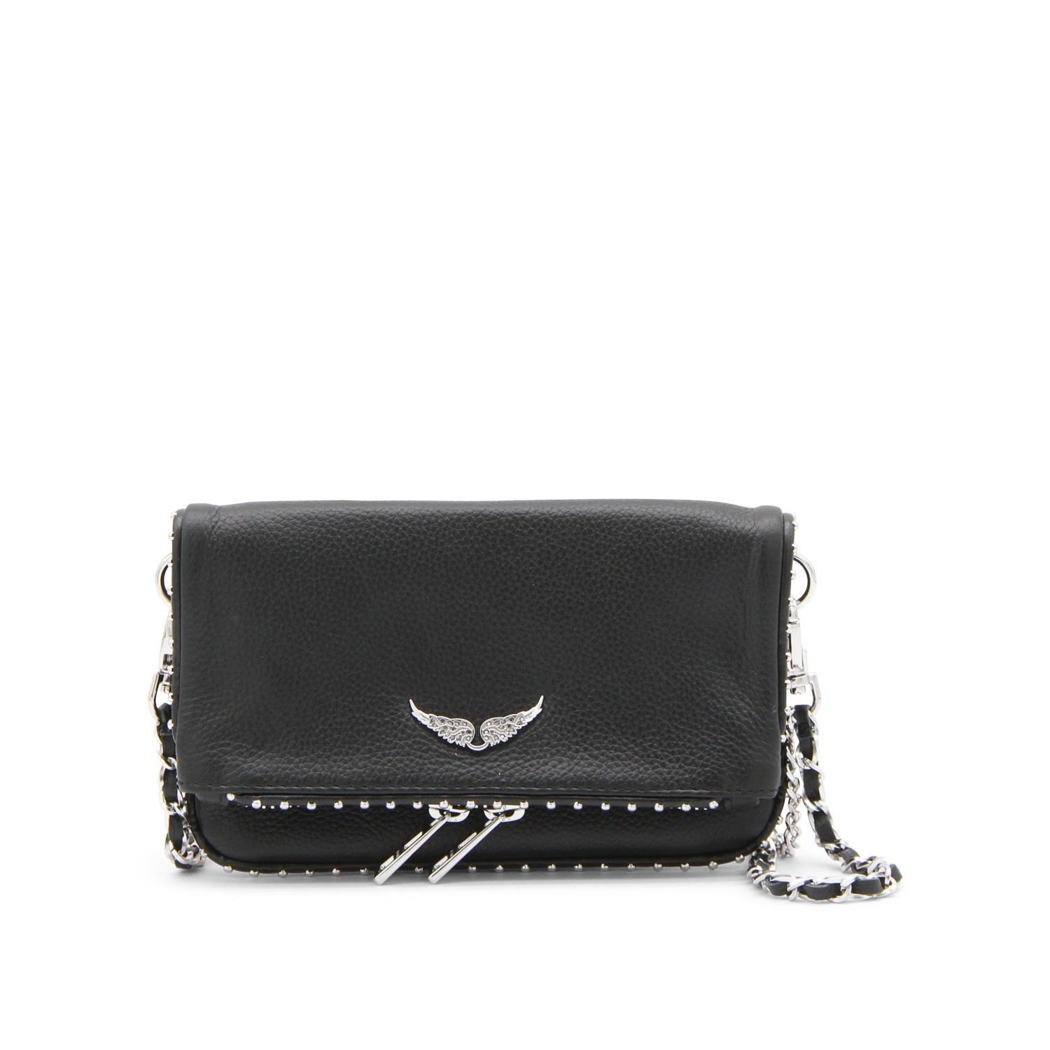 Black Nano shoulder bag from Zadig&Voltaire featuring silver tone hardware, frontal fastening, zip pockets and strap.