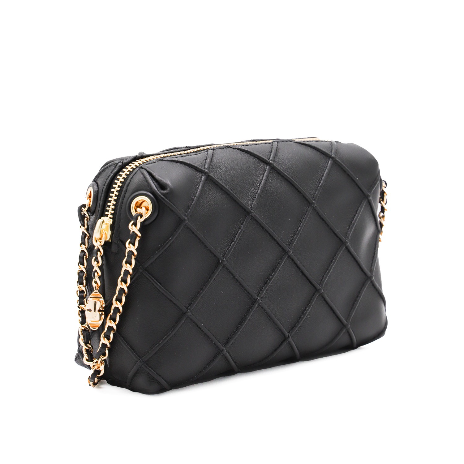 BLACK LEATHER FLEMING CROSSBODY BAG