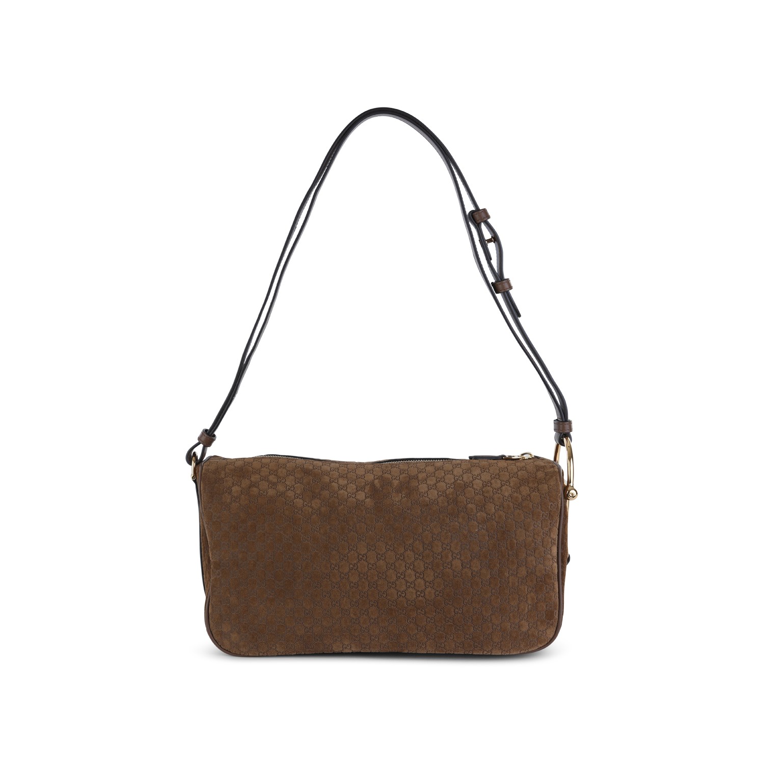 Brown leather shoulder bag from Gucci featuring top adjustable handle, main compartment, zip fastening and gold tone hardware.