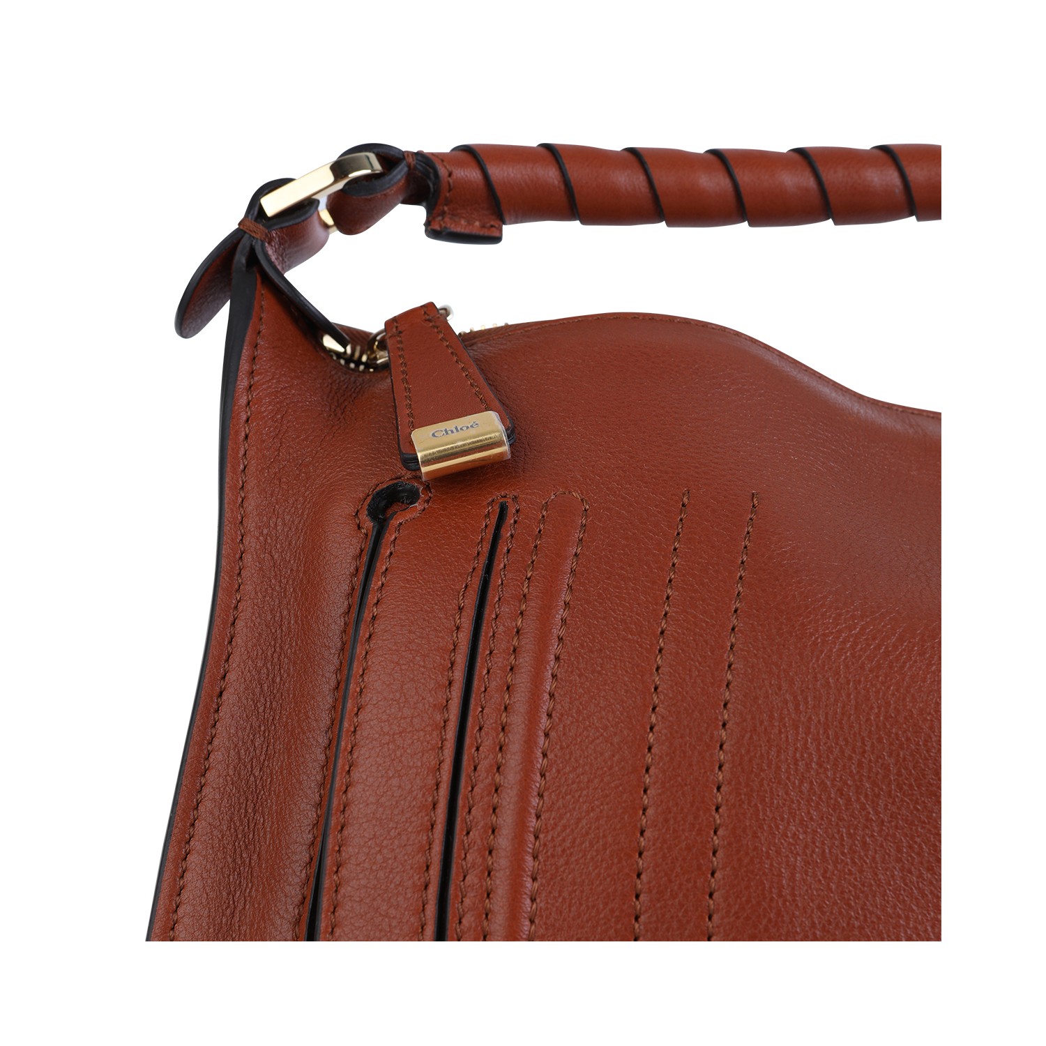 Brown leather Marcie shoulder bag from Chlofeaturing top handle, main compartment, button fastening, engraved logo and gold tone hardware.