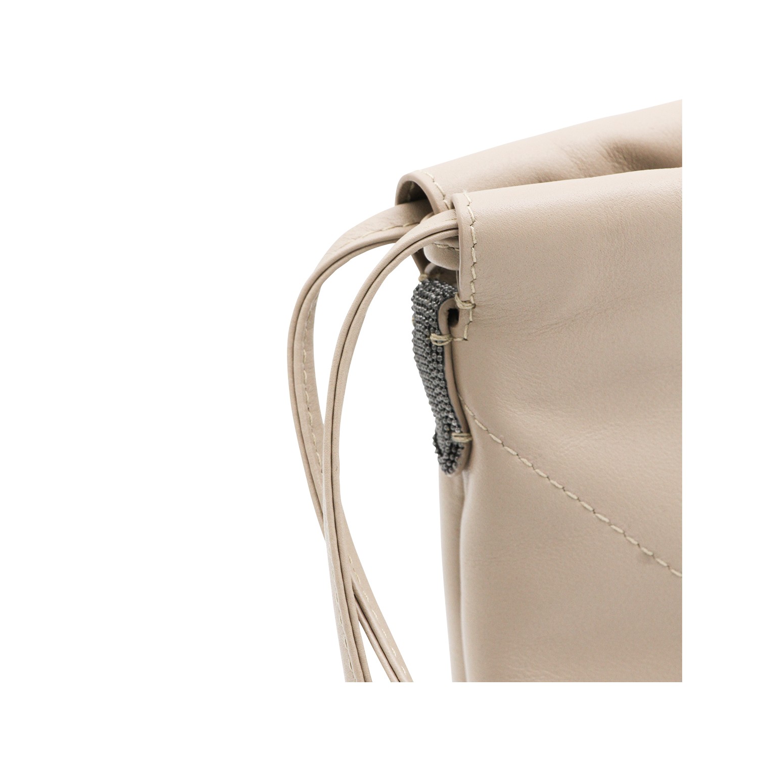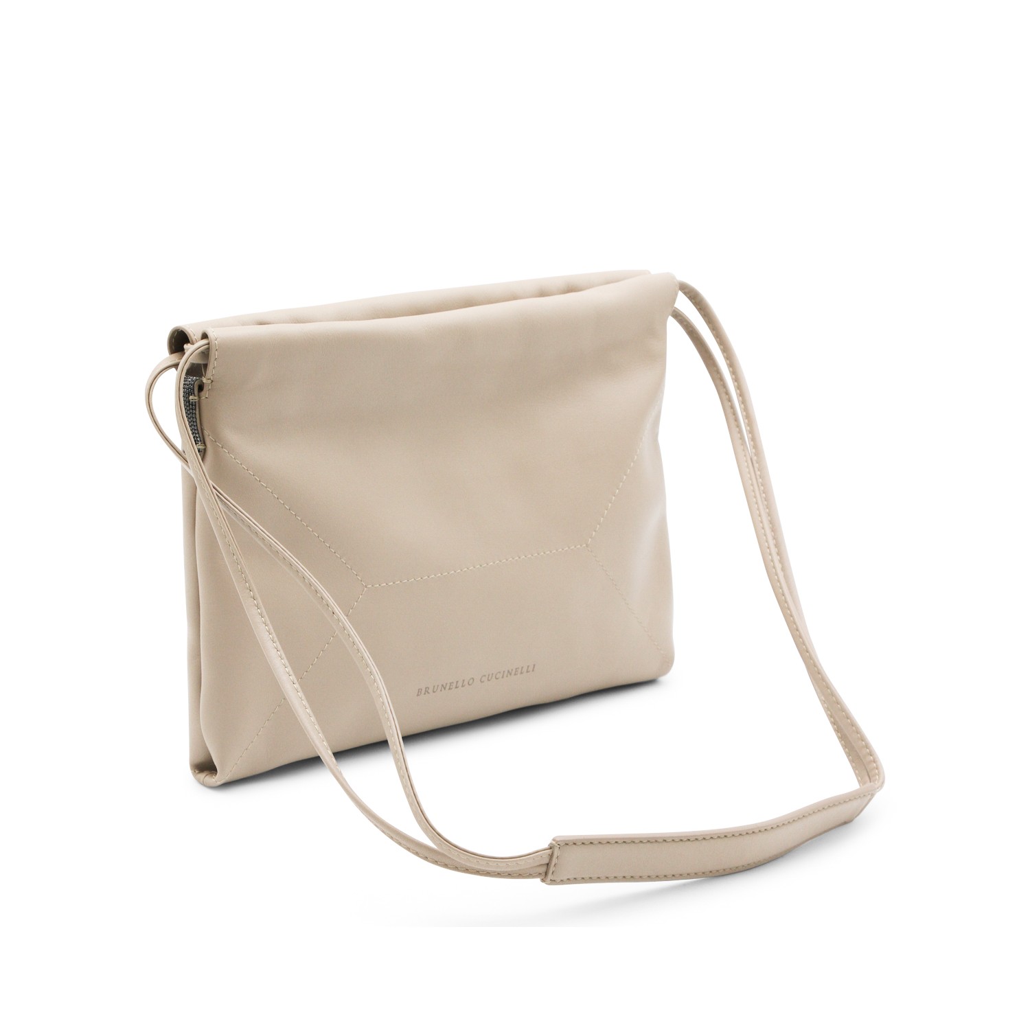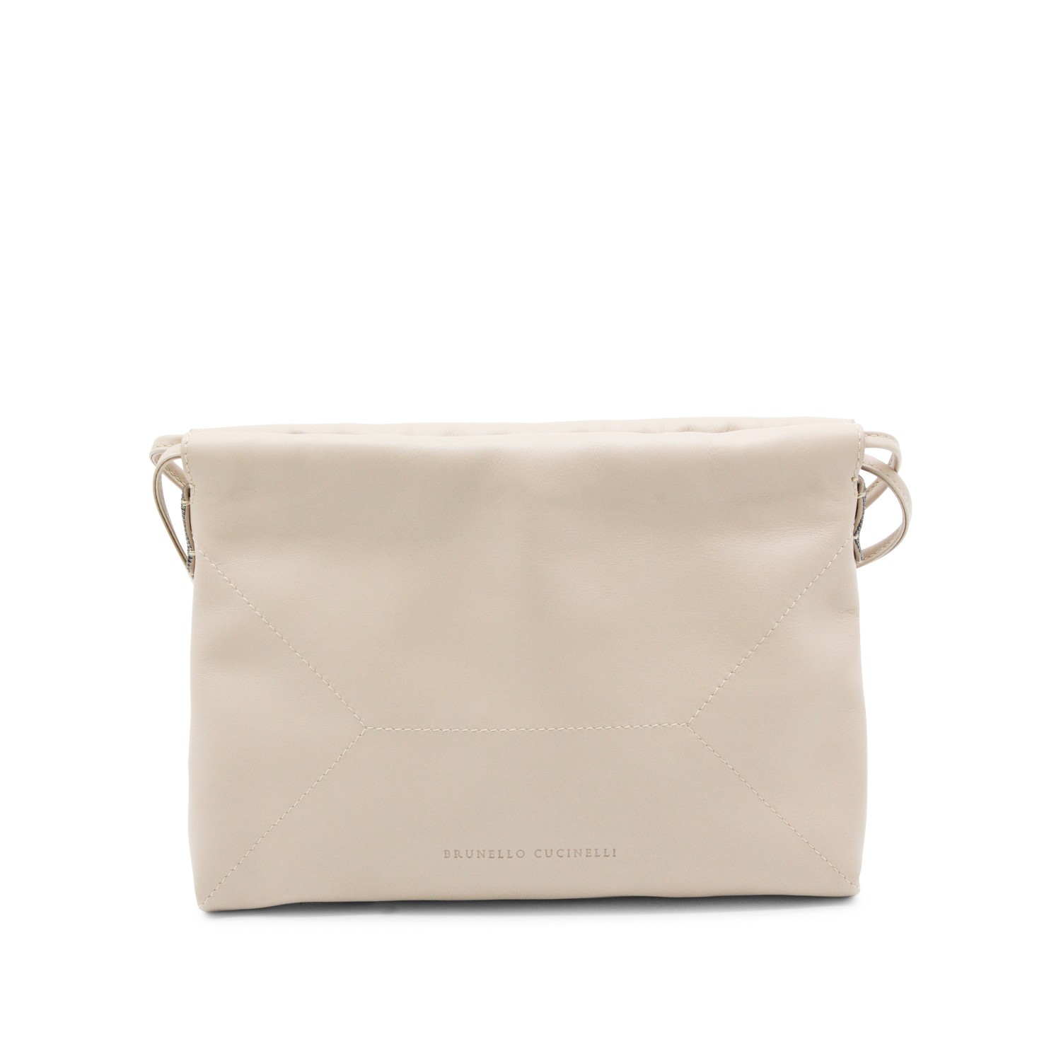 White leather crossbody bag from Brunello Cucinelli featuring shoulder strap, main compartment and logo.
