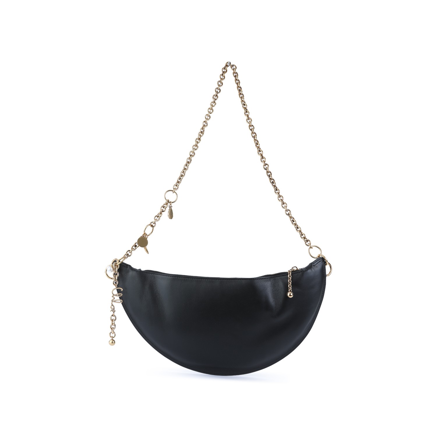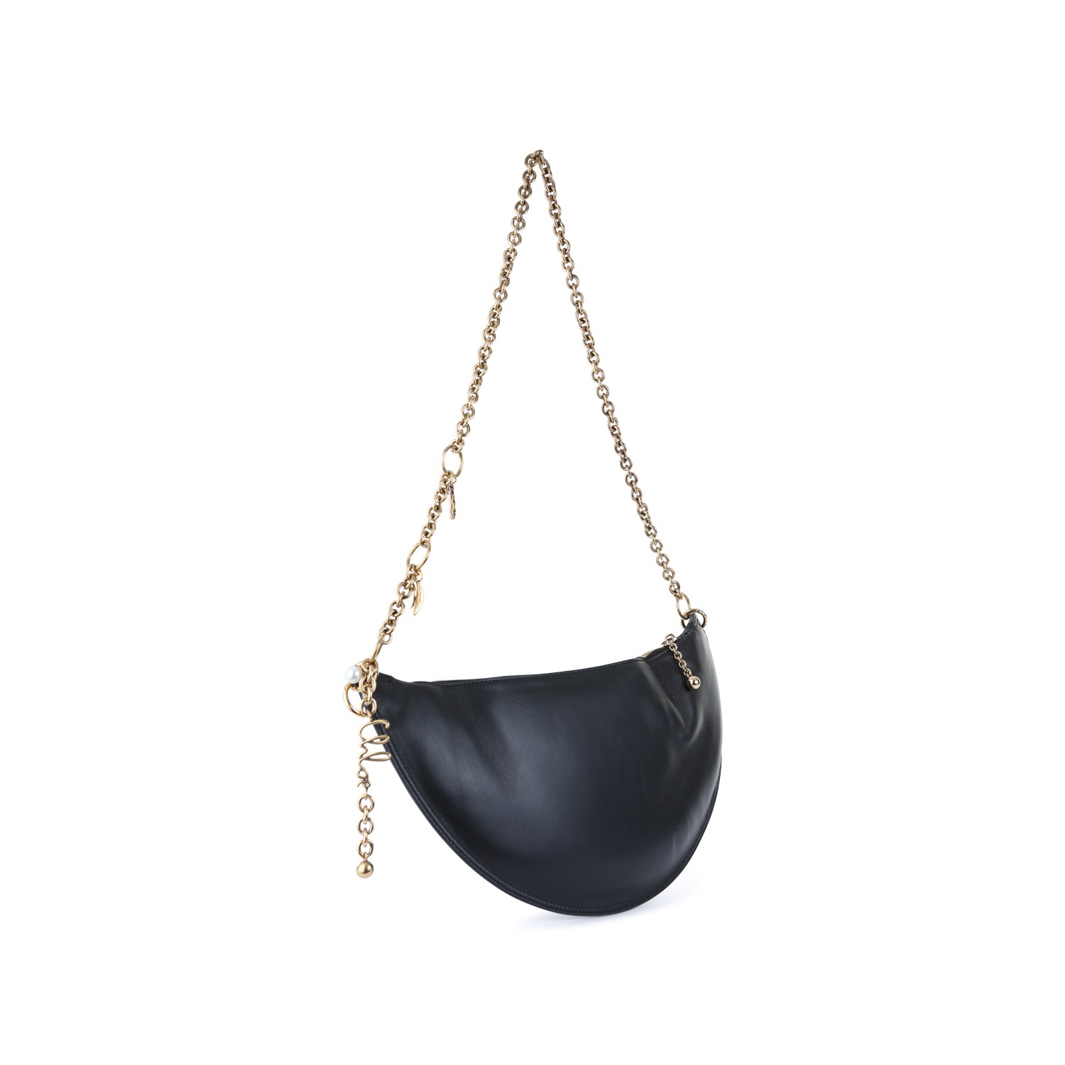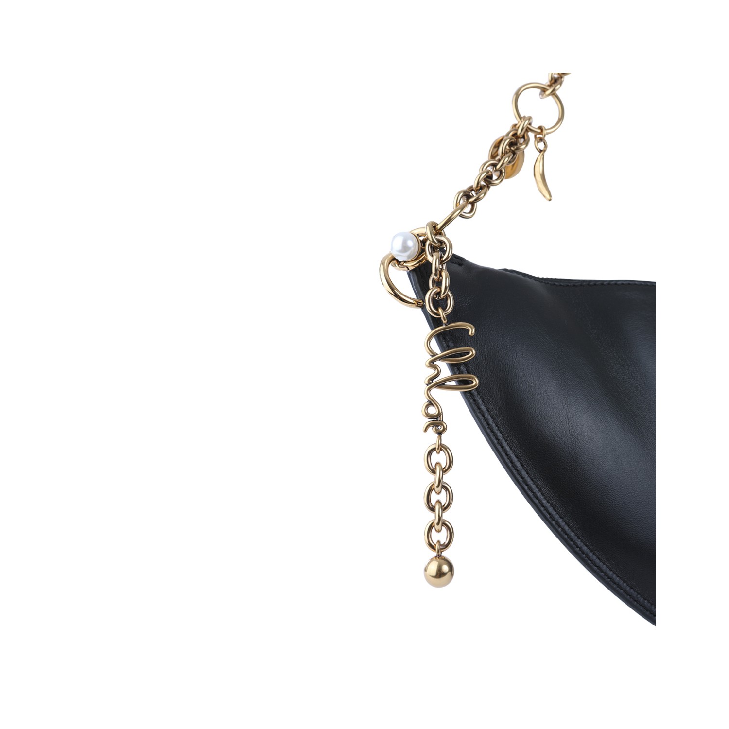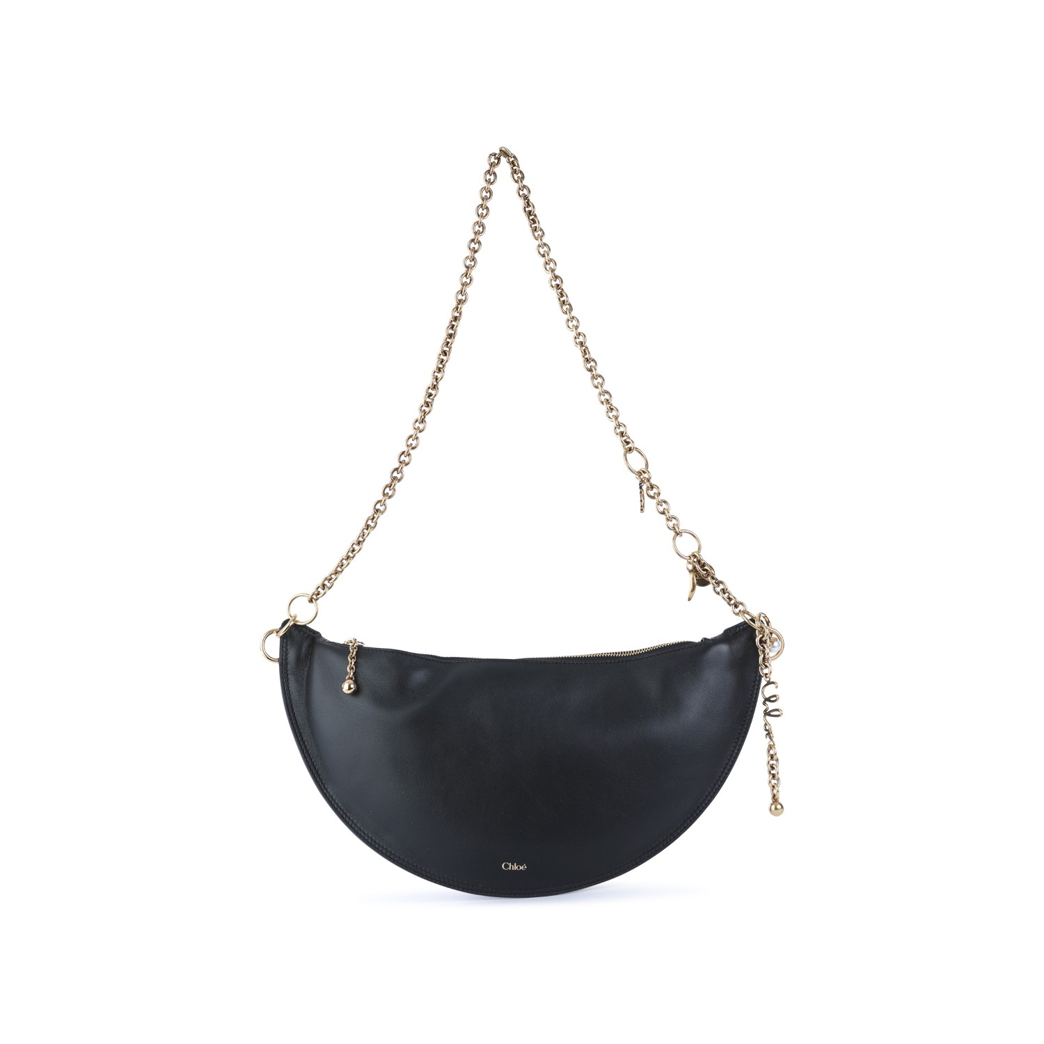 Black leather Icons shoulder bag from Chlofeaturing gold tone hardware, frontal lettering logo, adjustable and removable chain shoulder strap, zip fastening and main compartment.