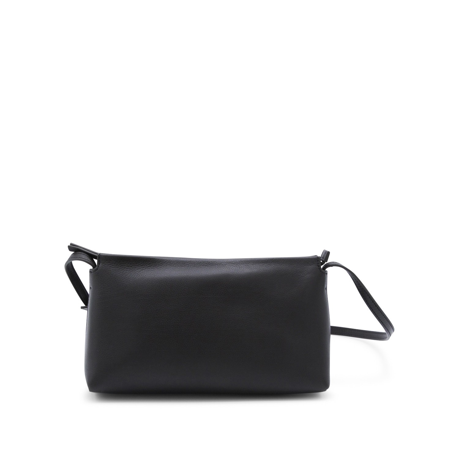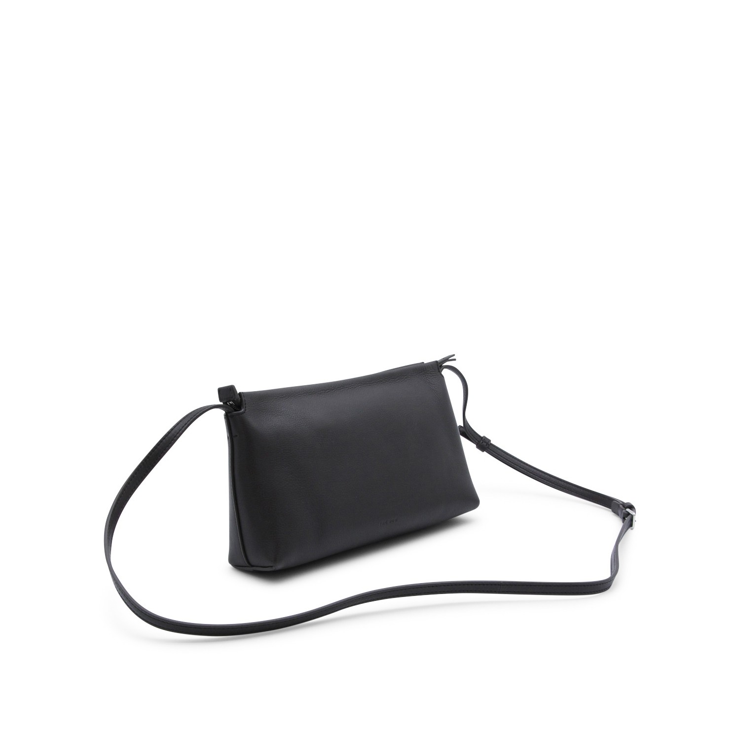 Black leather Rene crossbody bag from The Row featuring rectangular shape, adjustable shoulder strap, top zip closure and main compartment.