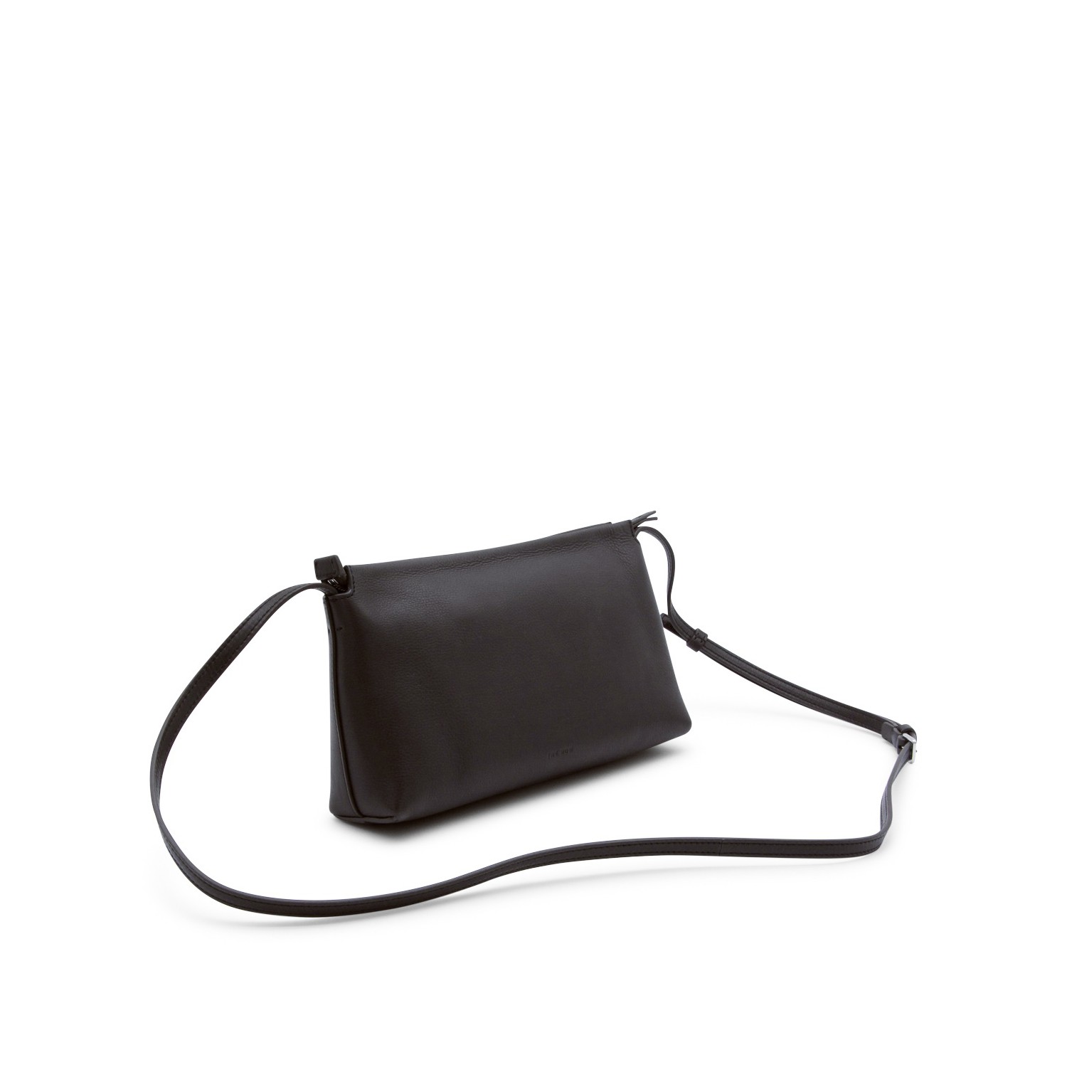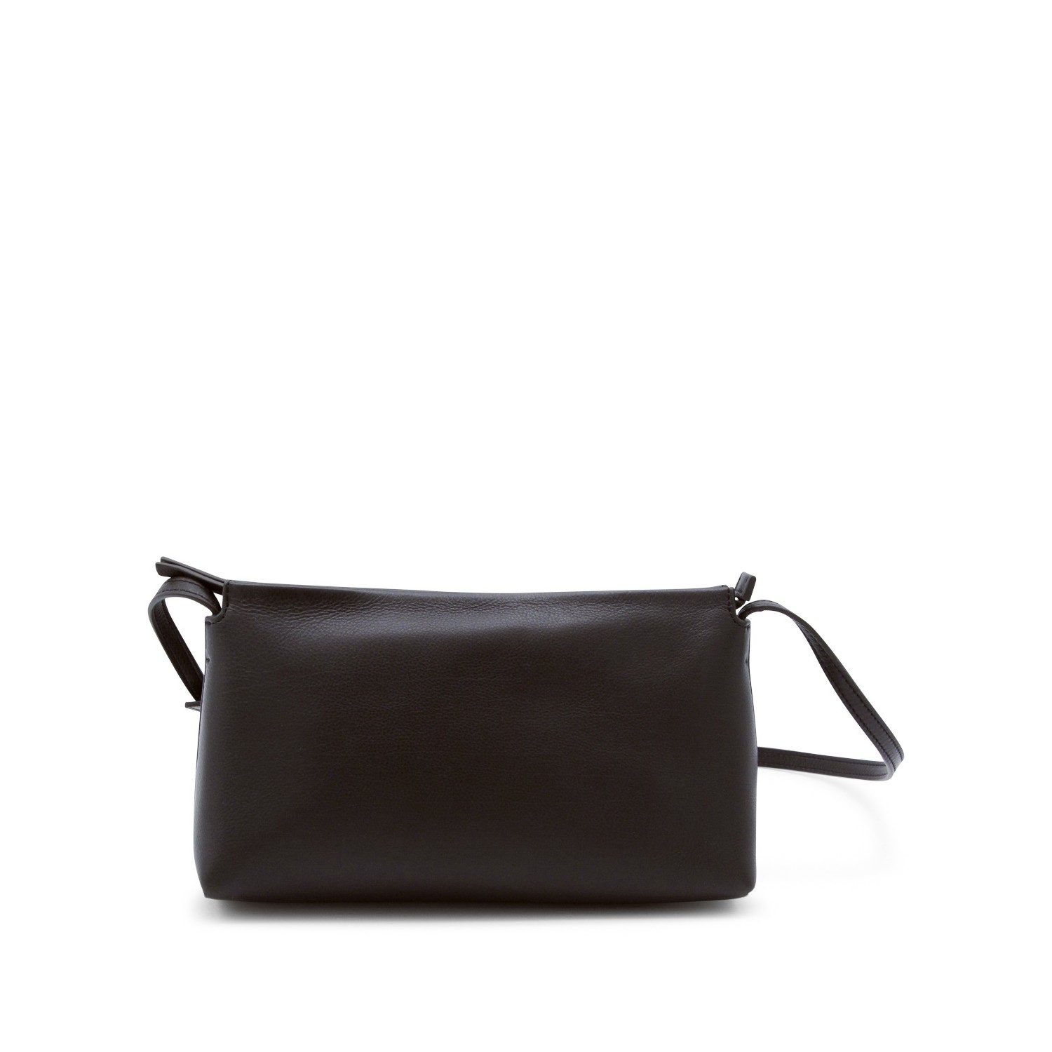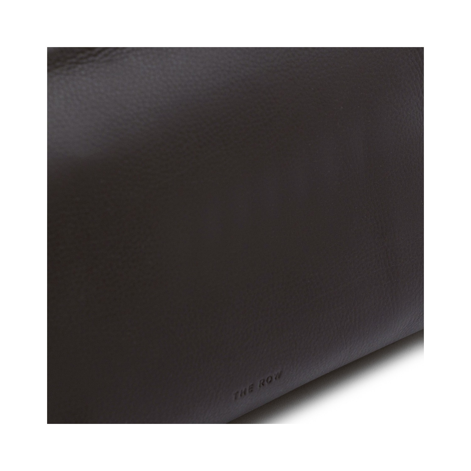 Dark brown leather Rene crossbody bag from The Row featuring adjustable shoulder strap, top zip fastening, rectangular shape and main compartment.