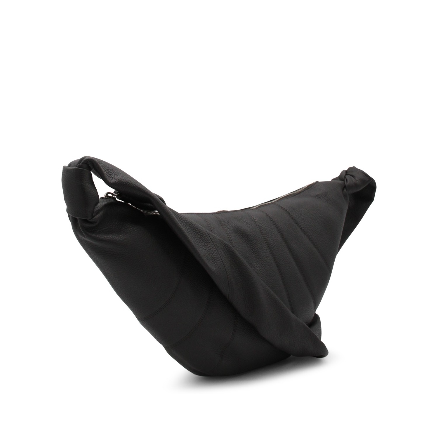 Dark brown medium Croissant shoulder bag rom Lemaire featuring shoulder strap, knot detail, zip fastening, main compartment and internal pocket.