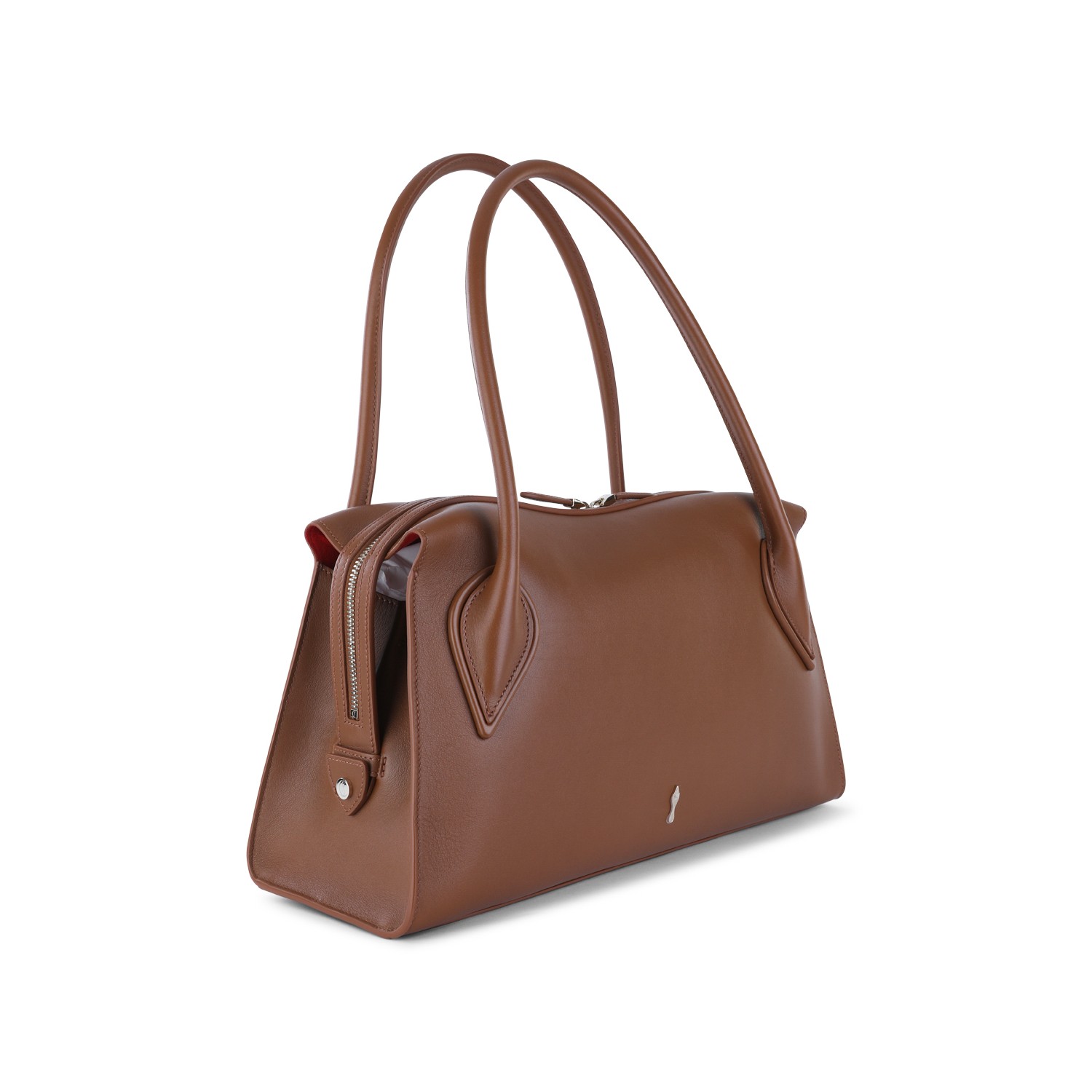 Brown leather Venus medium shoulder bag from Christian Louboutin featuring top handles, gold embellishment, zip fastening, compartments and zipped pocket.