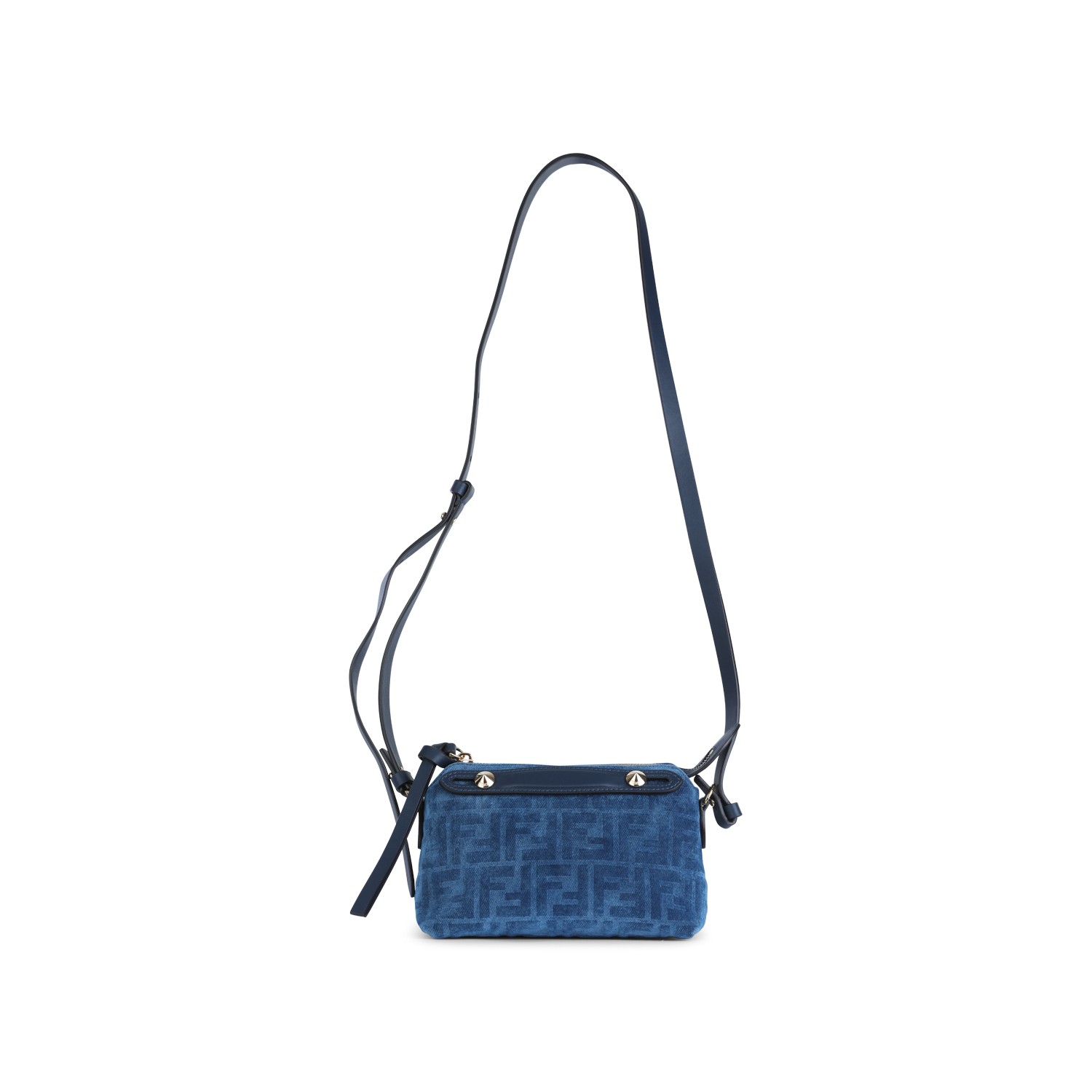 Blue leather By The Way Soft crossbody bag from Fendi featuring main compartment with zip fastening, removable and adjustable shoulder strap, all over iconic FF stamp, details and gold tone logo hardware.