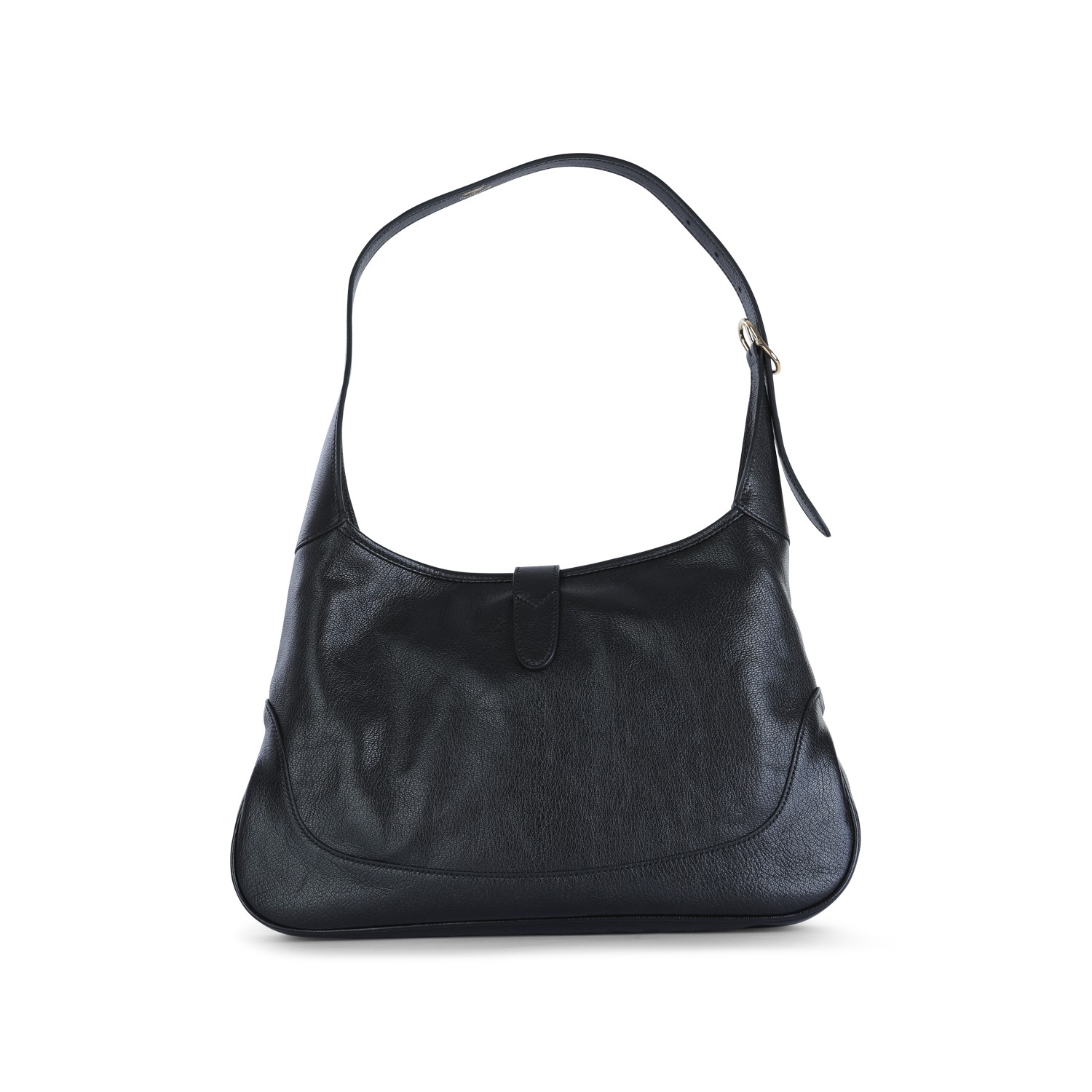 BLACK LEATHER JACKIE HOBO MEDIUM SHOULDER BAG