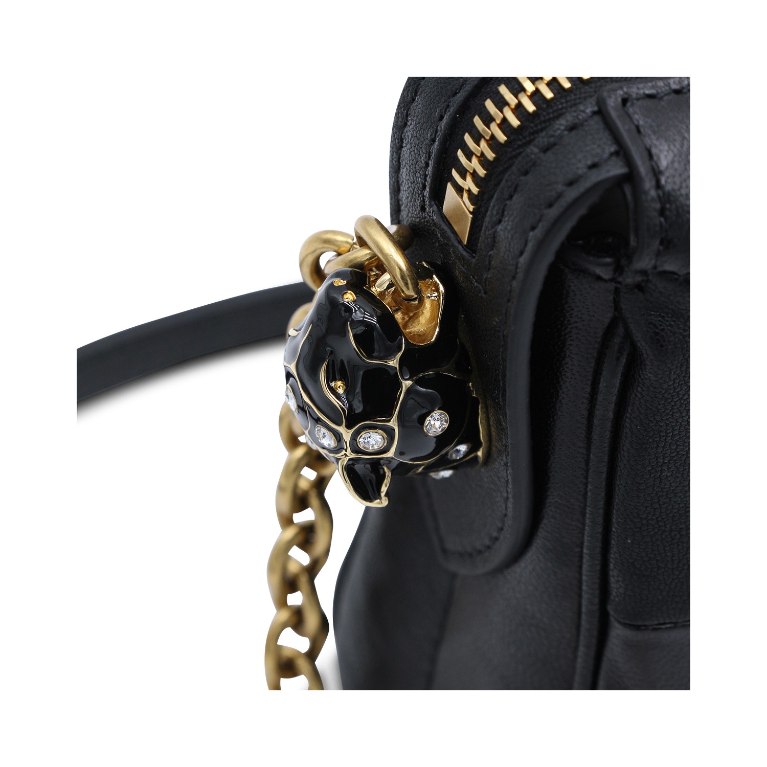 BLACK LEATHER PANTHEA SMALL SHOULDER BAG
