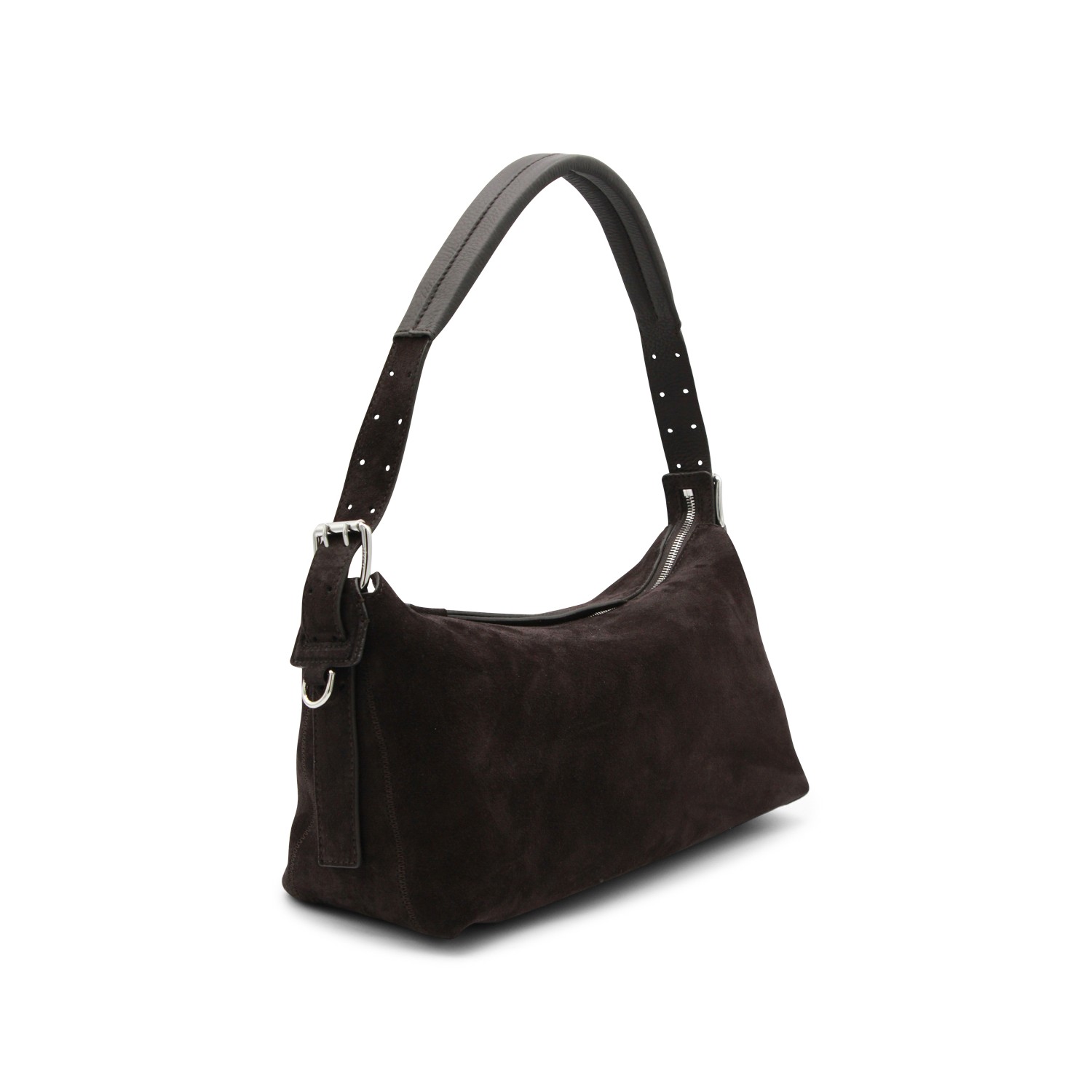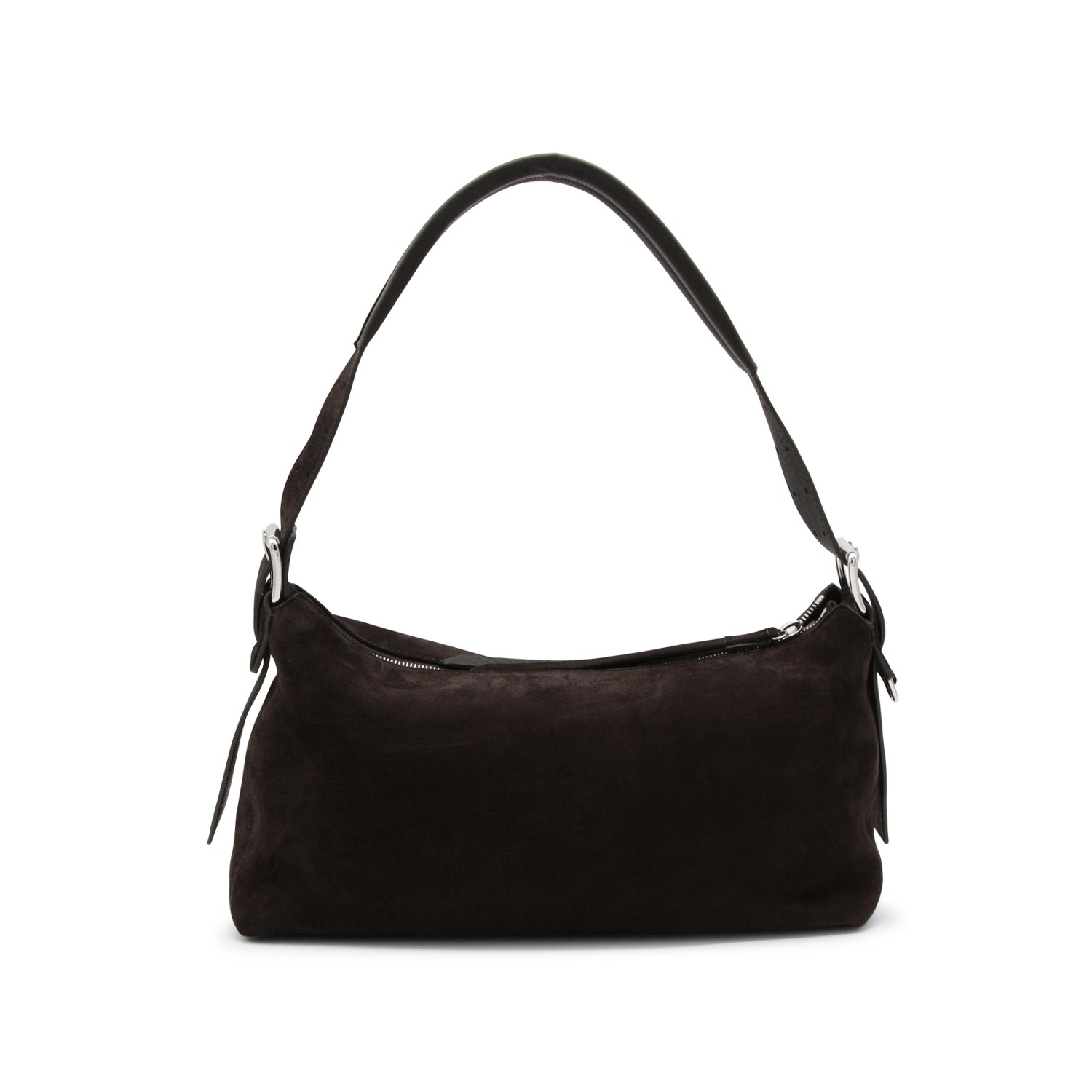 Dark brown leather Baguette shoulder bag from Lemaire featuring belted top handle, suede, zip closure and main compartment.