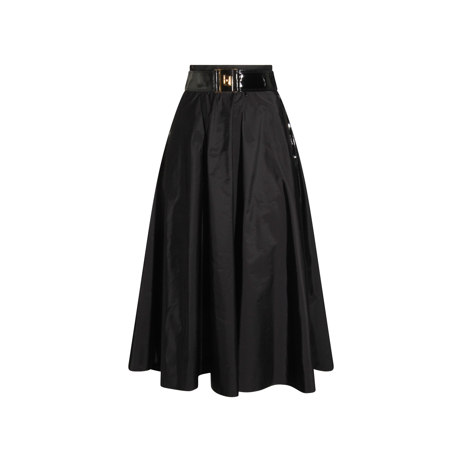 Black skirt from Elisabetta Franchi featuring belt waist, back zip fastening, pleated details and regular vestibility.
