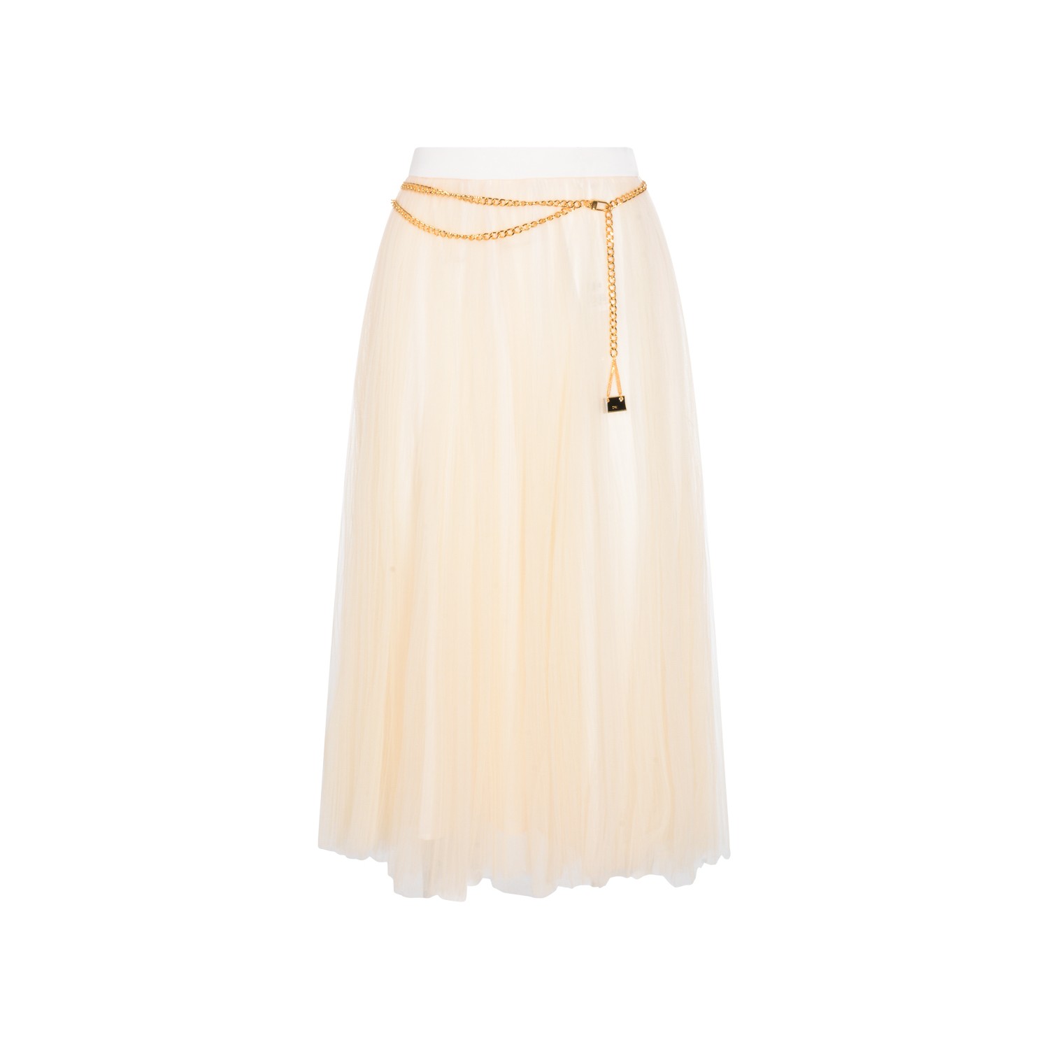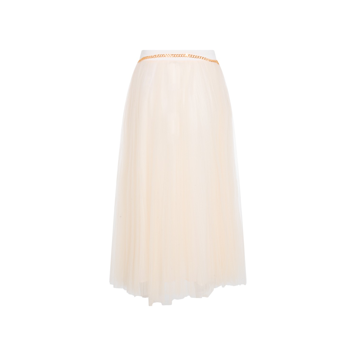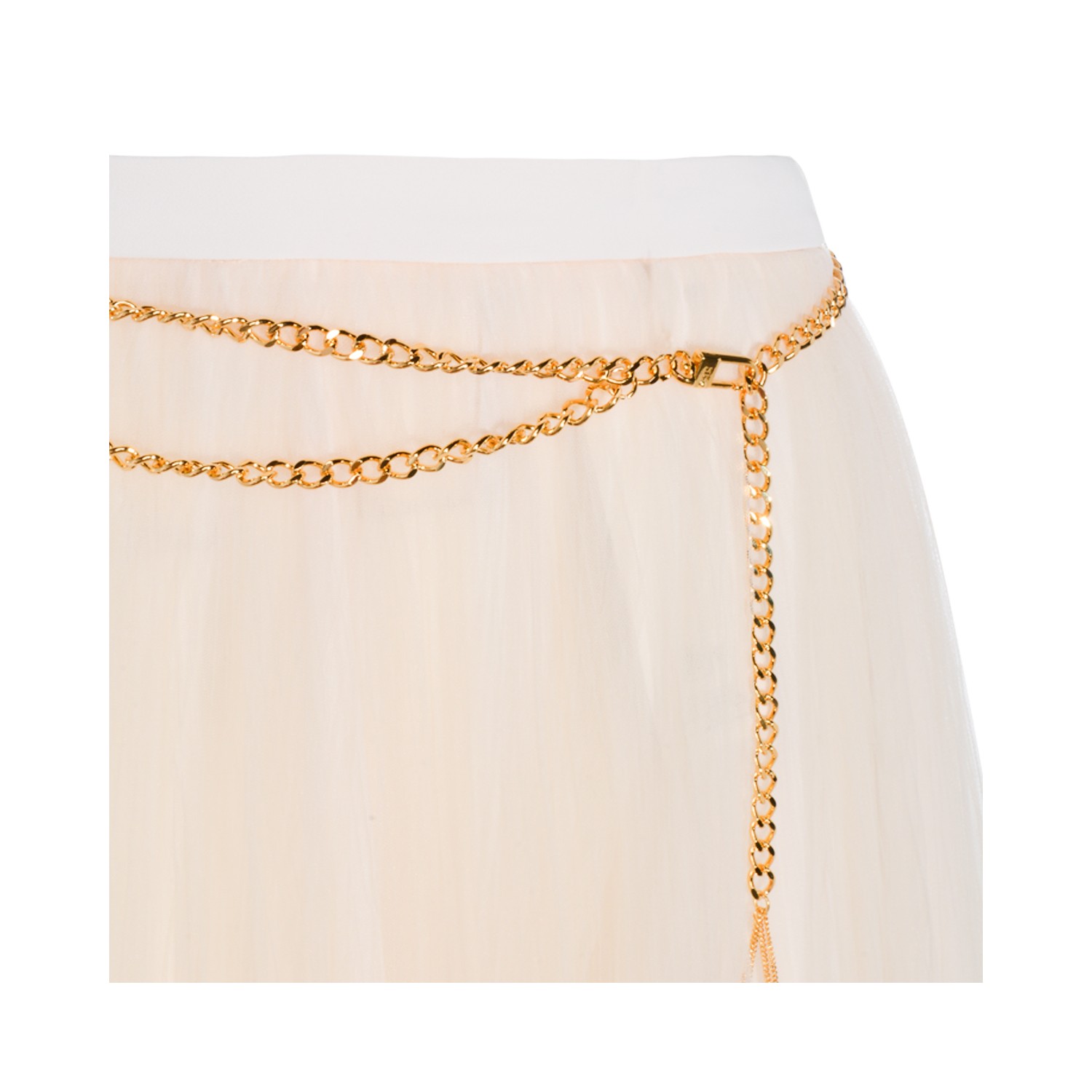 Cream skirt from Elisabetta Franchi featuring lateral zip fastening, gold tone accessory, tulle and regular vestibility.