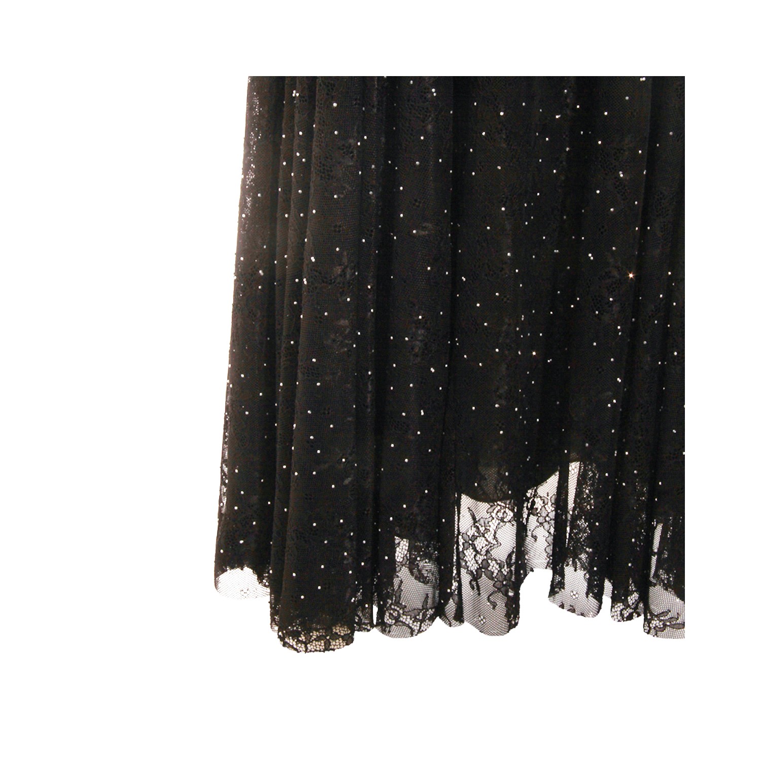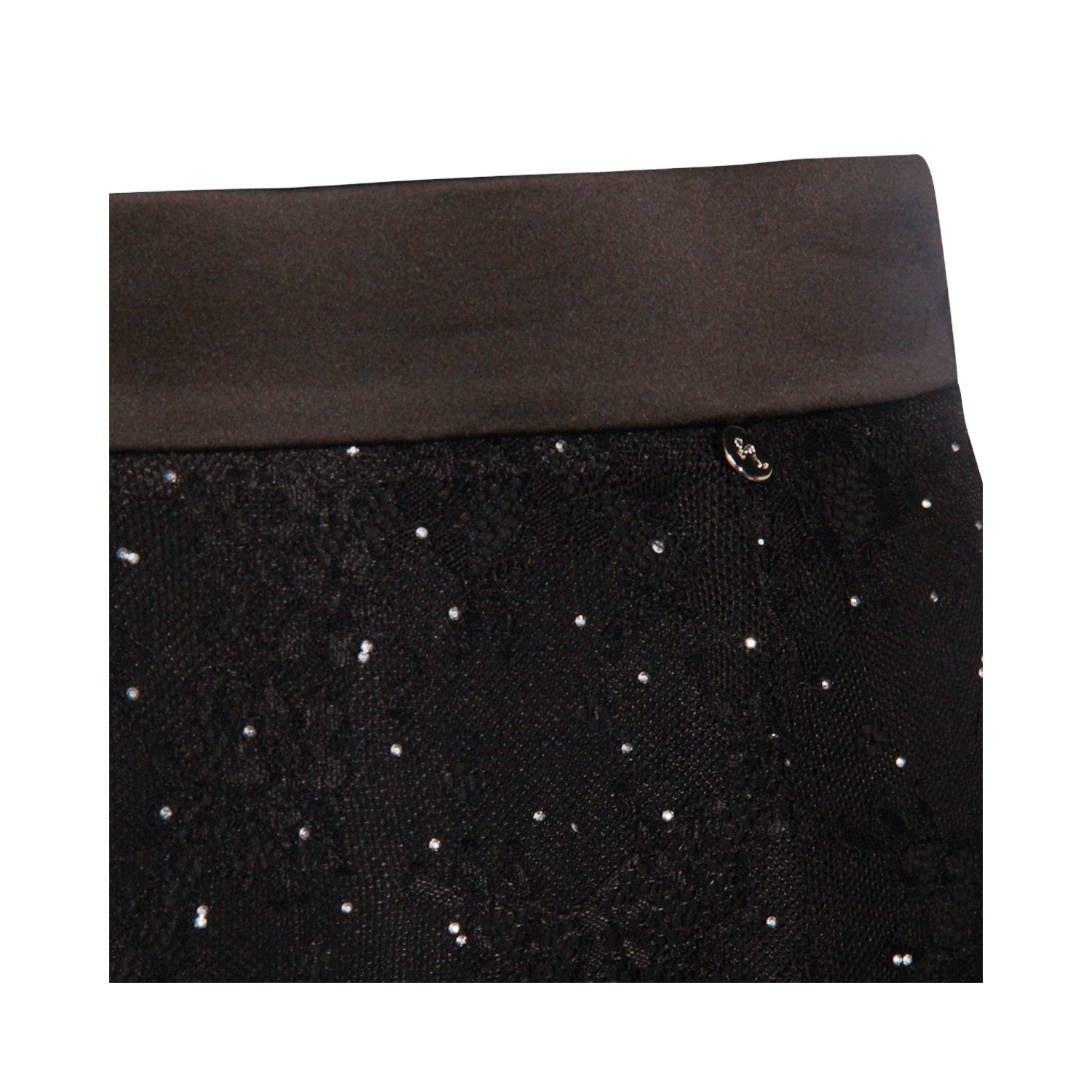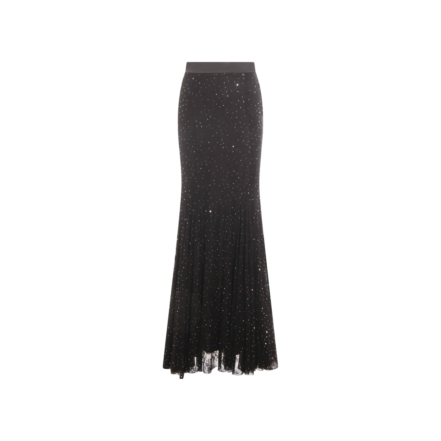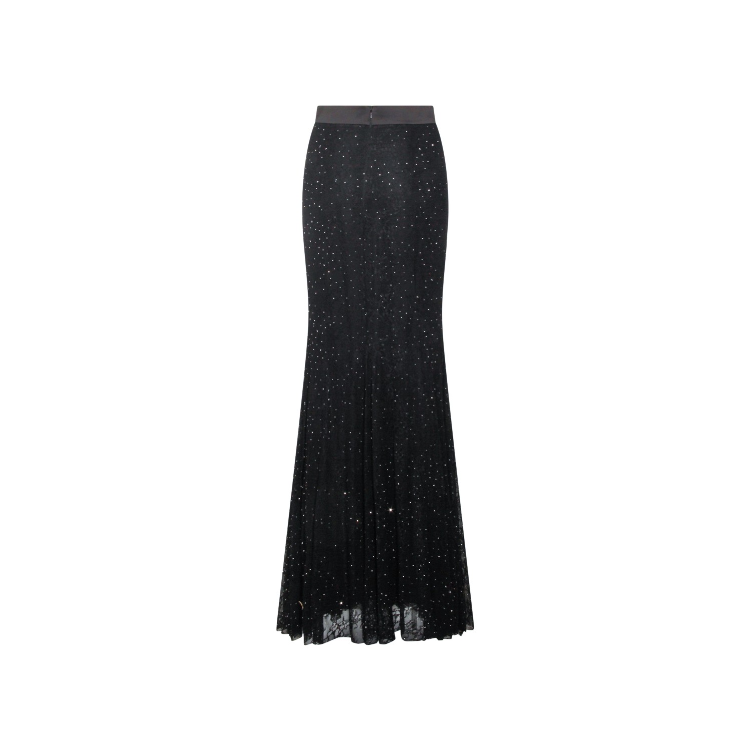 Black skirt from Nissa featuring high waist, strass, trasparence, lace details and long lenght.
