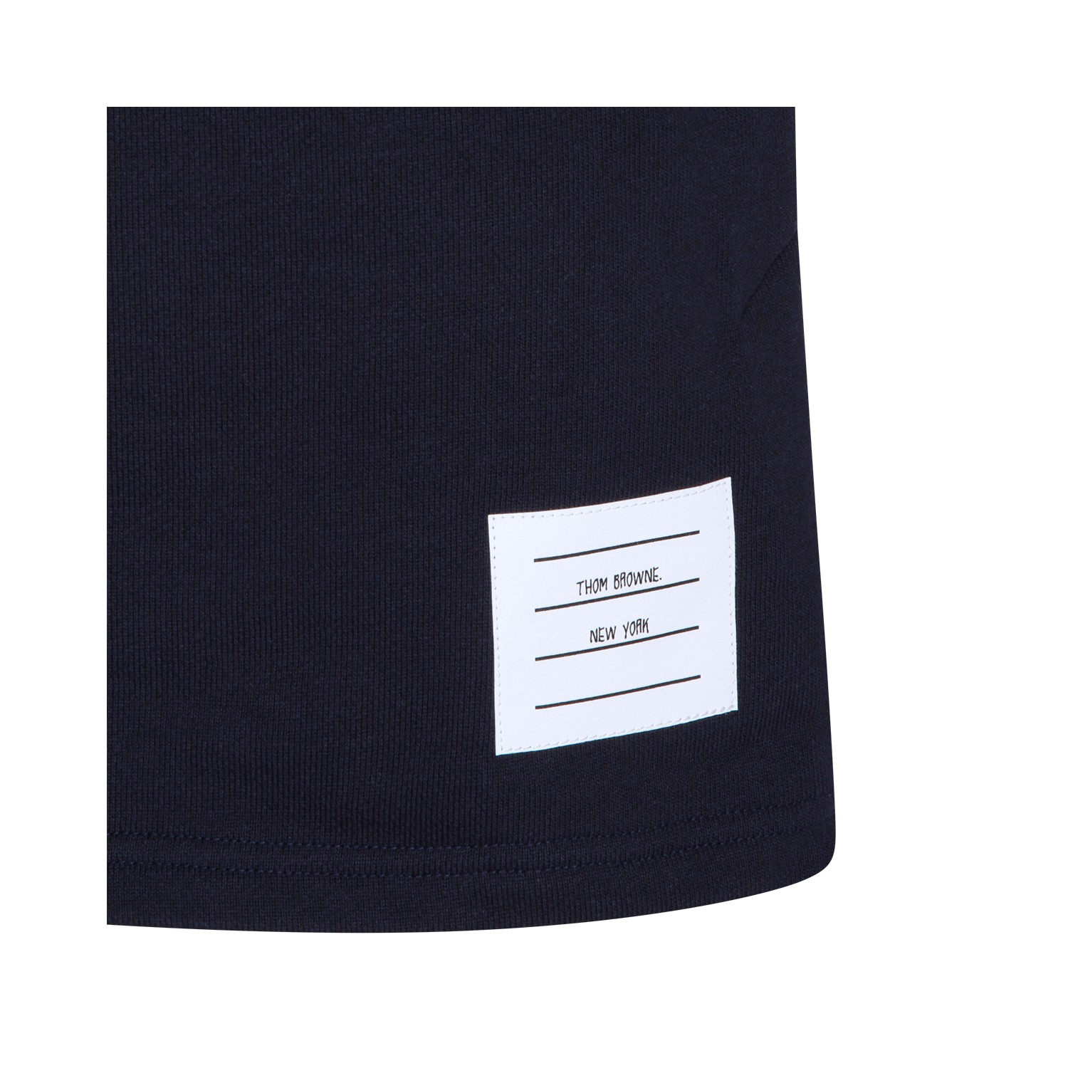 Blue cotton skirt from Thom Browne featuring high waist, lace fastening, white details, logo and regular length.
