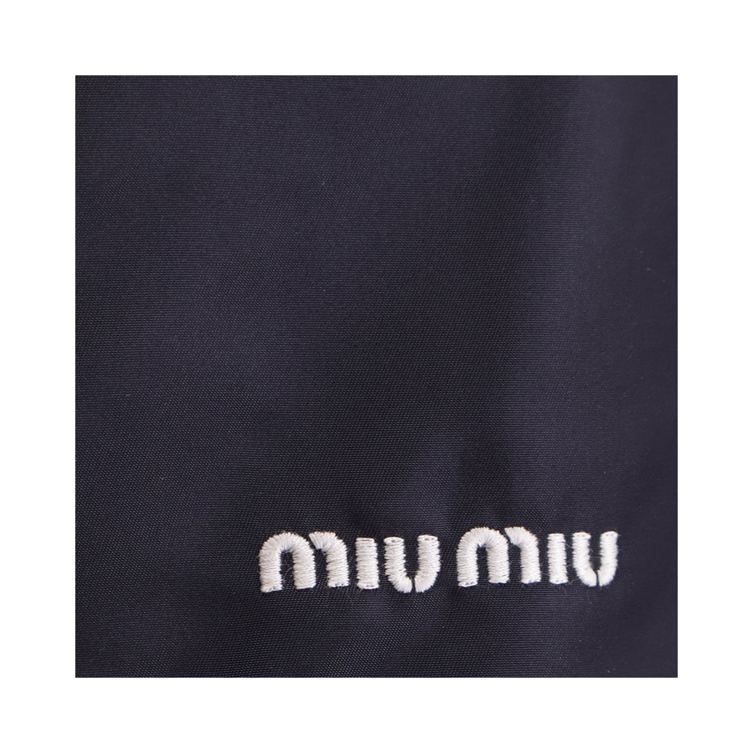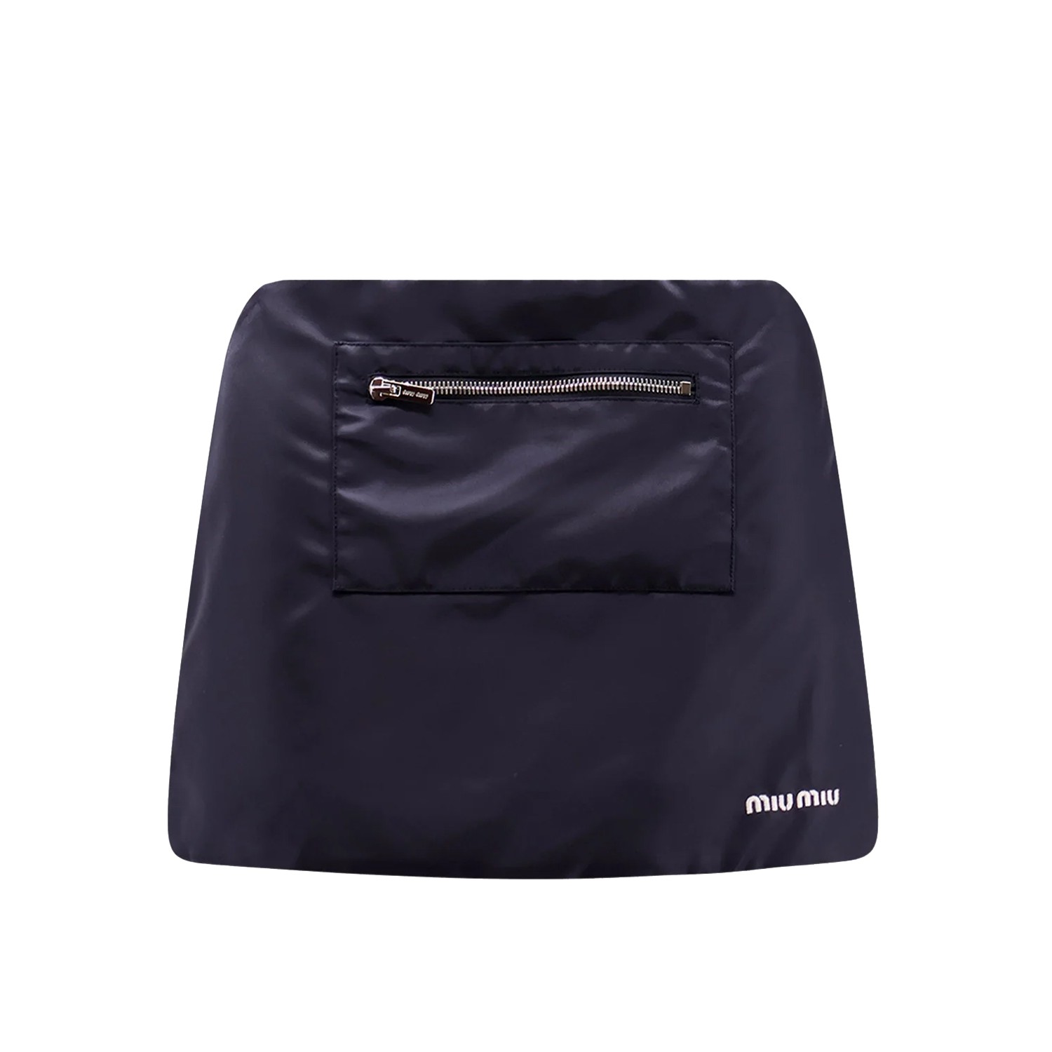 Blue skirt from Miu Miu featuring frontal zip pocket, logo and mini length.
