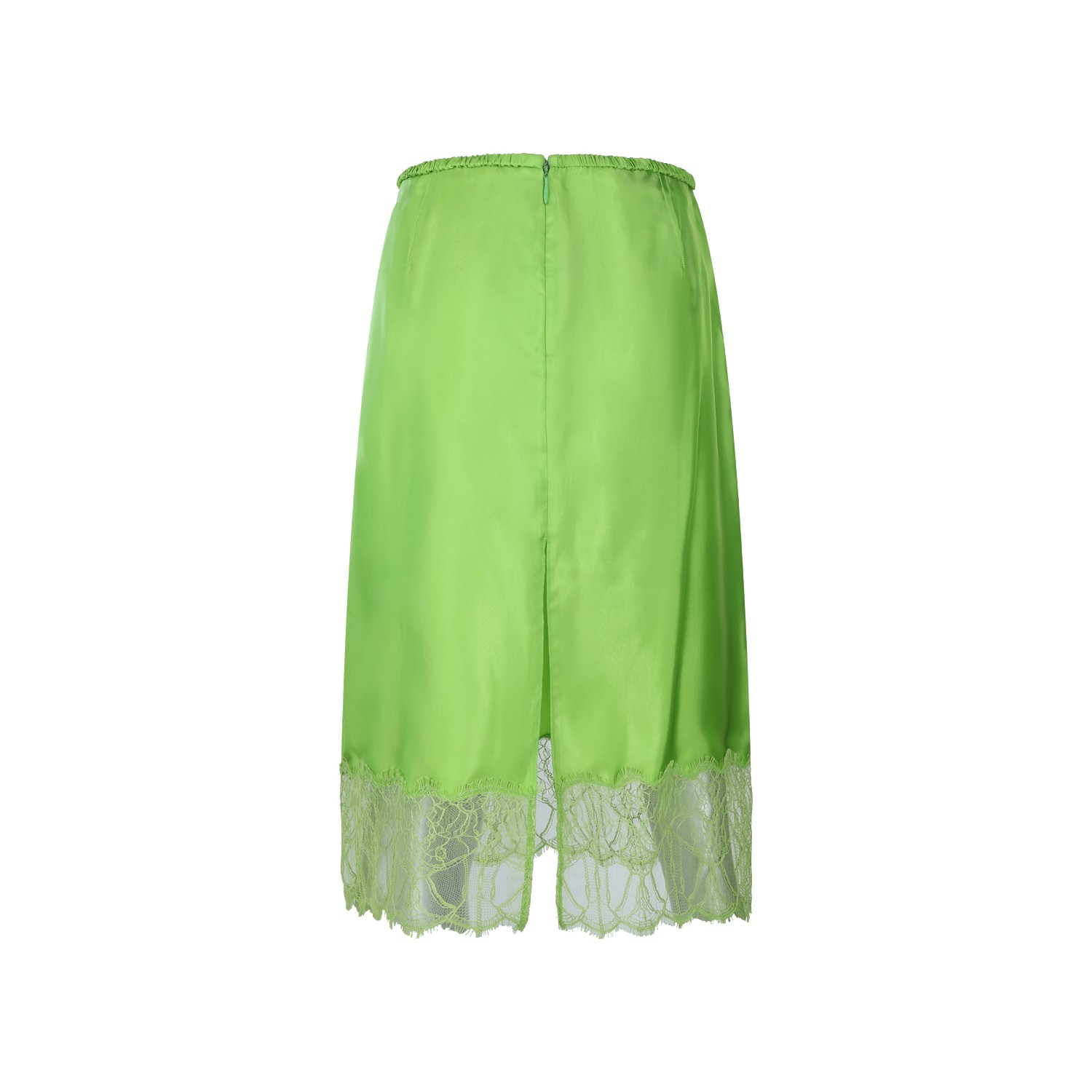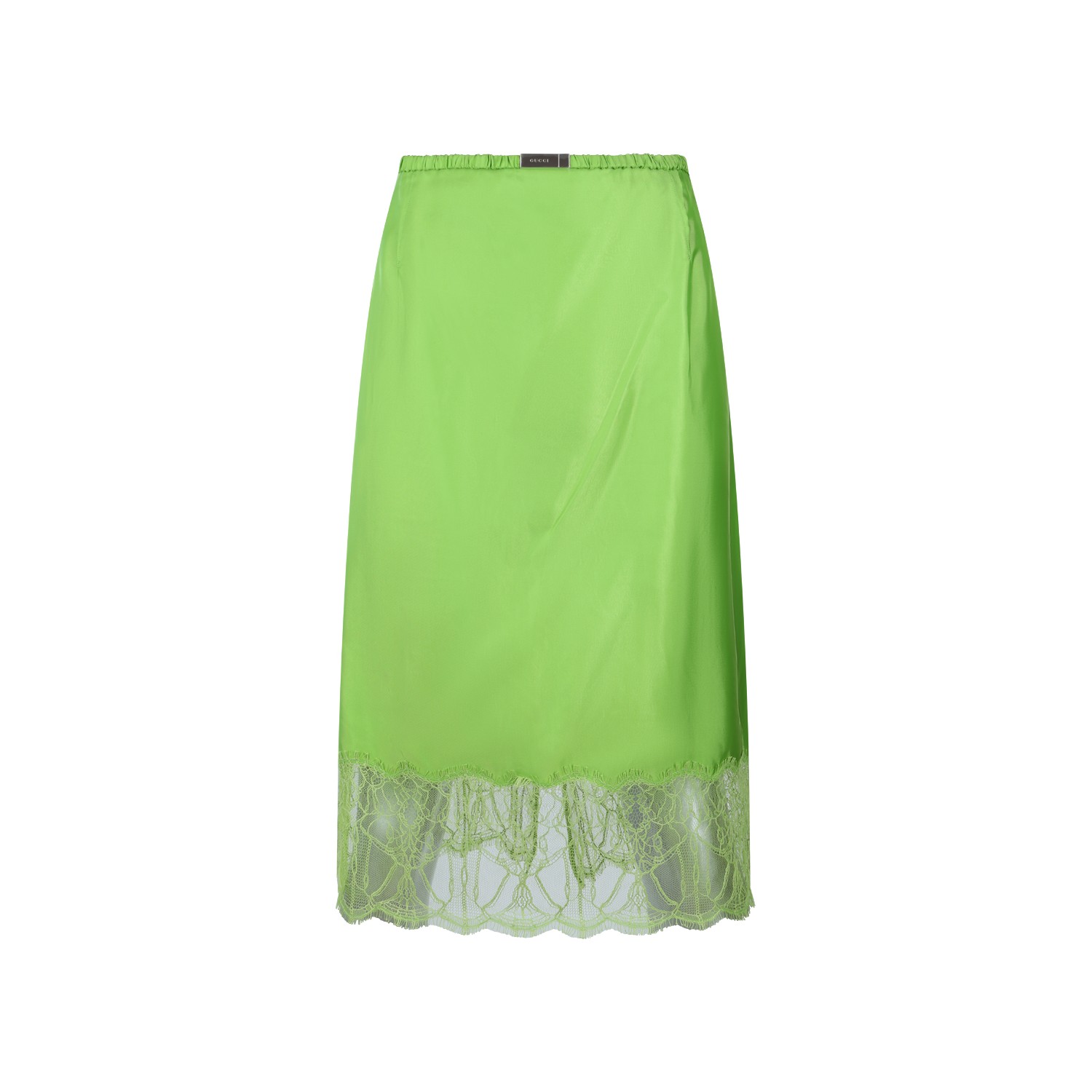 Green skirt from Gucci featuring elastic waist, back zip fastening, lace detail and back cut out.