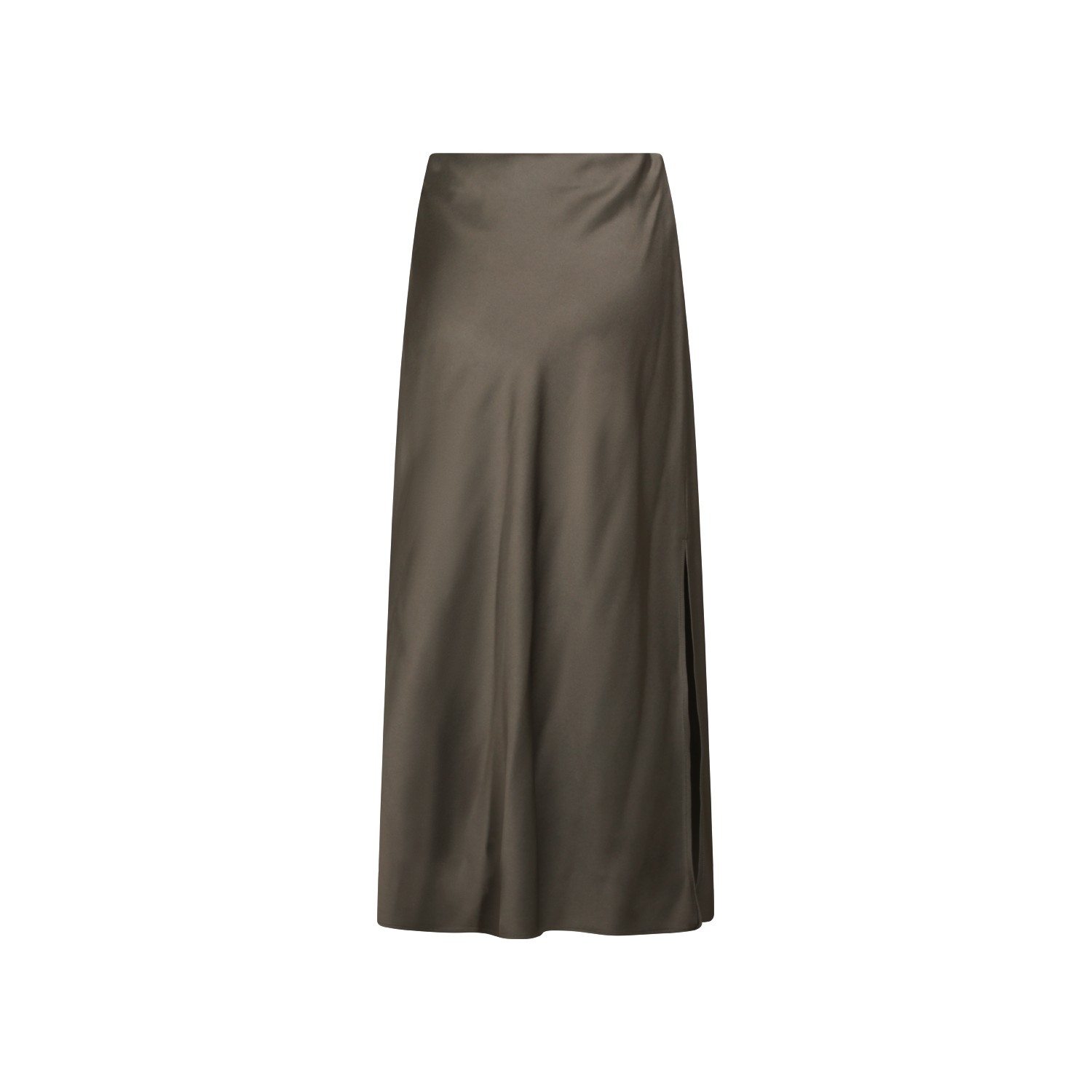 Green skirt from Brunello Cucinelli featuring high waist, all over length and oversize vestibility.