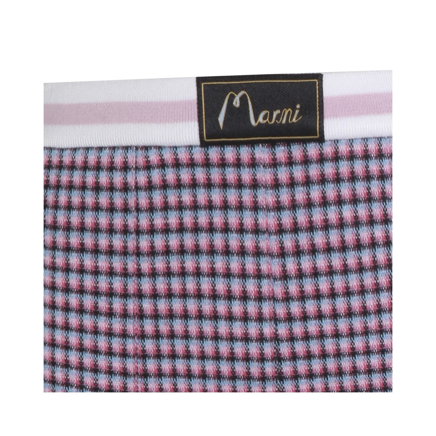 Violet skirt form Marni featuring elastic waistband with logo patch, Houndstooth pattern and pleated.