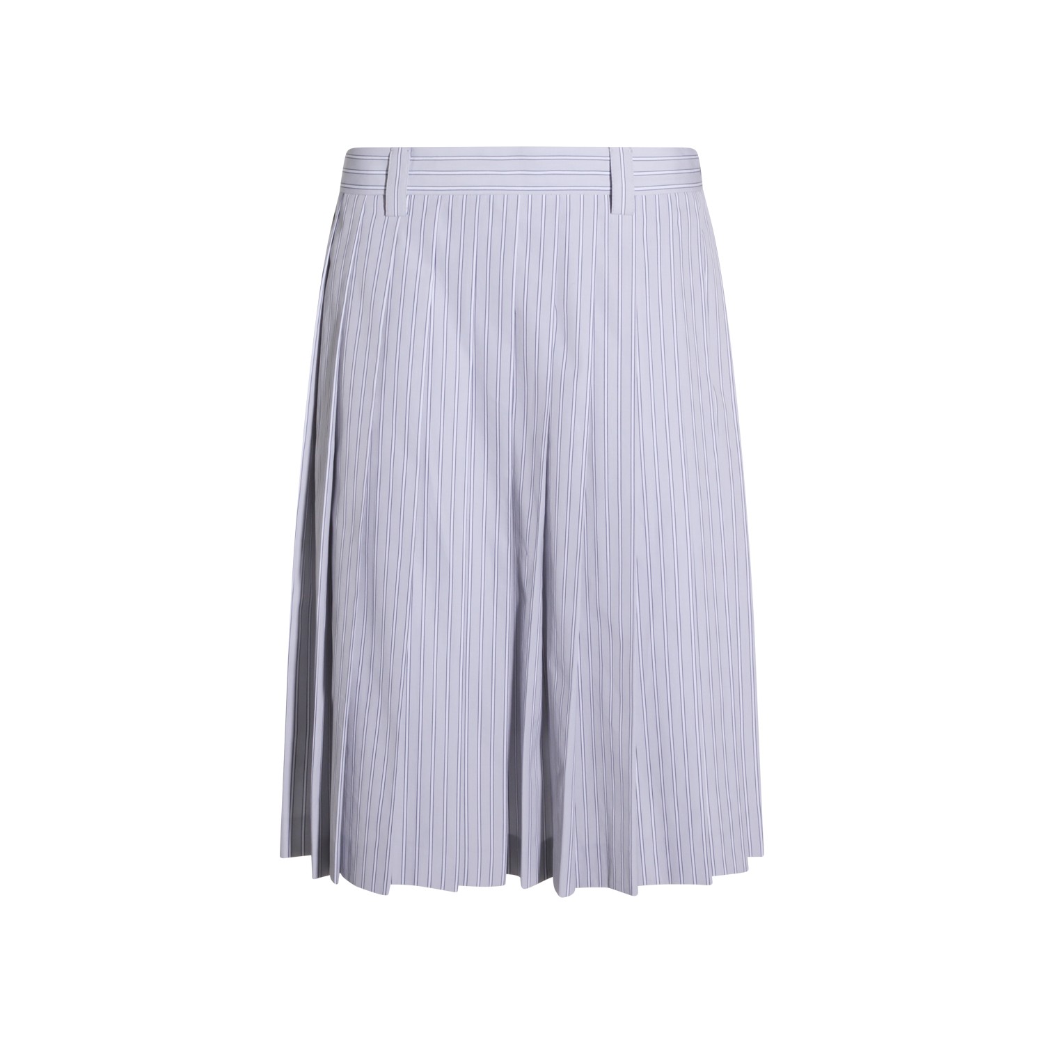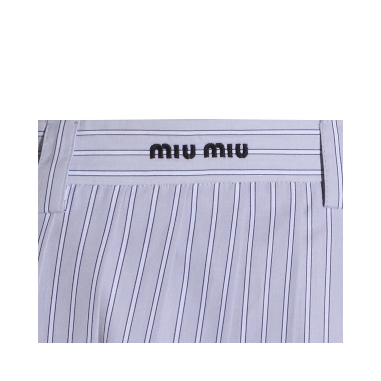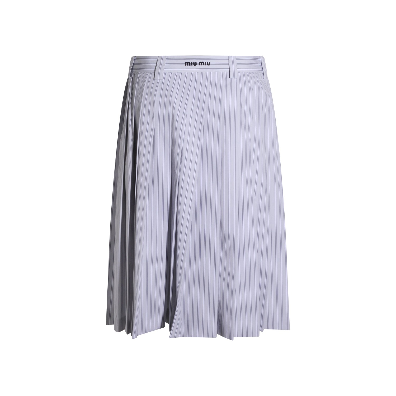 Grey cotton skirt from Miu Miu featuring high waist, belt loops, pleated, side zipper with hook, embroidered logo and stripes pattern.
