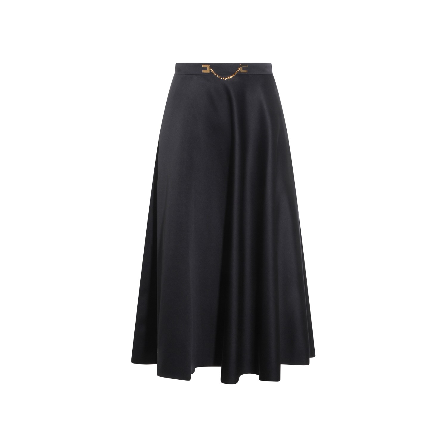 Black skirt from Elisabetta Franchi featuring high waist, back zip fastening, gold tone hardware and maxi length.