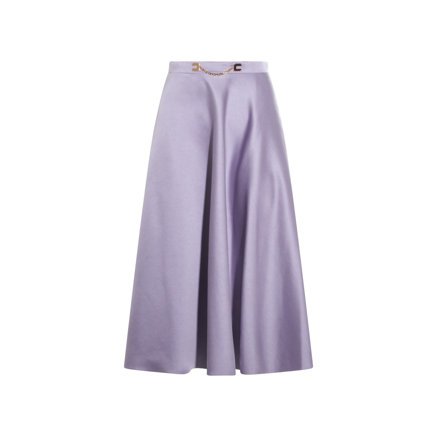 Lilac skirt from Elisabetta Franchi featuring high waist, back zip fastening, gold tone hardware and maxi length.