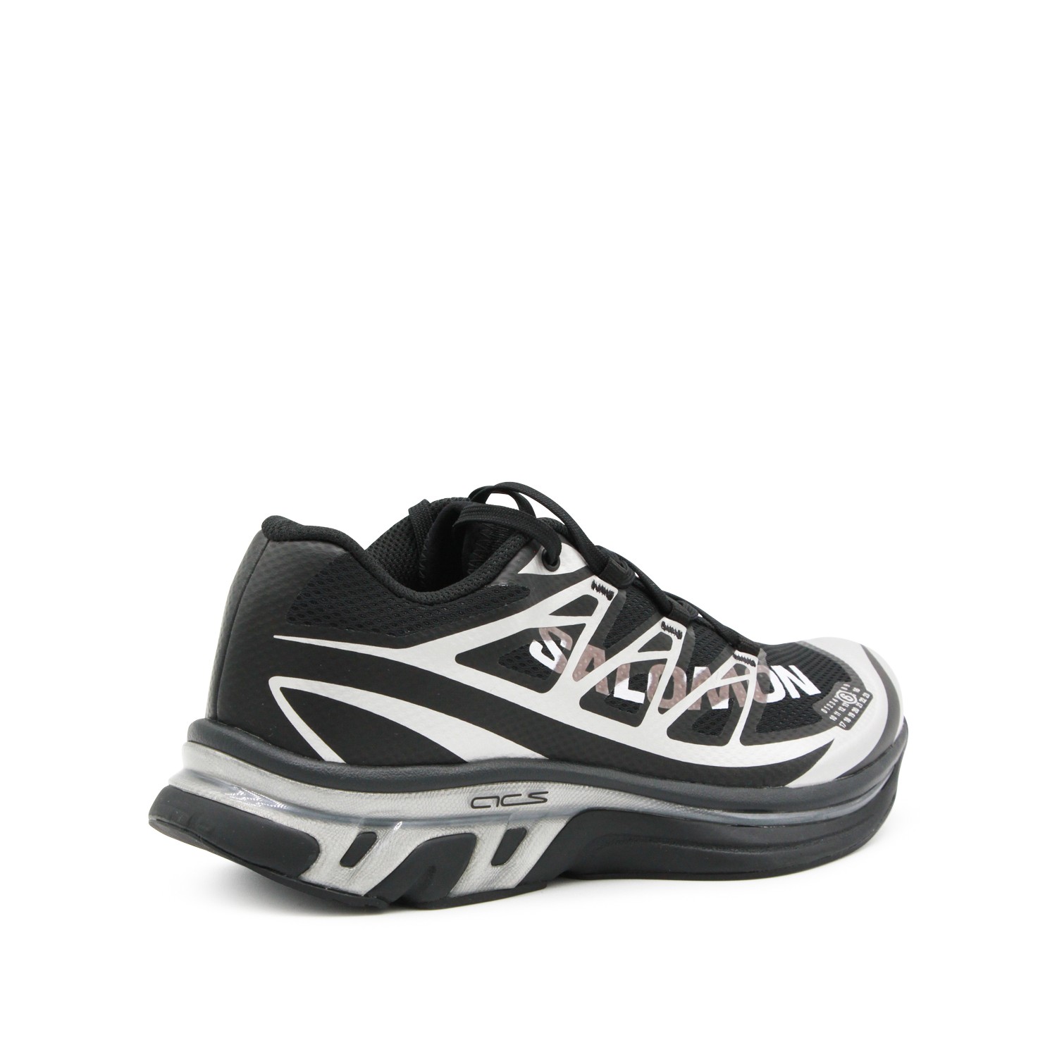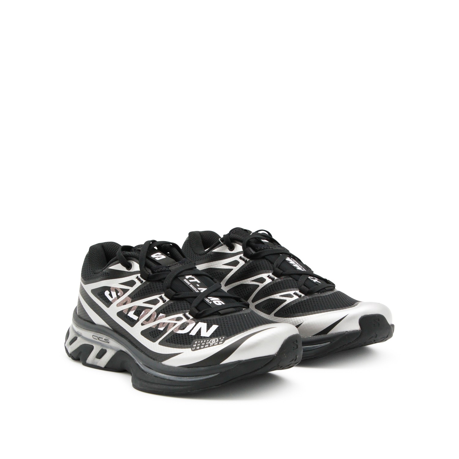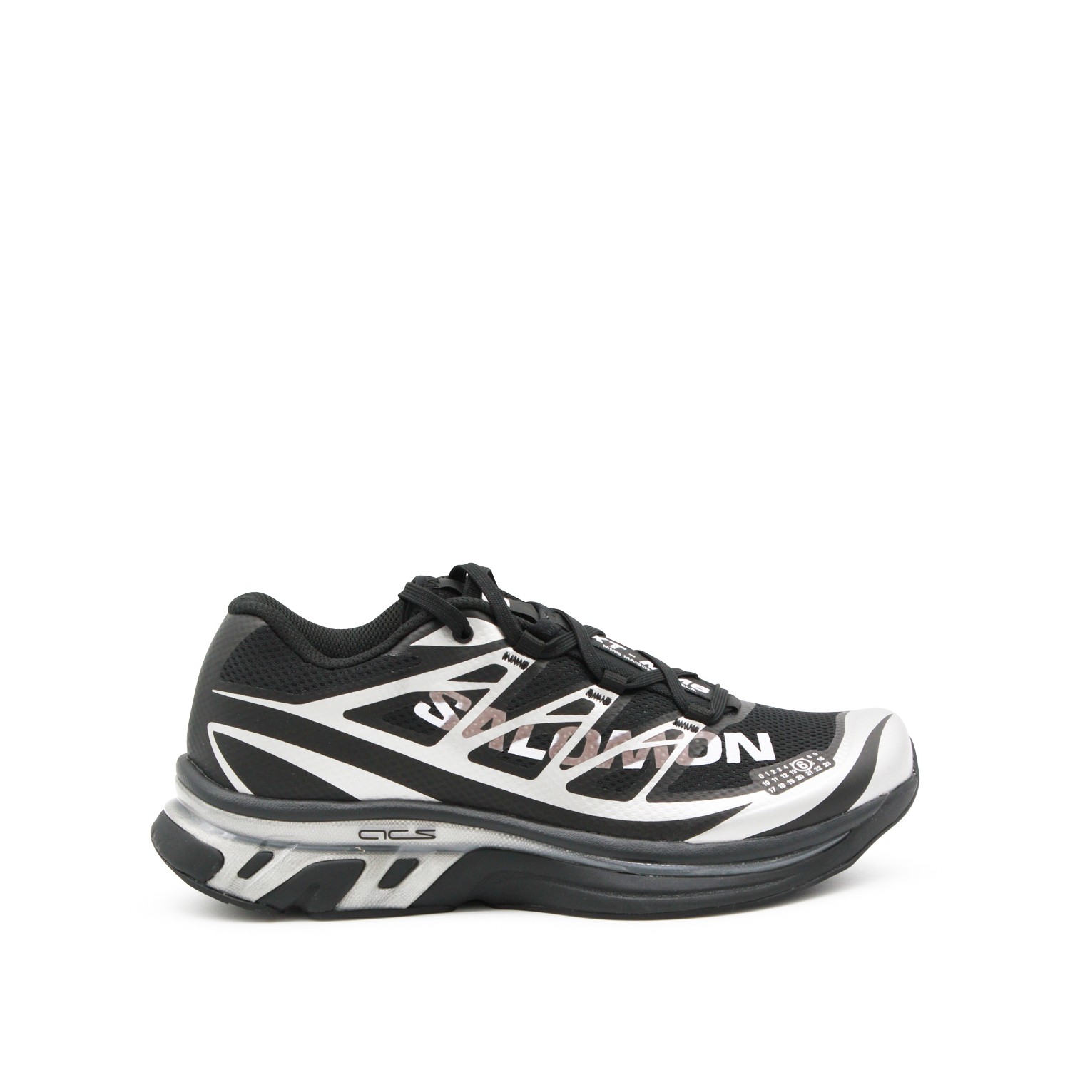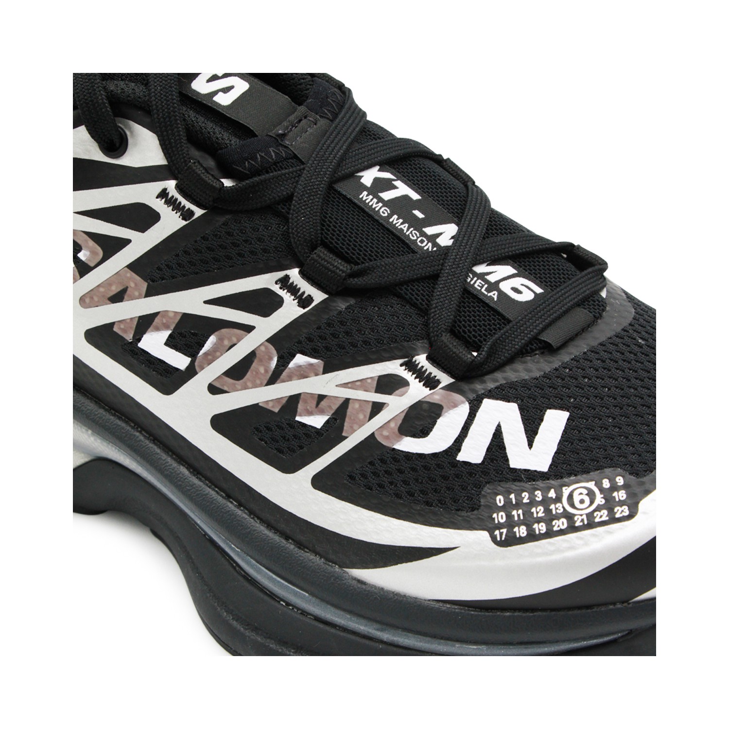 Black sneakers from MM6 Maison Margiela X Salomon featuring round toe, laces fastening, mesh details, logo print, branded insole and rubber sole.