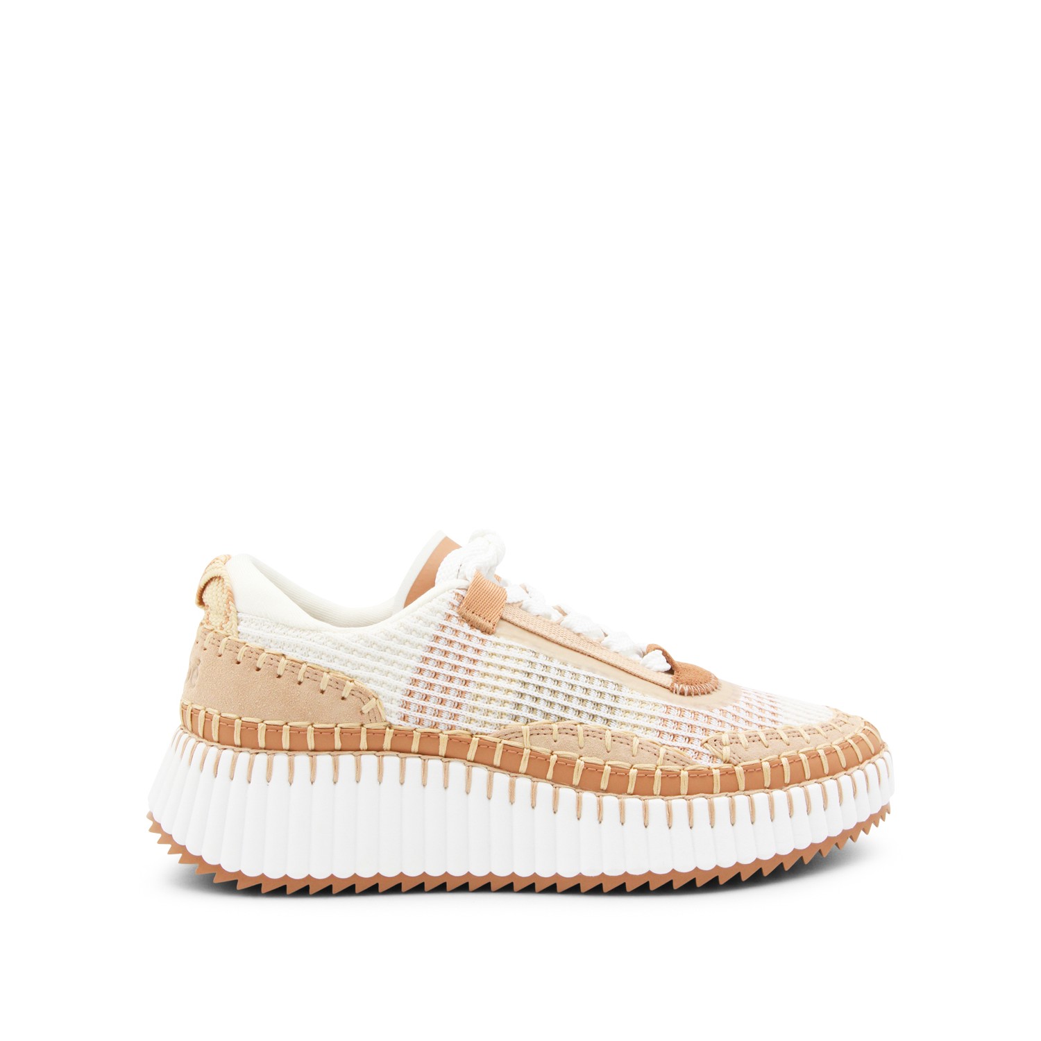 Cinnamon brown sneakers from Chlofeaturing round toe, lace-up fastening, contrasting details and rubber sole.