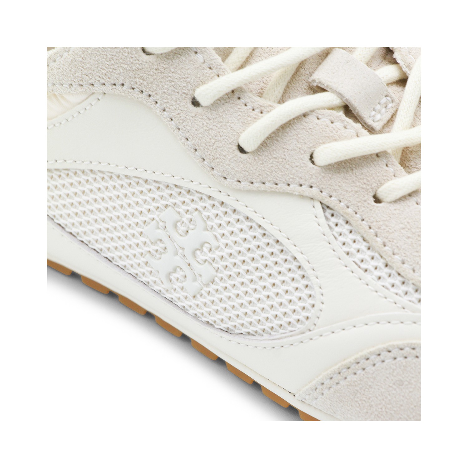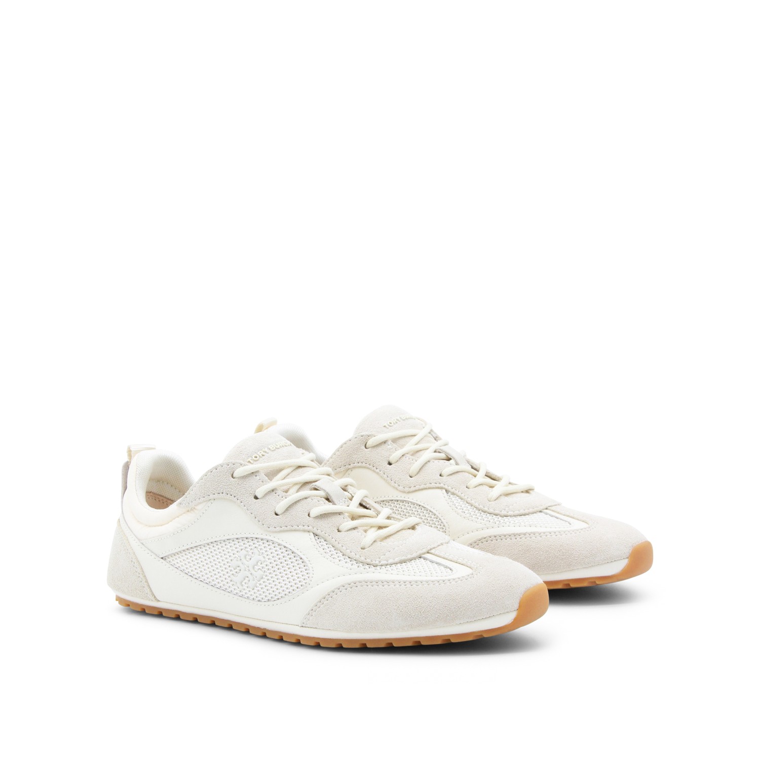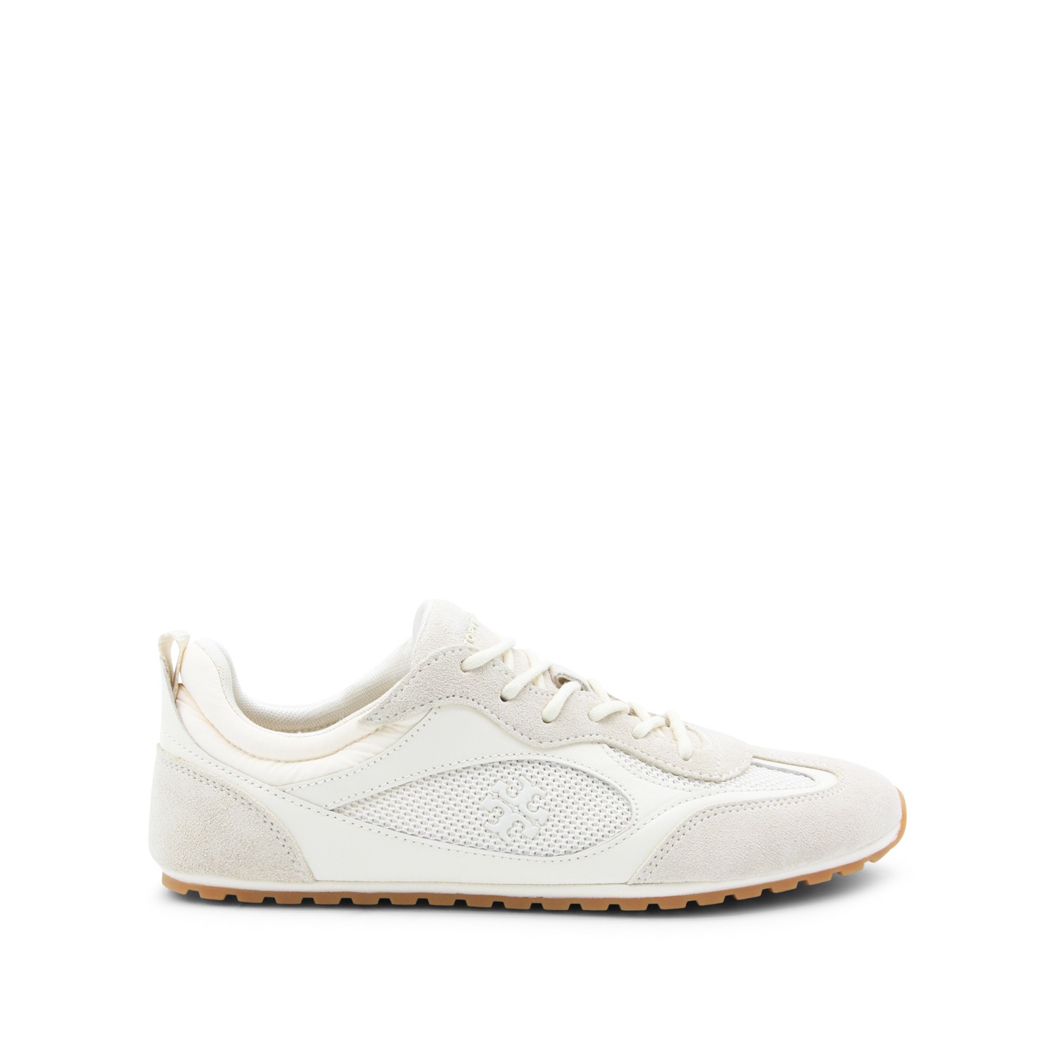 White sneakers from Tory Burch featuring round toe, lace-up fastening, ton sur ton details, lateral logo and rubber sole.