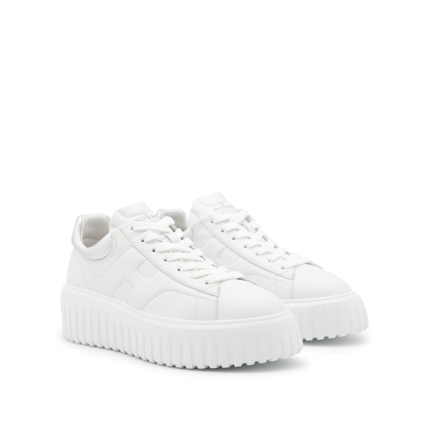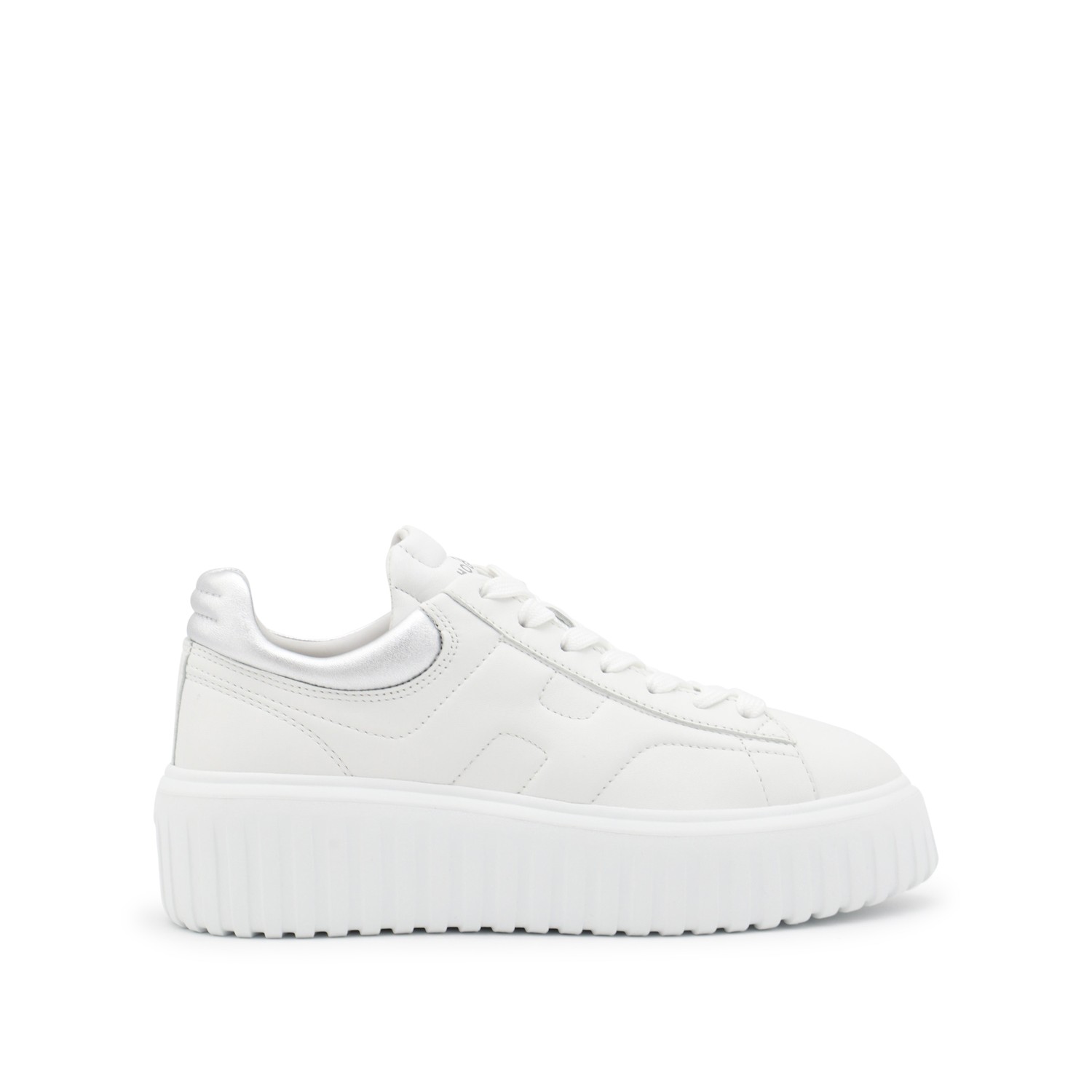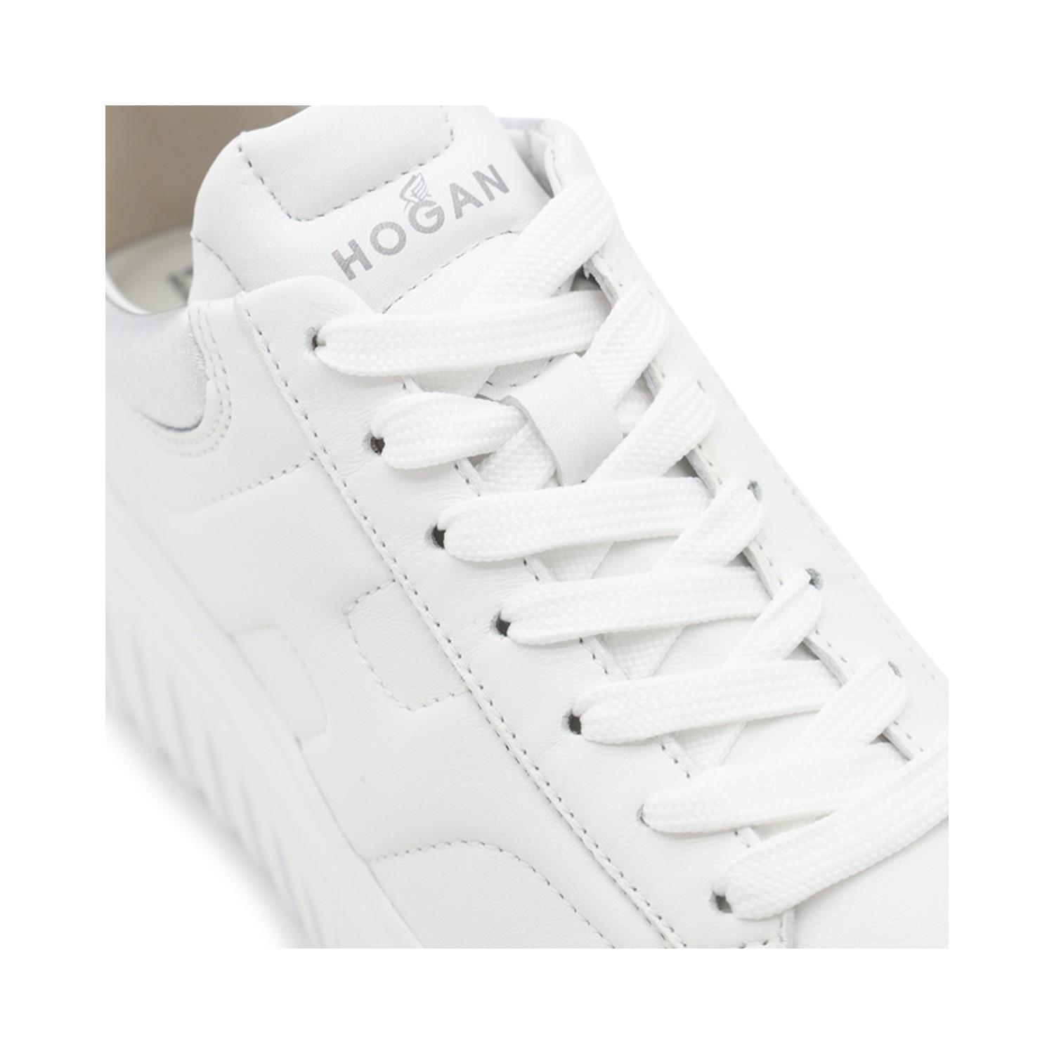 White leather sneakers from Hogan featuring round toe, cotton laces fastening, oversize sole, lateral logo and leather sole.