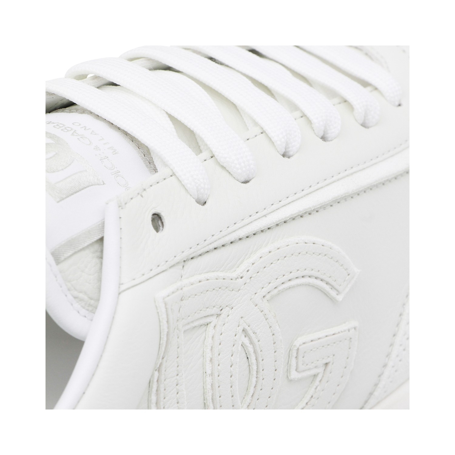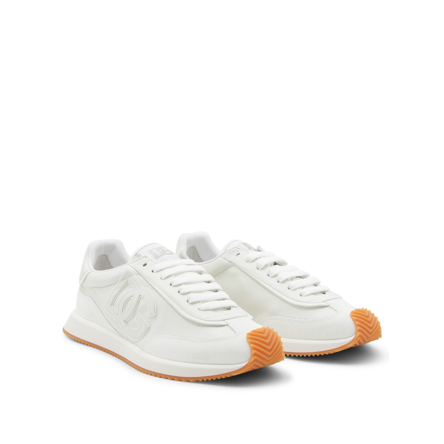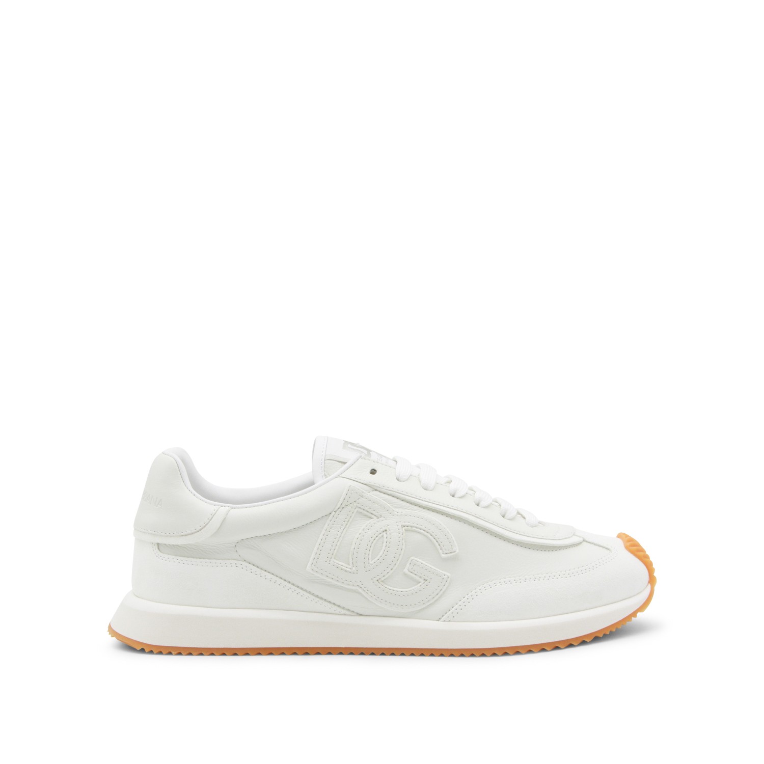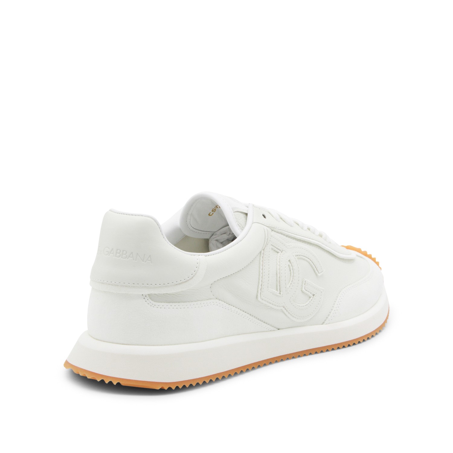 White leather sneakers from Dolce & Gabbana featuring round toe, lace up fastening, lateral logo and rubber sole.