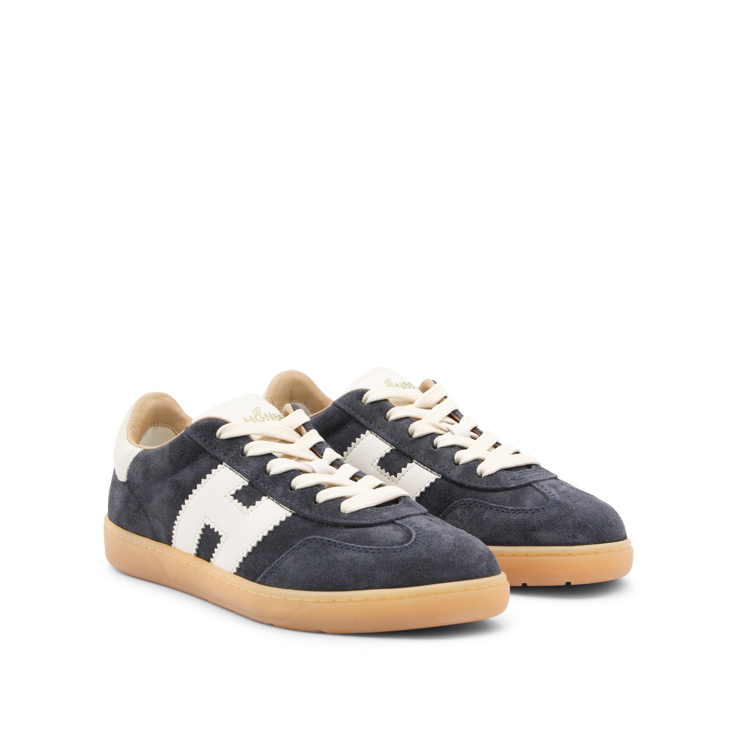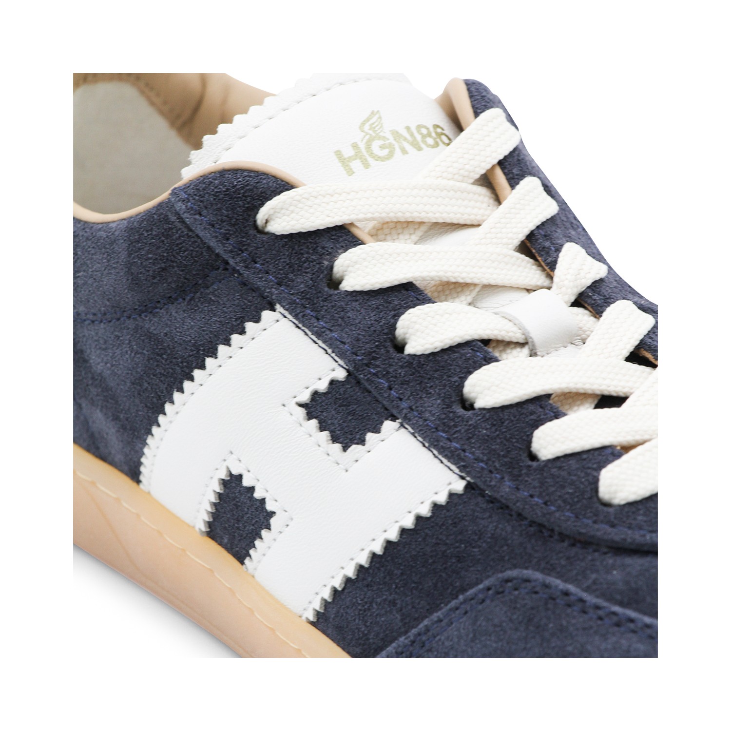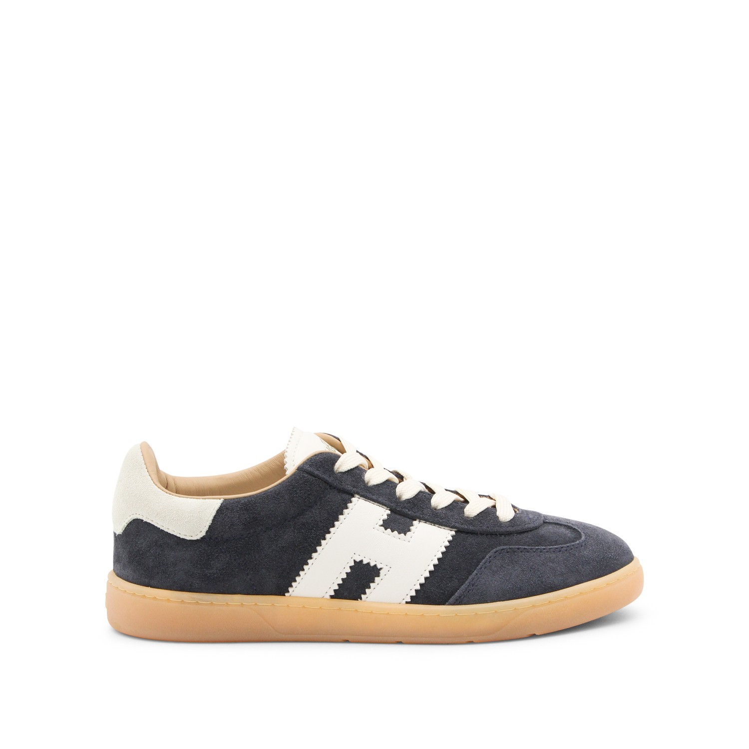 Navy leather Cool sneakers from Hogan featuring rubber sole, round toe, lace up closure, contrasting details and H inserts at side.