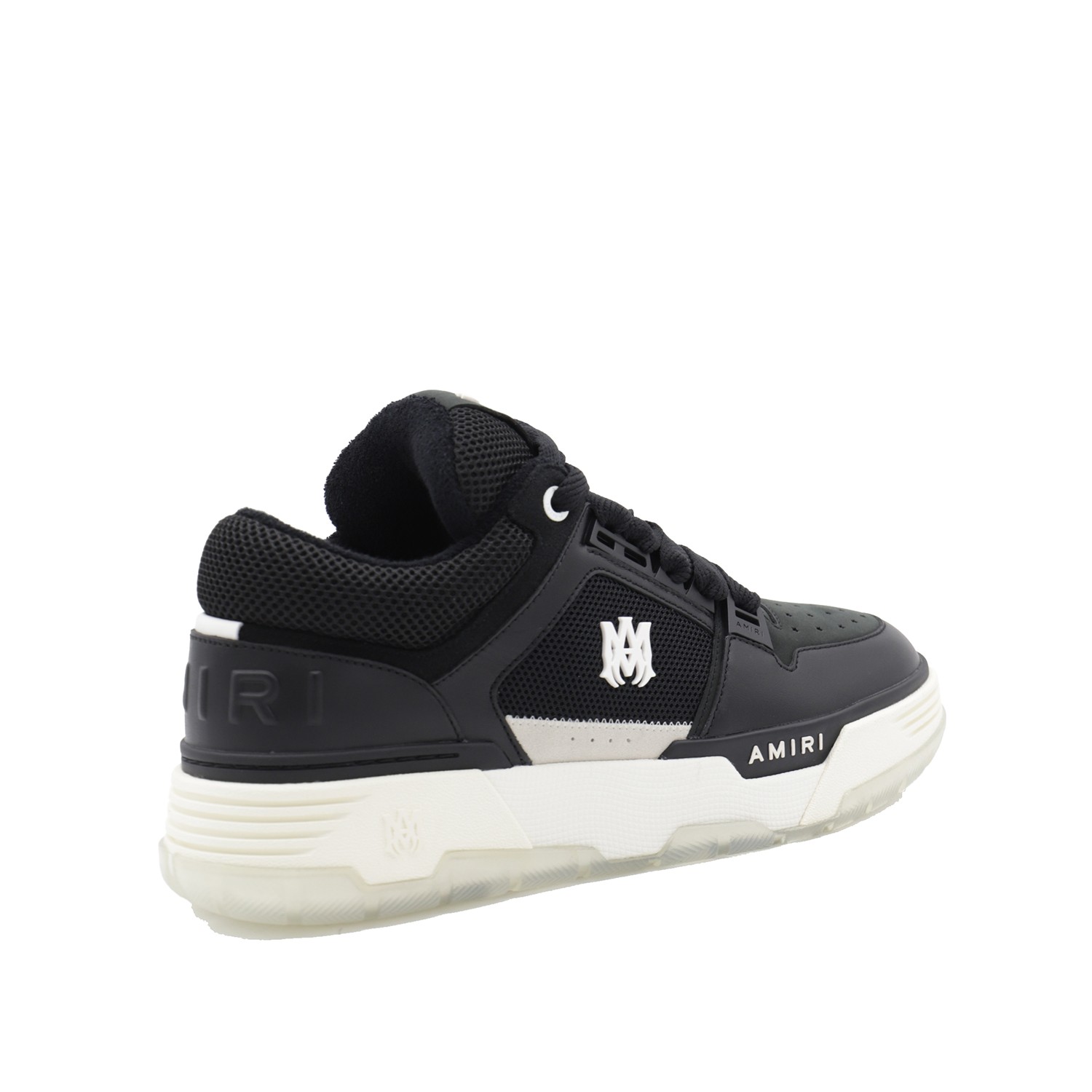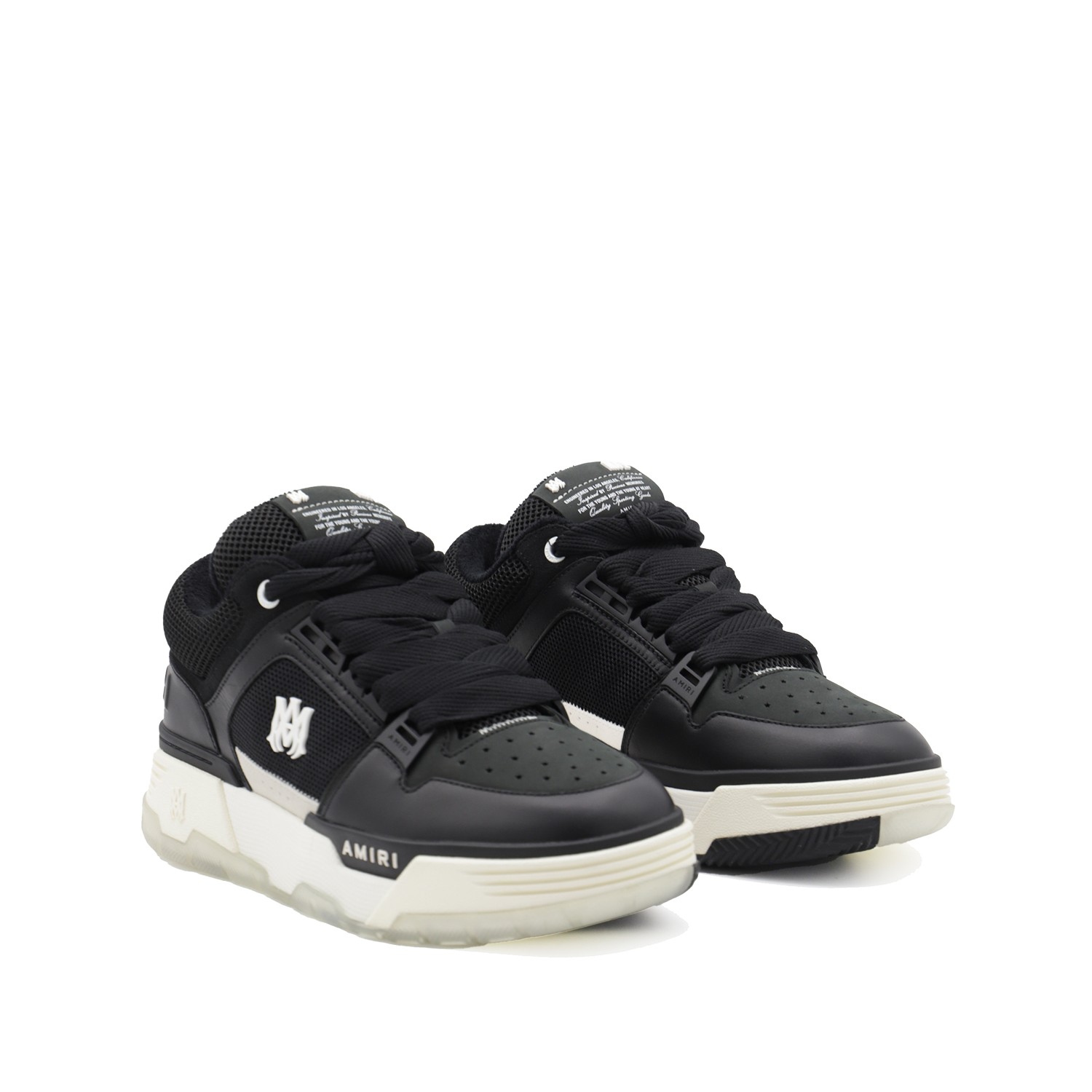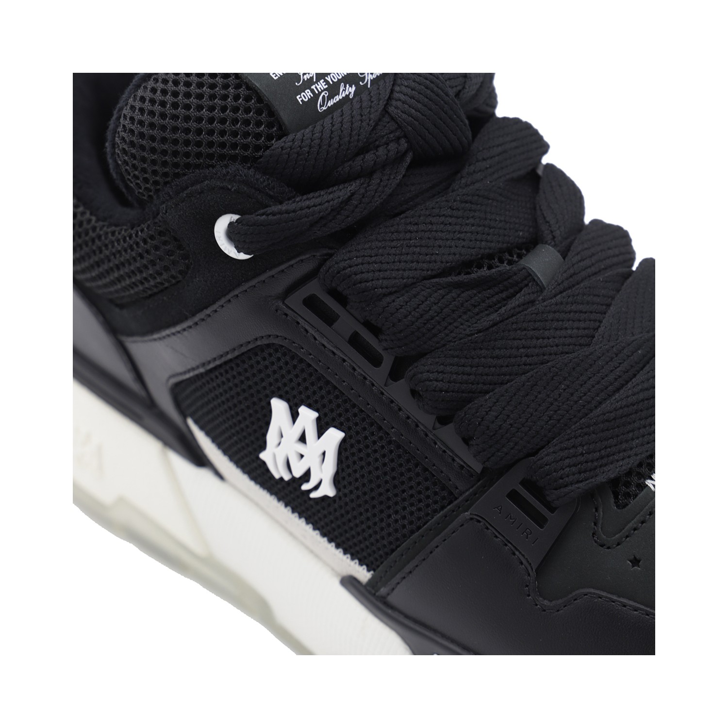 Black leather sneakers from Amiri featuring round toe, lace up fastening, all over details, lateral logo and rubber sole.